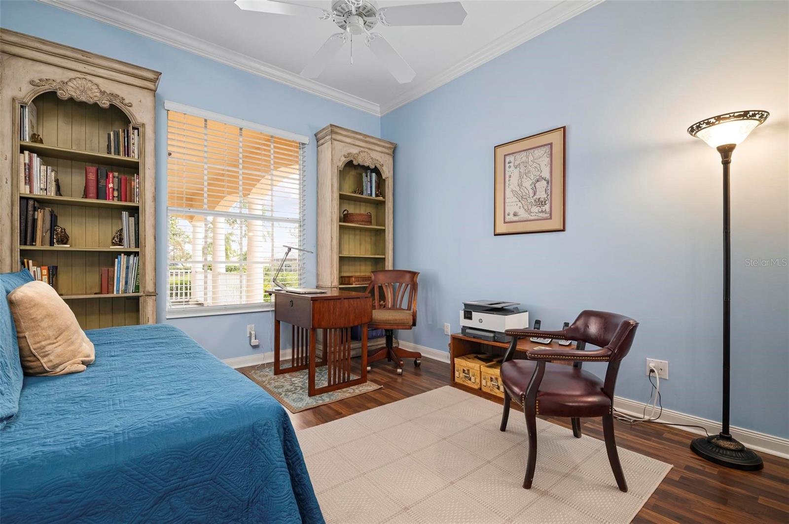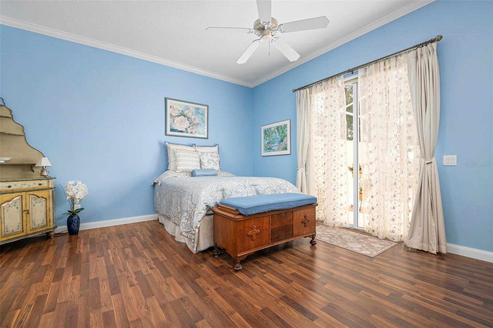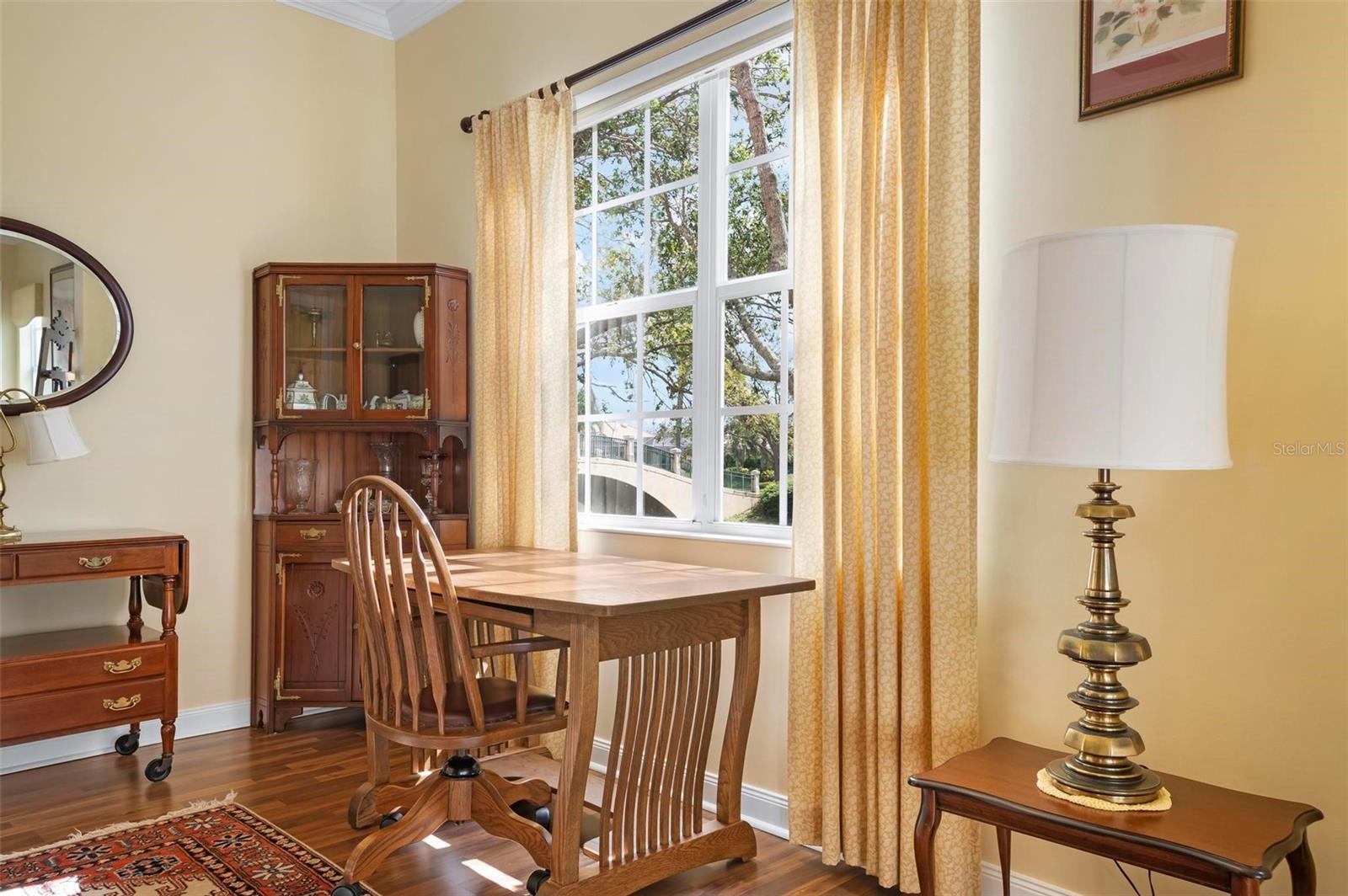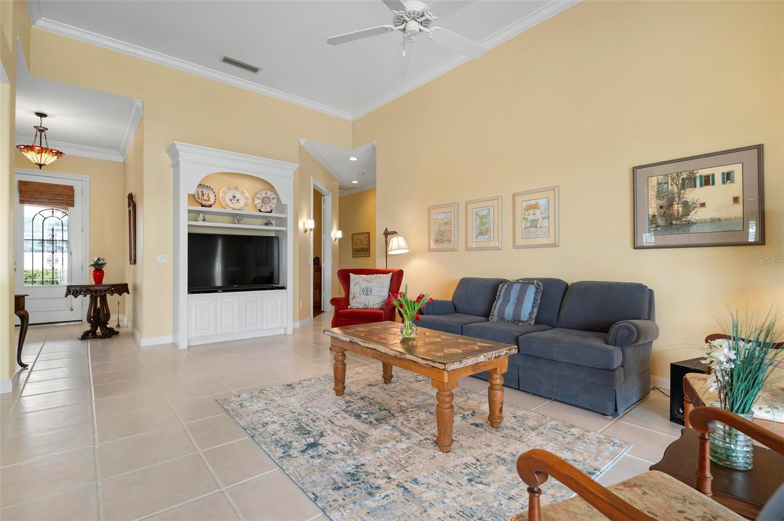 Welcome to your dream home nestled on one of the most beautiful waterfront and, at nearly 10,000 square feet, one of the largest lots in the luxury resort style living of Village Walk. As you pull up to the home, you're greeted by the large gorgeous Southern-style porch and a tropical water view extending along the entire stretch of the side property and beyond. This property’s breathtaking views offer peace and tranquility. This rare corner property is a private oasis. Situated facing East-West, you will be amazed by the sunrises over the lake in the morning and stunned by colorful sunsets off the porch in the evening – majestic bookends to your day to be capped off by clear views of luminous moons. Enjoy fantastic vistas of the serene water, elegant bridges, and the beautifully landscaped gardens from every room, creating an ever-changing backdrop of nature’s beauty, including the diverse bird life. As you step inside this meticulously maintained home, your eye is immediately drawn to the bright and open floor plan and the wide and long lake view. Large windows complimented by designer window treatments, tasteful custom built-ins, and crown molding throughout, among other unique features, create a distinct architectural space that is at once light, sophisticated, comfortable and inviting. The home’s updates include warm engineered wood flooring in all the bedrooms, living room and dining room; a new HVAC (2023) with a heat pump and an upgraded corrosion package to ensure long-lasting efficiency, a new LG washer and dryer (2023), and brand new 55 gallon Rheem water heater with new expansion tank (2025). The next owner will benefit from transferable warranties. From the family room, step outside onto the cozy sitting area of the under hang and the expansive screened-in lanai with new screens secured with new hardware (2023), making this space perfect for outdoor entertaining, container gardening, and relaxation. The lanai offers unobstructed water views in multiple directions accented by colorful Florida native gardens and landscaping. Feel secure knowing Village Walk construction is poured concrete walls and built very solid, including roofs reinforced exceeding building codes. This vibrant gated community gives residents of all ages access to miles of scenic walking paths along picturesque lakes, a heated lap pool, and a lagoon pool for leisurely afternoons. The state-of-the-art fitness center, six Har-Tru lighted tennis courts, pickleball, bocce, and Town Center gathering spaces that host a robust activities calendar all offer ample recreational opportunities. Additional amenities include a gift shop, a café with a poolside tiki bar, a hair salon, a gas station, and so much more. Come discover why this home and the Village Walk community, are truly special!