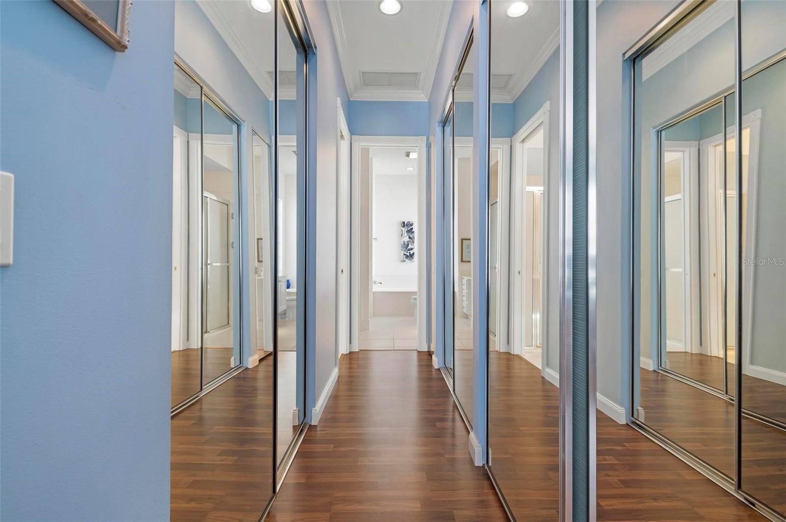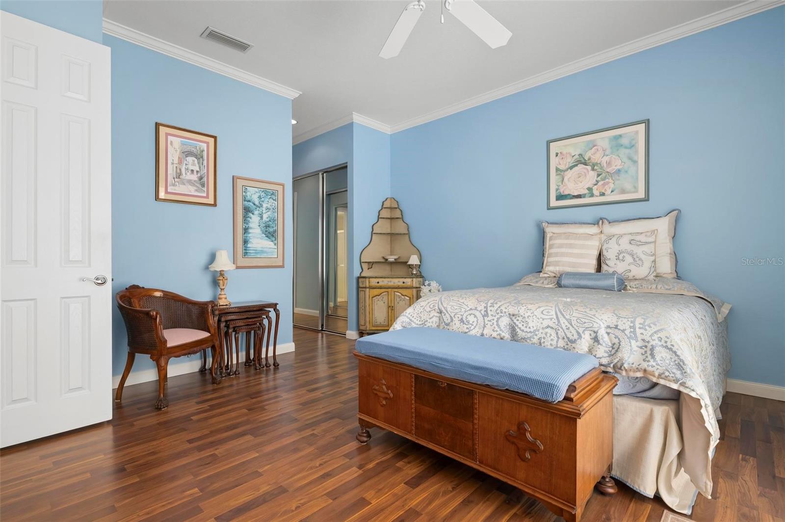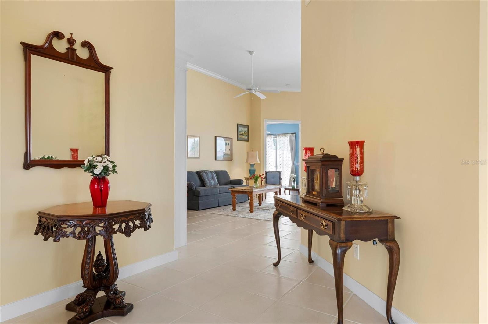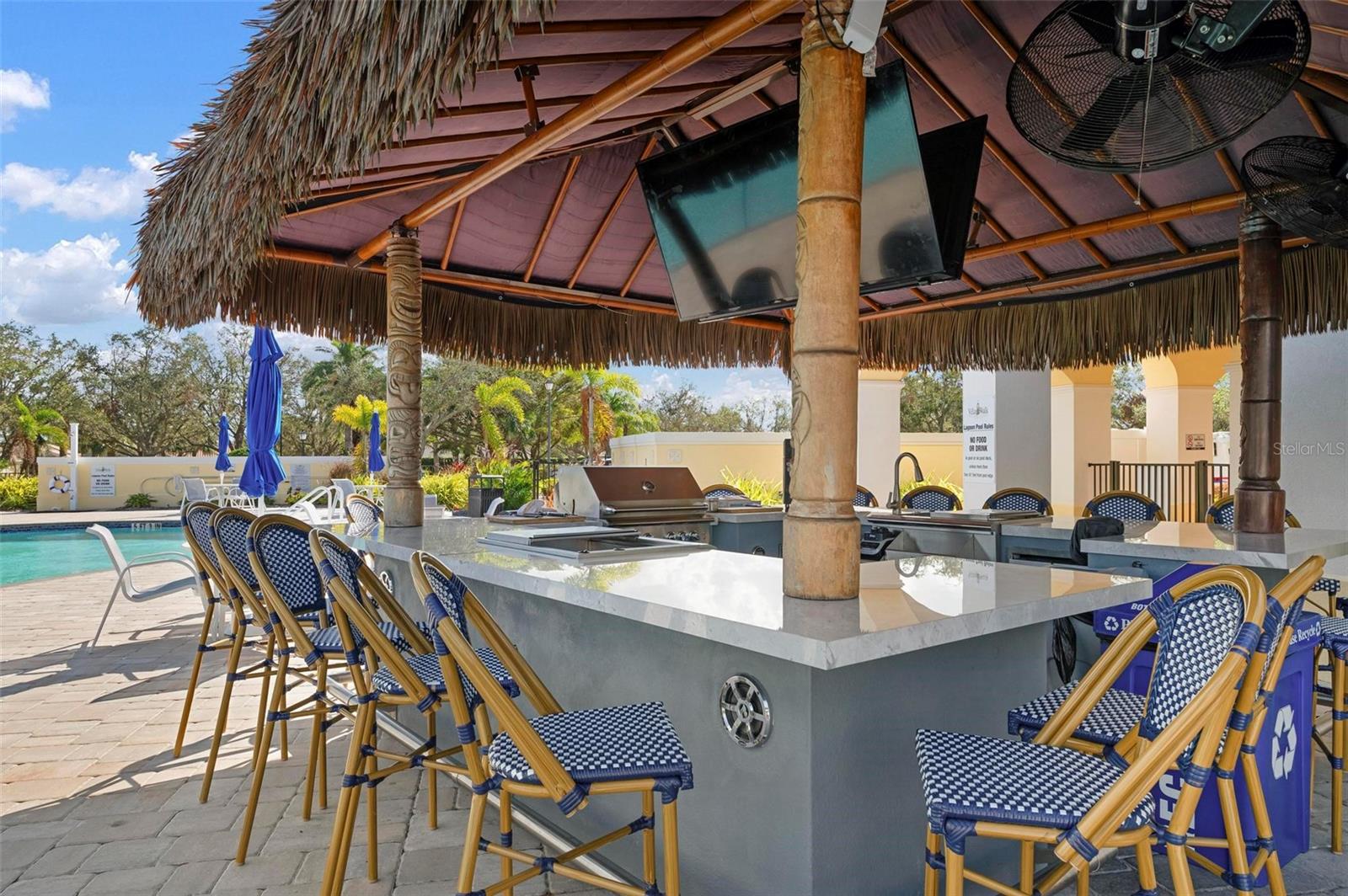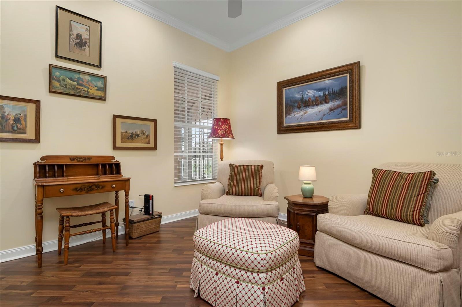 Welcome to your dream home nestled on one of the most beautiful waterfront and, at nearly 10,000 square feet, one of the largest lots in the luxury resort style living of Village Walk. As you pull up to the home, you're greeted by the large gorgeous Southern-style porch and a tropical water view extending along the entire stretch of the side property and beyond. This property’s breathtaking views offer peace and tranquility. This rare corner property is a private oasis. Situated facing East-West, you will be amazed by the sunrises over the lake in the morning and stunned by colorful sunsets off the porch in the evening – majestic bookends to your day to be capped off by clear views of luminous moons. Enjoy fantastic vistas of the serene water, elegant bridges, and the beautifully landscaped gardens from every room, creating an ever-changing backdrop of nature’s beauty, including the diverse bird life. As you step inside this meticulously maintained home, your eye is immediately drawn to the bright and open floor plan and the wide and long lake view. Large windows complimented by designer window treatments, tasteful custom built-ins, and crown molding throughout, among other unique features, create a distinct architectural space that is at once light, sophisticated, comfortable and inviting. The home’s updates include warm engineered wood flooring in all the bedrooms, living room and dining room; a new HVAC (2023) with a heat pump and an upgraded corrosion package to ensure long-lasting efficiency, a new LG washer and dryer (2023), and brand new 55 gallon Rheem water heater with new expansion tank (2025). The next owner will benefit from transferable warranties. From the family room, step outside onto the cozy sitting area of the under hang and the expansive screened-in lanai with new screens secured with new hardware (2023), making this space perfect for outdoor entertaining, container gardening, and relaxation. The lanai offers unobstructed water views in multiple directions accented by colorful Florida native gardens and landscaping. Feel secure knowing Village Walk construction is poured concrete walls and built very solid, including roofs reinforced exceeding building codes. This vibrant gated community gives residents of all ages access to miles of scenic walking paths along picturesque lakes, a heated lap pool, and a lagoon pool for leisurely afternoons. The state-of-the-art fitness center, six Har-Tru lighted tennis courts, pickleball, bocce, and Town Center gathering spaces that host a robust activities calendar all offer ample recreational opportunities. Additional amenities include a gift shop, a café with a poolside tiki bar, a hair salon, a gas station, and so much more. Come discover why this home and the Village Walk community, are truly special!