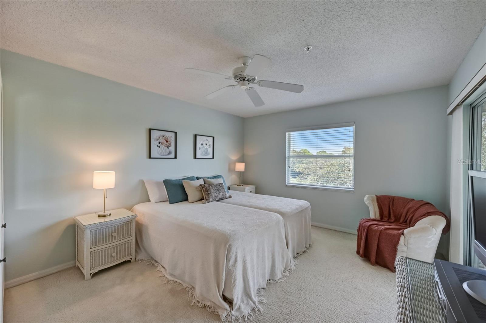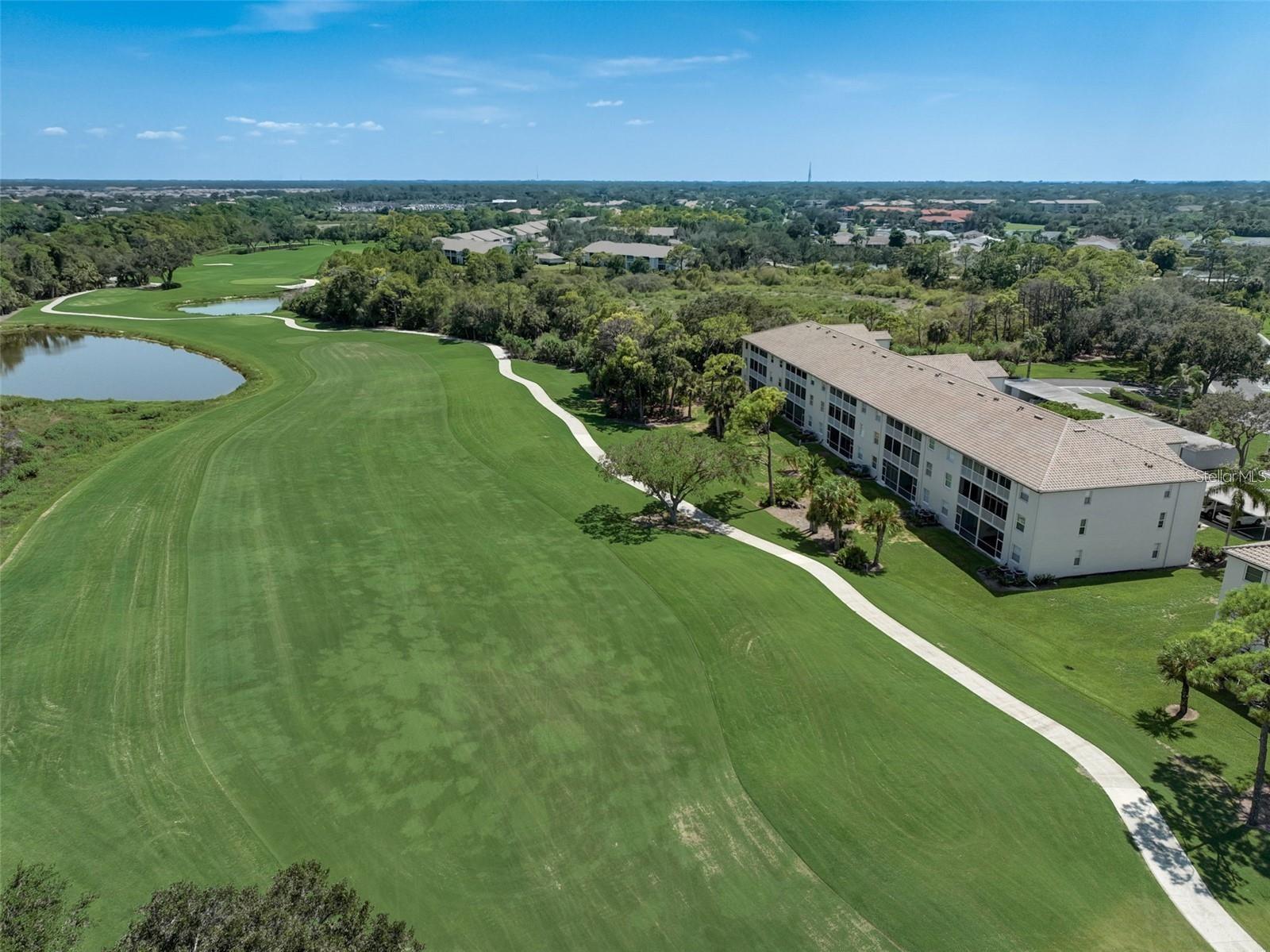 Fully FURNISHED with new roof. Welcome to this rarely available top floor 2-bedroom/2-bathroom condo boasting breath-taking views of the 8th fairway, lake and green in the coveted Stoneybrook neighborhood of Sarasota. This meticulously maintained unit offers a perfect blend of comfort, convenience, and luxury living, all wrapped up in the quintessential Florida lifestyle. Step inside to discover an expansive living space adorned with a cathedral ceiling, accentuating the grandeur of the living room along with a spacious sitting room. The newly updated elevator ensures easy access to this serene abode, while the enclosed lanai sliding glass doors are proofed to 130 mph wind protection, providing peace of mind. The condo's layout is thoughtfully designed, featuring a spacious kitchen with extended full length cupboards for extra storage, a dining area for hosting gatherings, and a living room perfect for relaxation. The kitchen overlooks the dining/living area, fostering an ideal environment for both casual meals and formal entertaining. Two generously sized bedrooms await, including a master suite boasting an ensuite bathroom, a large walk in closet, and two additional closets for ample storage. A second bedroom, next to a full bathroom, offers comfortable accommodation for guests or family members. Enhancing the living space further is the enclosed and air-conditioned lanai, serving as an inviting retreat to soak in the picturesque views and enjoy the Florida weather year-round. Residents of this community enjoy access to an array of state-of-the-art amenities, including a sparkling community pool, a clubhouse, and a fully equipped fitness center. As a bonus, the newly improved golf course reopened in January 2025, offering endless opportunities for golf, leisure, and recreation. For avid golfers, membership in the updated and completely refurbished Stoneybrook Golf & Country Club is included, granting access to an 18-hole Arthur Hills and Kipp Schulties designed golf course, a pro shop and lighted Har-Tru tennis/pickleball courts, among other amenities. Conveniently located just minutes from the Legacy Trail, this condo provides easy access to shopping, dining, entertainment, and the Gulf beaches, allowing residents to indulge in the best of Sarasota living. Don't miss out on the chance to make this exceptional condo your own and experience the epitome of Florida living at its finest. Schedule your private tour today and embark on a journey to luxury, comfort, and relaxation in the heart of Sarasota's coveted Stoneybrook community.