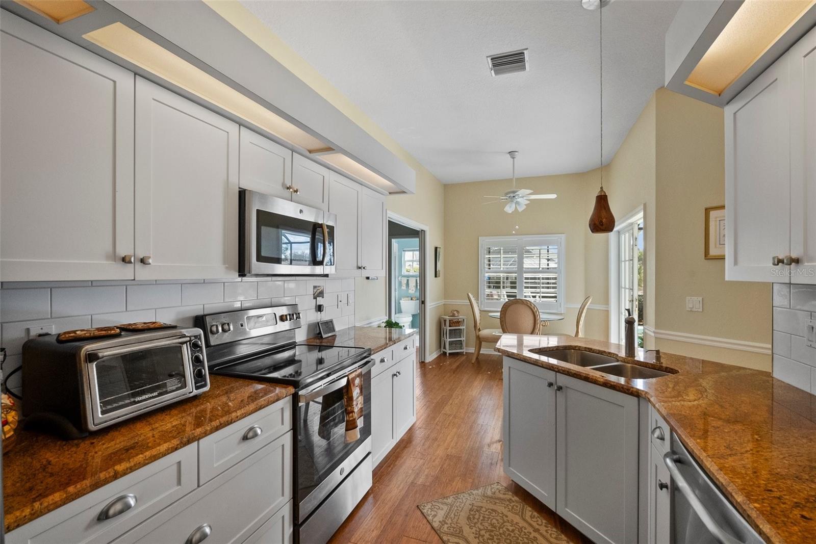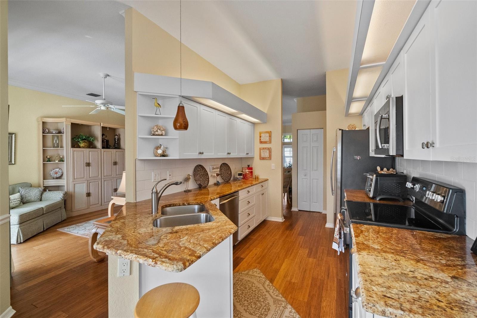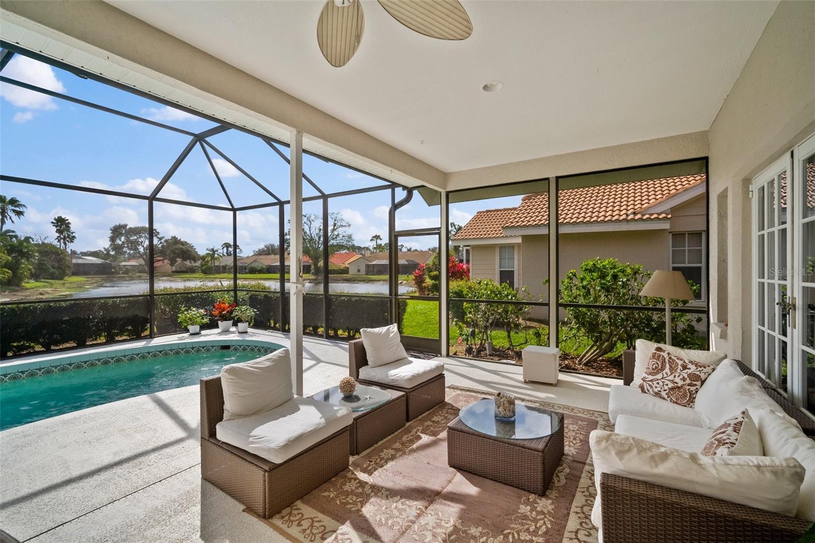 SELLER IS EXTREMELY MOTIVATED! BRING ALL OFFERS! This stunning lakefront, pool home in the highly desirable Mote Ranch community offers exceptional value with its prime location, low HOA fees and numerous updates, including a brand new AC and a well-maintained 8-year-old barrel tile roof. Featuring three bedrooms and three full baths this home is designed for both comfort and style. The impressive open-concept living area showcases gorgeous bamboo flooring, plantation shutters, soaring volume ceilings, and elegant crown molding. The dining nook provides an additional dining area with a scenic view of the expansive lanai. The kitchen is a chef’s delight, equipped with GE Profile stainless steel appliances, a pantry, and a versatile wet bar— ideal for a coffee or wine station. The thoughtfully designed split-bedroom floor plan ensures privacy. The spacious primary suite includes a large walk-in closet and an en-suite bath, The second bedroom, comparable in size to a primary suite, also features a walk-in closet and private bath, making it an ideal guest retreat or in-law suite. French doors throughout the home lead to a sprawling outdoor area, complete with a screened-in pool deck and breathtaking long-lake views. With southern exposure, you avoid direct sunlight and can enjoy morning coffee, al fresco dining, or evening stargazing while taking in the tranquil waterfront setting. Situating close to the University Park corridor, Mote Ranch provides easy access to Sarasota’s top shopping, dining, and cultural attractions, including Whole Foods, Fresh Market, UTC Mall, and Benderson Park. Plus, it is just a 10-minute drive to SRQ, 15-minute drive to Downtown Sarasota, and a 30-minute drive to St. Armand’s circle and our pristine, crystal sand beaches. Community amenities include a heated junior Olympic-sized pool, kayak launch, and playground.