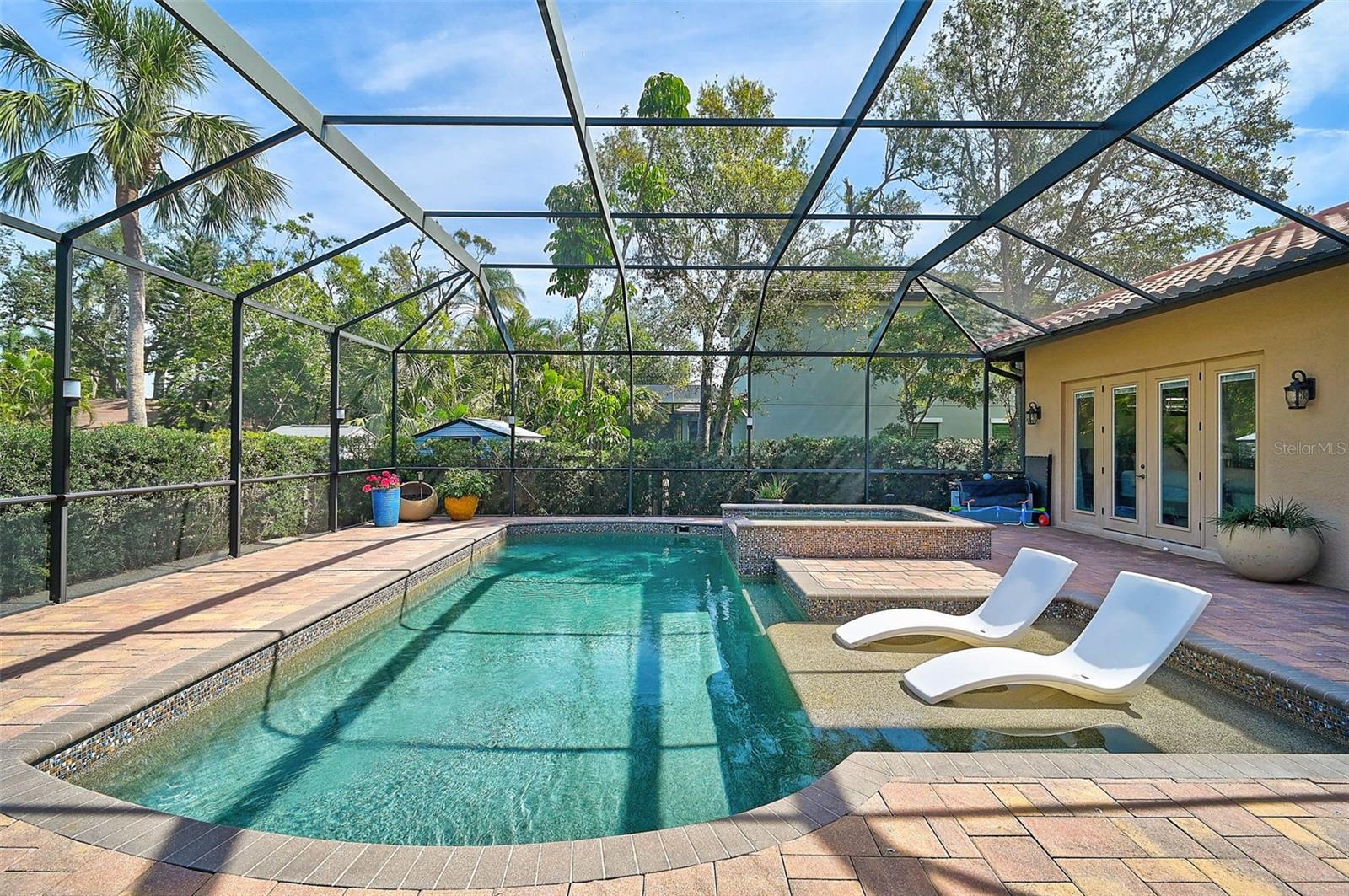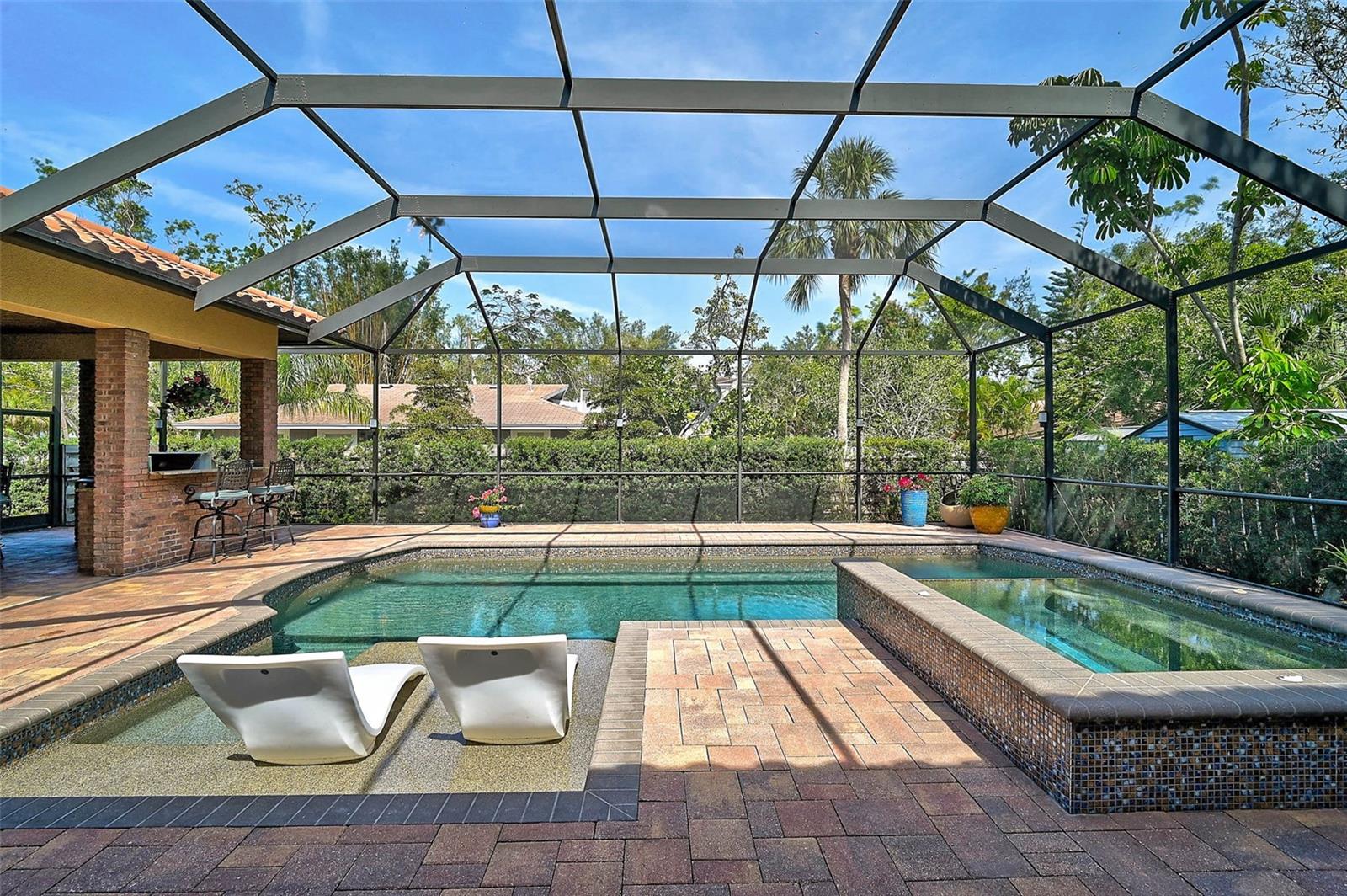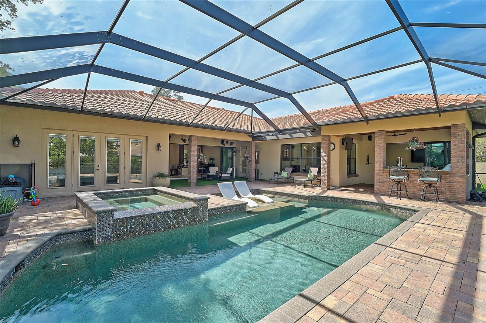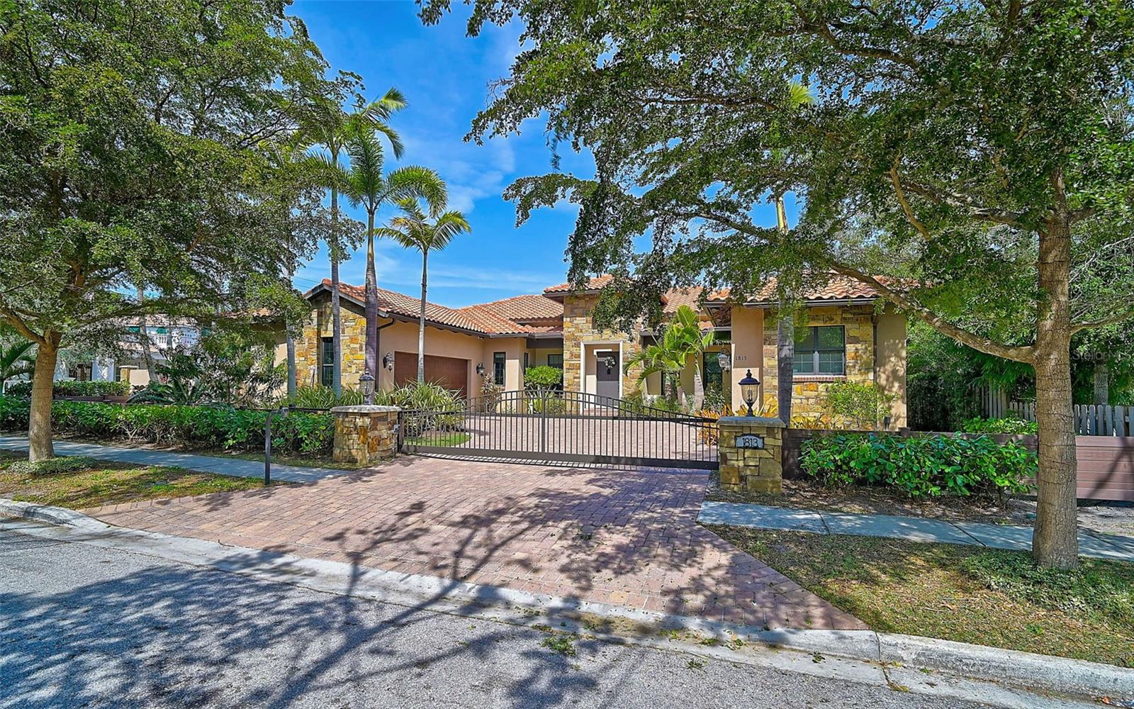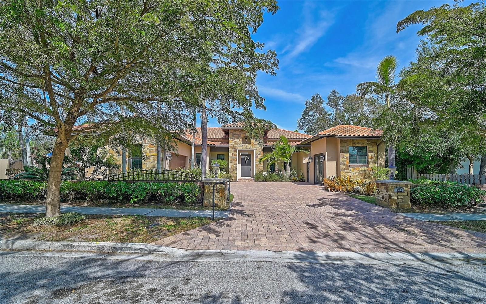 Welcome to La Casa Benedetta, a luxurious Tuscan-inspired retreat nestled in the West of the Trail neighborhood of Hartsdale, adjacent to Southside Village. This custom-built masterpiece sits on an expansive double lot and showcases impeccable craftsmanship, top-tier finishes, and modern conveniences. From the moment you step inside, you’ll be captivated by soaring ceilings, 8-foot tall solid wood doors, and exquisite travertine flooring that flows seamlessly throughout the home. Designed for both elegance and comfort, the spacious living area features a striking stone fireplace, stylish new light fixtures, and designer shades, all opening effortlessly to the poolside oasis. The thoughtfully designed split floor plan offers privacy and functionality, with the oversized primary suite situated on the east wing—complete with a remodeled spa-like bathroom, a soaking tub, and double walk-in closets. On the west side, the gourmet kitchen is a chef’s dream, boasting a large island, granite countertops, gas cooktop w/ pot filler, solid wood cabinetry, stainless steel appliances, and a walk-in pantry. It seamlessly connects to the inviting family room, making it perfect for casual gatherings. Two additional private ensuite bedrooms, a third bedroom, and a dedicated office, a poolside half-bath, and an oversized laundry room with ample storage complete this wing of the home. Wine enthusiasts will appreciate the distinctive dining and wine room, which includes a dual-zone wine cooler and ample storage for your prized collection. Step outside to discover an entertainer’s paradise—an expansive outdoor living area with a heated pool and spa, a sun shelf for lounging, and a fully equipped outdoor kitchen. Plus, the home is powered by natural gas, supplying the kitchen, fireplace, outdoor grill, and pool heater. This home offers lots of space, storage, and options to work or play, thanks to the generous two-car garage and the additional office space, thoughtfully converted from the original 12'x10' storage garage. Ideally situated just a short distance from Southside Village, Morton’s Market, Libby’s, and Sarasota Memorial Hospital, with Siesta Key and downtown Sarasota only minutes away. A rare blend of quality, space, location, and value—La Casa Benedetta is the dream home you’ve been searching for. Schedule your private tour today!