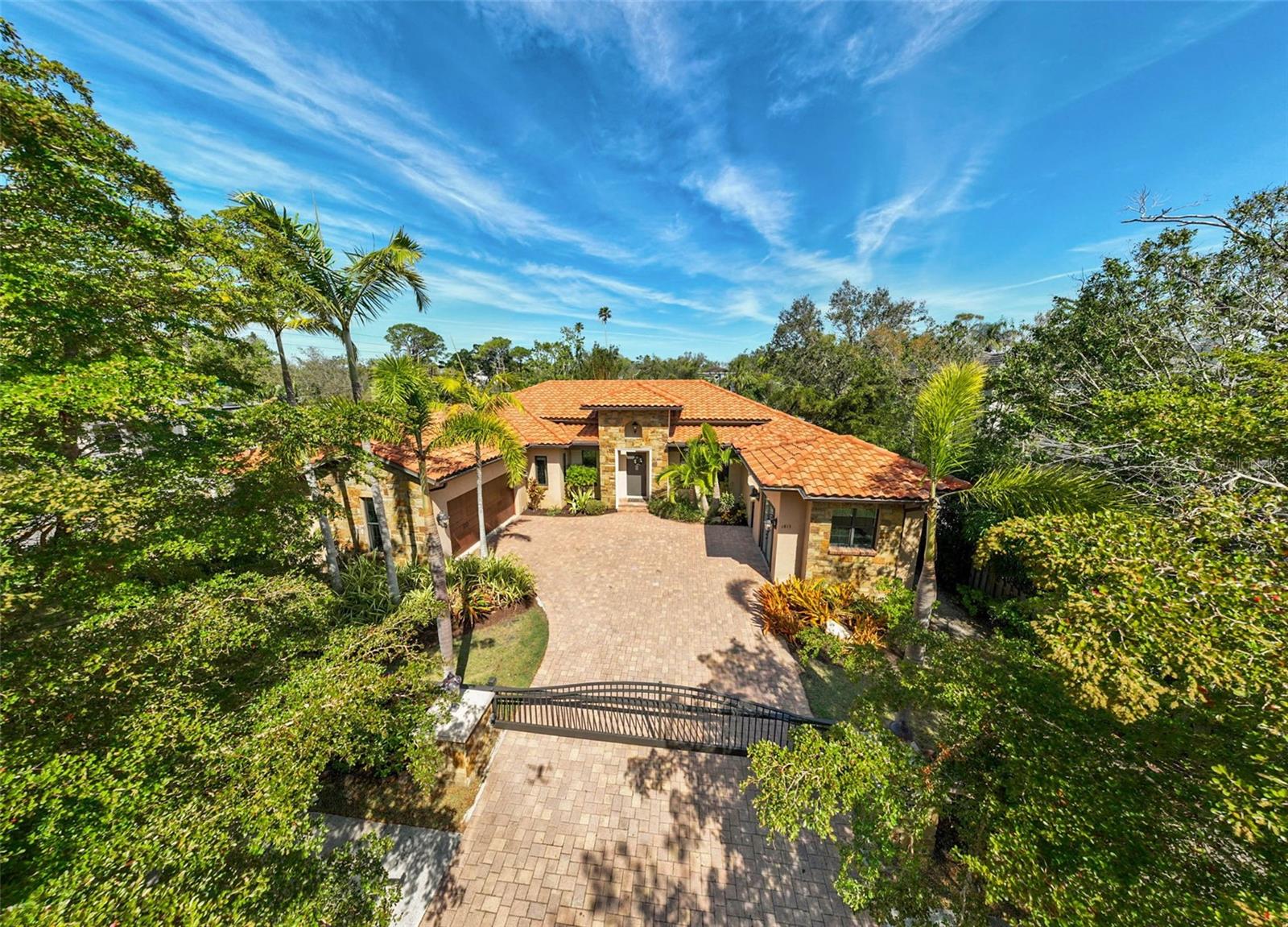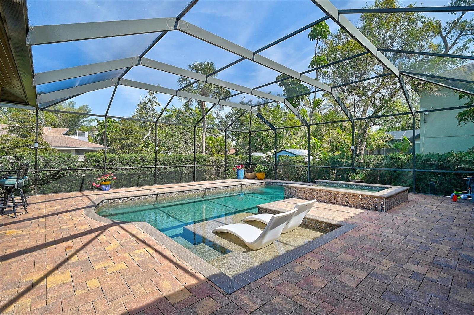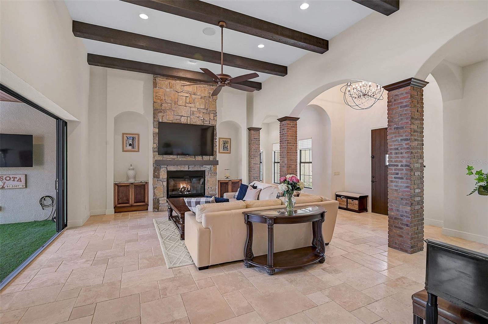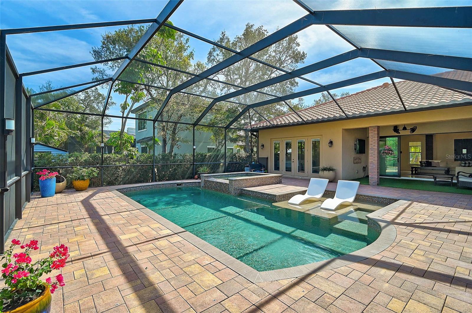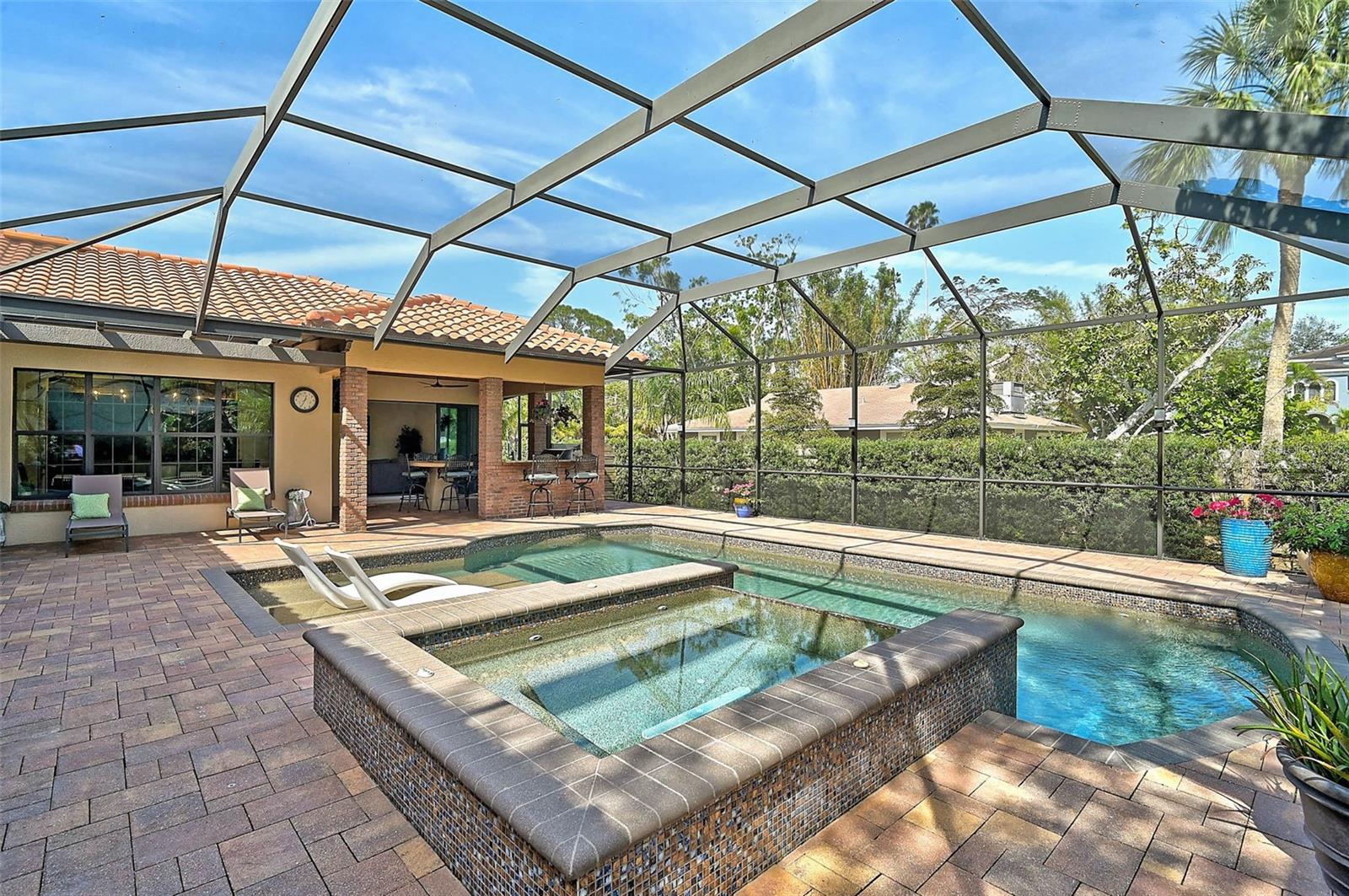Welcome to La Casa Benedetta, a luxurious Tuscan-inspired retreat nestled in the West of the Trail neighborhood of Hartsdale, adjacent to Southside Village. This custom-built masterpiece sits on an expansive double lot and showcases impeccable craftsmanship, top-tier finishes, and modern conveniences. From the moment you step inside, you’ll be captivated by soaring ceilings, 8-foot tall solid wood doors, and exquisite travertine flooring that flows seamlessly throughout the home. Designed for both elegance and comfort, the spacious living area features a striking stone fireplace, stylish new light fixtures, and designer shades, all opening effortlessly to the poolside oasis. The thoughtfully designed split floor plan offers privacy and functionality, with the oversized primary suite situated on the east wing—complete with a remodeled spa-like bathroom, a soaking tub, and double walk-in closets. On the west side, the gourmet kitchen is a chef’s dream, boasting a large island, granite countertops, gas cooktop w/ pot filler, solid wood cabinetry, stainless steel appliances, and a walk-in pantry. It seamlessly connects to the inviting family room, making it perfect for casual gatherings. Two additional private ensuite bedrooms, a third bedroom, and a dedicated office, a poolside half-bath, and an oversized laundry room with ample storage complete this wing of the home. Wine enthusiasts will appreciate the distinctive dining and wine room, which includes a dual-zone wine cooler and ample storage for your prized collection. Step outside to discover an entertainer’s paradise—an expansive outdoor living area with a heated pool and spa, a sun shelf for lounging, and a fully equipped outdoor kitchen. Plus, the home is powered by natural gas, supplying the kitchen, fireplace, outdoor grill, and pool heater. This home offers lots of space, storage, and options to work or play, thanks to the generous two-car garage and the additional office space, thoughtfully converted from the original 12'x10' storage garage. Ideally situated just a short distance from Southside Village, Morton’s Market, Libby’s, and Sarasota Memorial Hospital, with Siesta Key and downtown Sarasota only minutes away. A rare blend of quality, space, location, and value—La Casa Benedetta is the dream home you’ve been searching for. Schedule your private tour today!