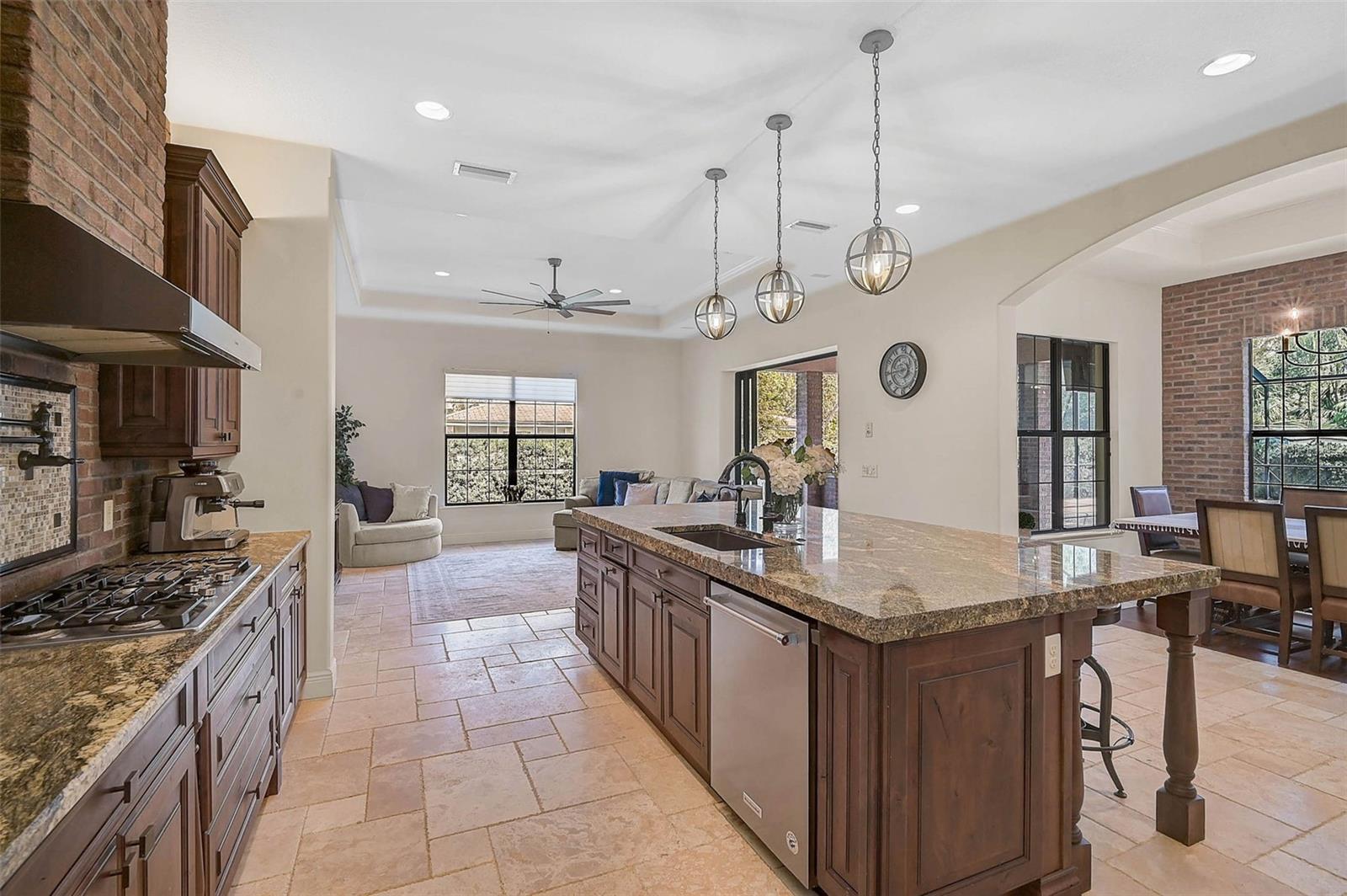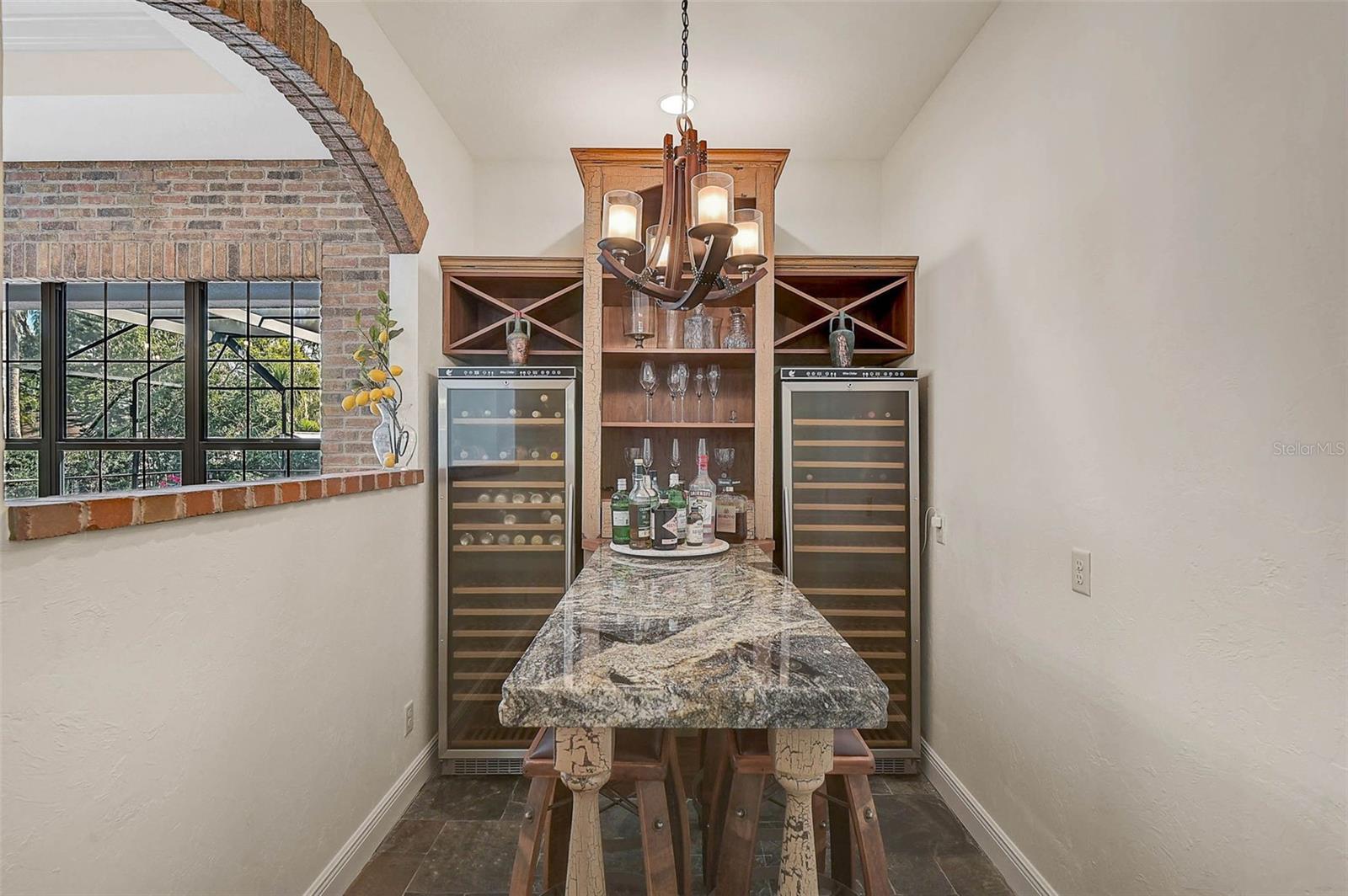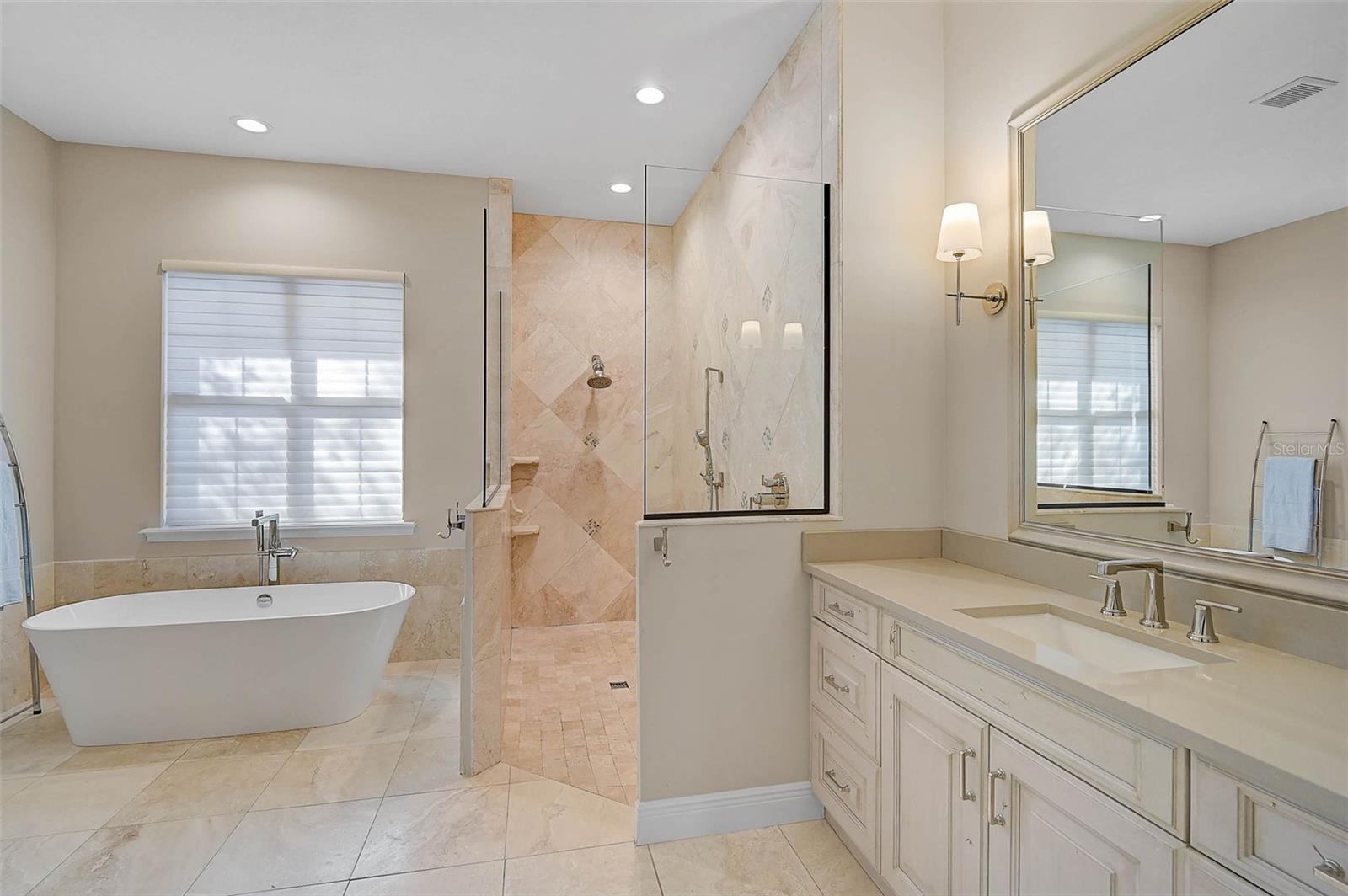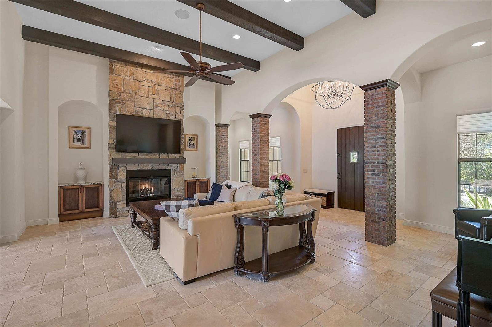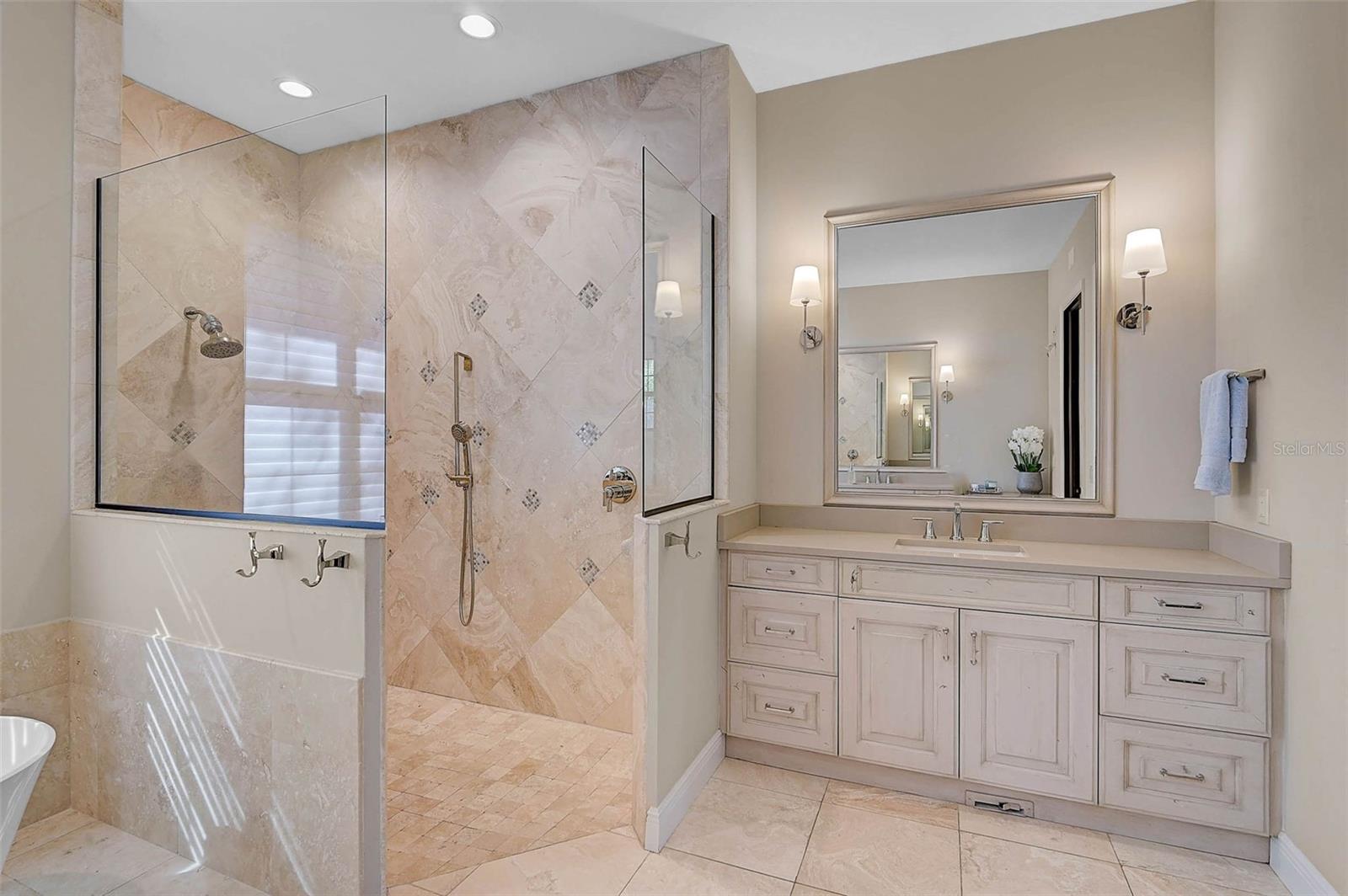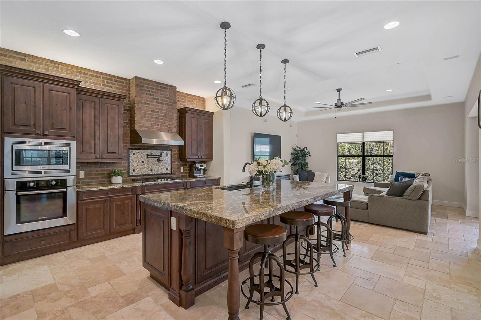 Welcome to La Casa Benedetta, a luxurious Tuscan-inspired retreat nestled in the West of the Trail neighborhood of Hartsdale, adjacent to Southside Village. This custom-built masterpiece sits on an expansive double lot and showcases impeccable craftsmanship, top-tier finishes, and modern conveniences. From the moment you step inside, you’ll be captivated by soaring ceilings, 8-foot tall solid wood doors, and exquisite travertine flooring that flows seamlessly throughout the home. Designed for both elegance and comfort, the spacious living area features a striking stone fireplace, stylish new light fixtures, and designer shades, all opening effortlessly to the poolside oasis. The thoughtfully designed split floor plan offers privacy and functionality, with the oversized primary suite situated on the east wing—complete with a remodeled spa-like bathroom, a soaking tub, and double walk-in closets. On the west side, the gourmet kitchen is a chef’s dream, boasting a large island, granite countertops, gas cooktop w/ pot filler, solid wood cabinetry, stainless steel appliances, and a walk-in pantry. It seamlessly connects to the inviting family room, making it perfect for casual gatherings. Two additional private ensuite bedrooms, a third bedroom, and a dedicated office, a poolside half-bath, and an oversized laundry room with ample storage complete this wing of the home. Wine enthusiasts will appreciate the distinctive dining and wine room, which includes a dual-zone wine cooler and ample storage for your prized collection. Step outside to discover an entertainer’s paradise—an expansive outdoor living area with a heated pool and spa, a sun shelf for lounging, and a fully equipped outdoor kitchen. Plus, the home is powered by natural gas, supplying the kitchen, fireplace, outdoor grill, and pool heater. This home offers lots of space, storage, and options to work or play, thanks to the generous two-car garage and the additional office space, thoughtfully converted from the original 12'x10' storage garage. Ideally situated just a short distance from Southside Village, Morton’s Market, Libby’s, and Sarasota Memorial Hospital, with Siesta Key and downtown Sarasota only minutes away. A rare blend of quality, space, location, and value—La Casa Benedetta is the dream home you’ve been searching for. Schedule your private tour today!