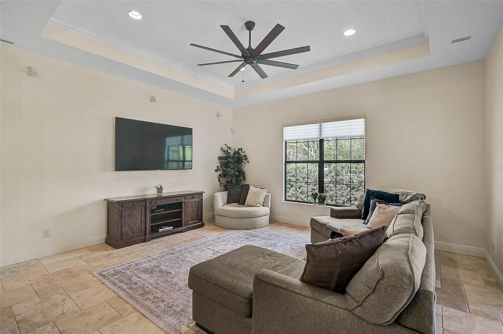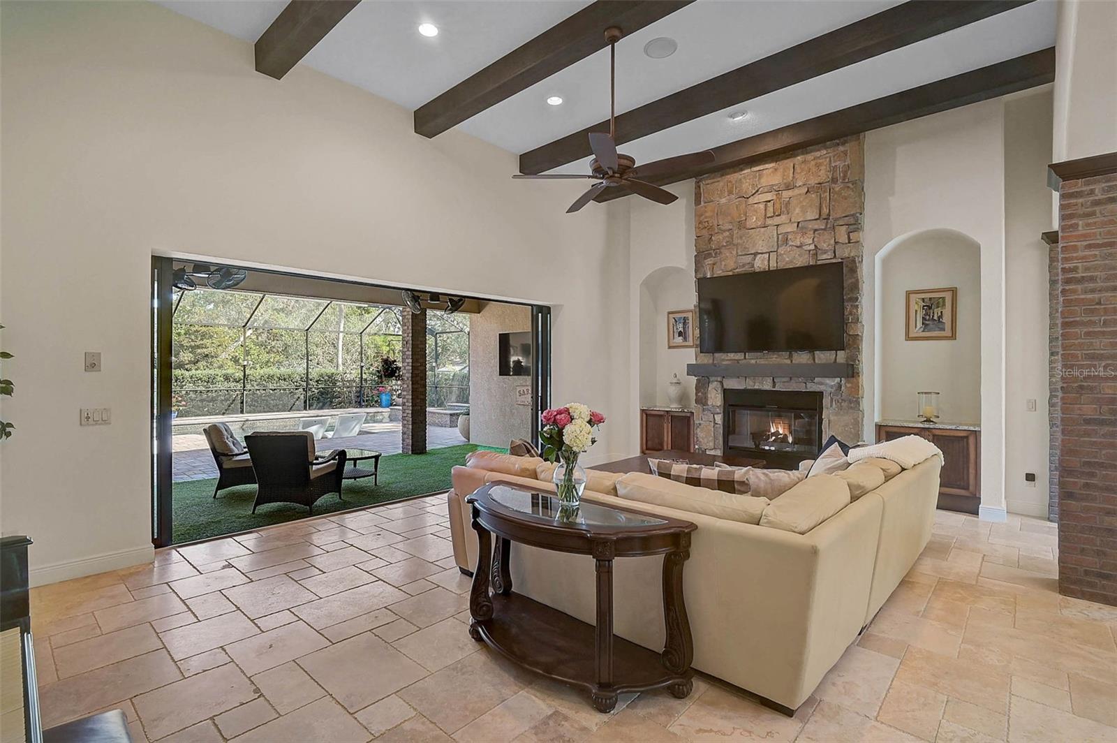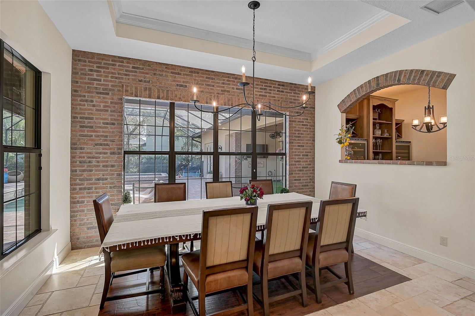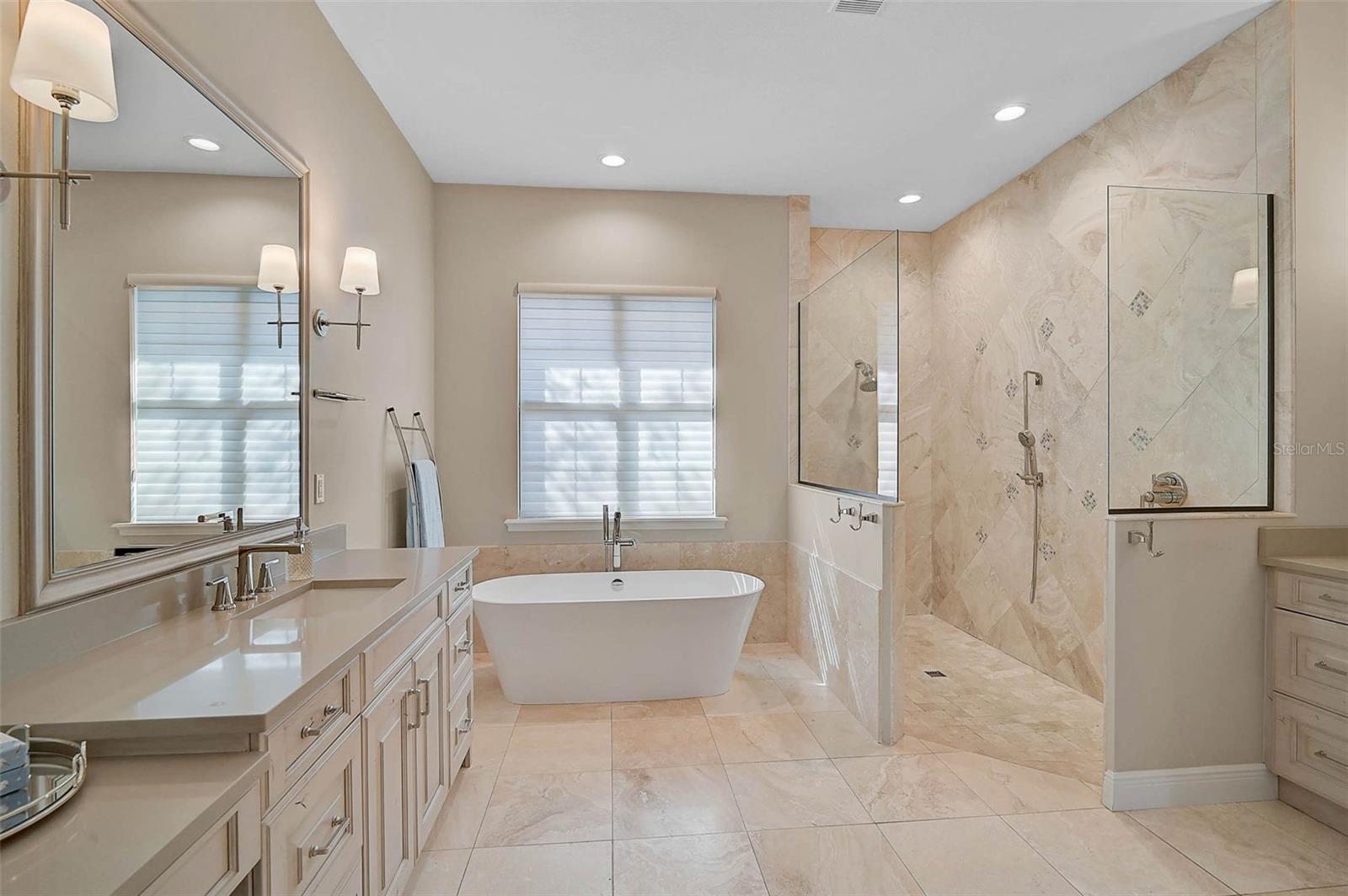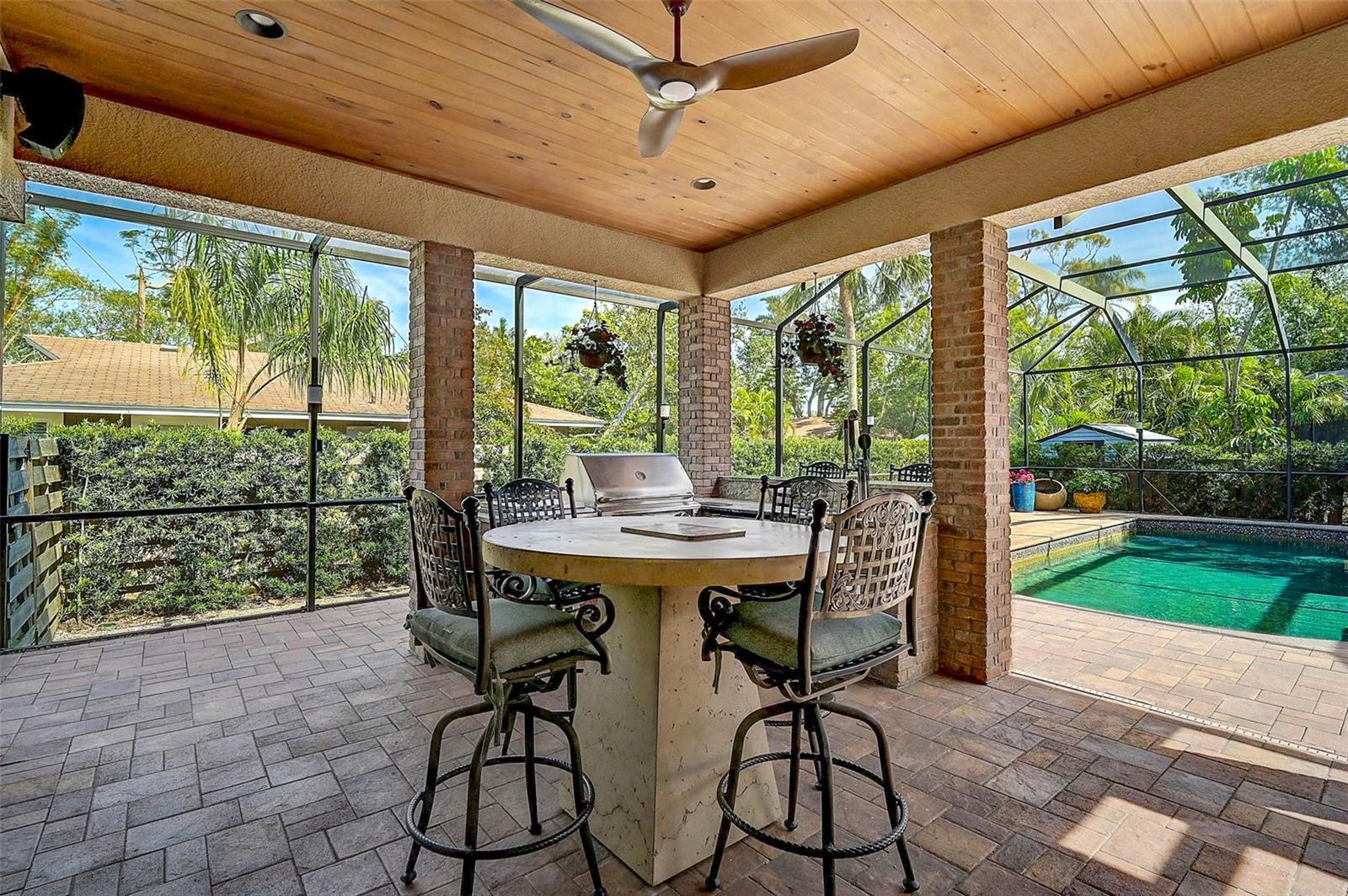 Welcome to La Casa Benedetta, a luxurious Tuscan-inspired retreat nestled in the West of the Trail neighborhood of Hartsdale, adjacent to Southside Village. This custom-built masterpiece sits on an expansive double lot and showcases impeccable craftsmanship, top-tier finishes, and modern conveniences. From the moment you step inside, you’ll be captivated by soaring ceilings, 8-foot tall solid wood doors, and exquisite travertine flooring that flows seamlessly throughout the home. Designed for both elegance and comfort, the spacious living area features a striking stone fireplace, stylish new light fixtures, and designer shades, all opening effortlessly to the poolside oasis. The thoughtfully designed split floor plan offers privacy and functionality, with the oversized primary suite situated on the east wing—complete with a remodeled spa-like bathroom, a soaking tub, and double walk-in closets. On the west side, the gourmet kitchen is a chef’s dream, boasting a large island, granite countertops, gas cooktop w/ pot filler, solid wood cabinetry, stainless steel appliances, and a walk-in pantry. It seamlessly connects to the inviting family room, making it perfect for casual gatherings. Two additional private ensuite bedrooms, a third bedroom, and a dedicated office, a poolside half-bath, and an oversized laundry room with ample storage complete this wing of the home. Wine enthusiasts will appreciate the distinctive dining and wine room, which includes a dual-zone wine cooler and ample storage for your prized collection. Step outside to discover an entertainer’s paradise—an expansive outdoor living area with a heated pool and spa, a sun shelf for lounging, and a fully equipped outdoor kitchen. Plus, the home is powered by natural gas, supplying the kitchen, fireplace, outdoor grill, and pool heater. This home offers lots of space, storage, and options to work or play, thanks to the generous two-car garage and the additional office space, thoughtfully converted from the original 12'x10' storage garage. Ideally situated just a short distance from Southside Village, Morton’s Market, Libby’s, and Sarasota Memorial Hospital, with Siesta Key and downtown Sarasota only minutes away. A rare blend of quality, space, location, and value—La Casa Benedetta is the dream home you’ve been searching for. Schedule your private tour today!