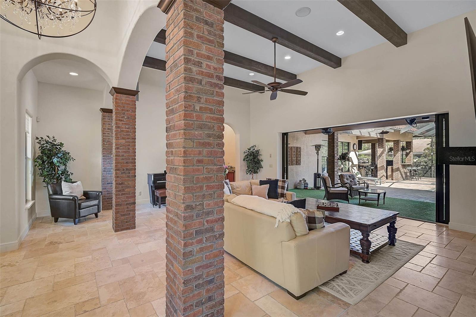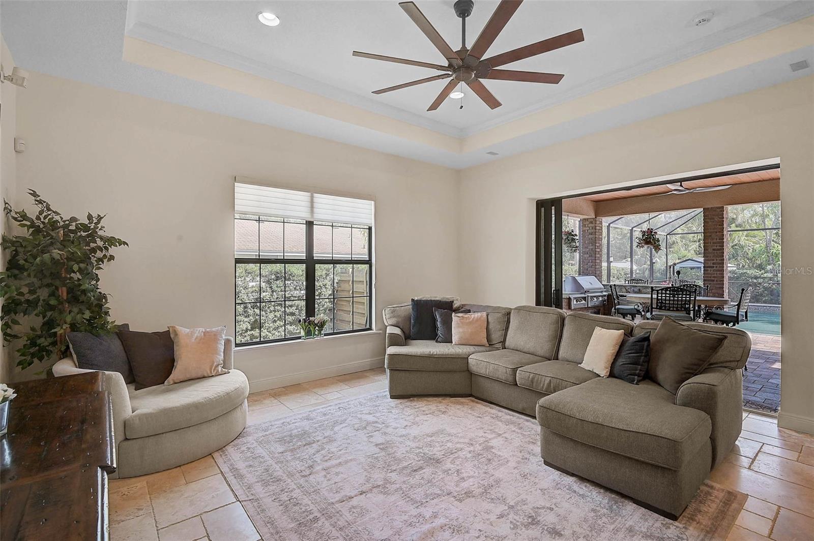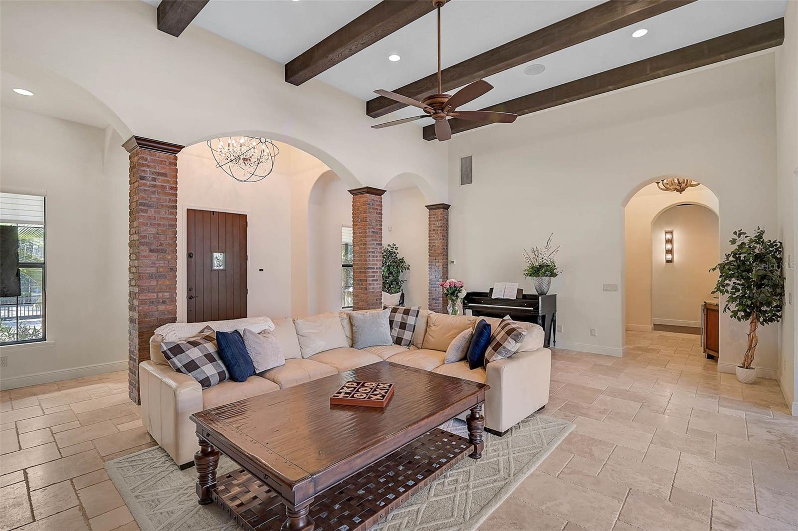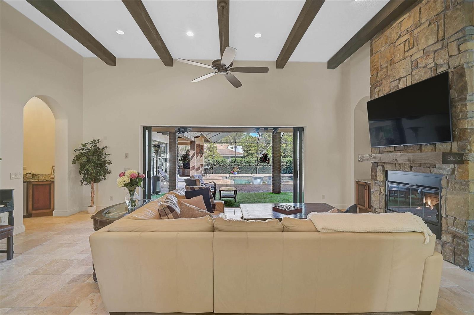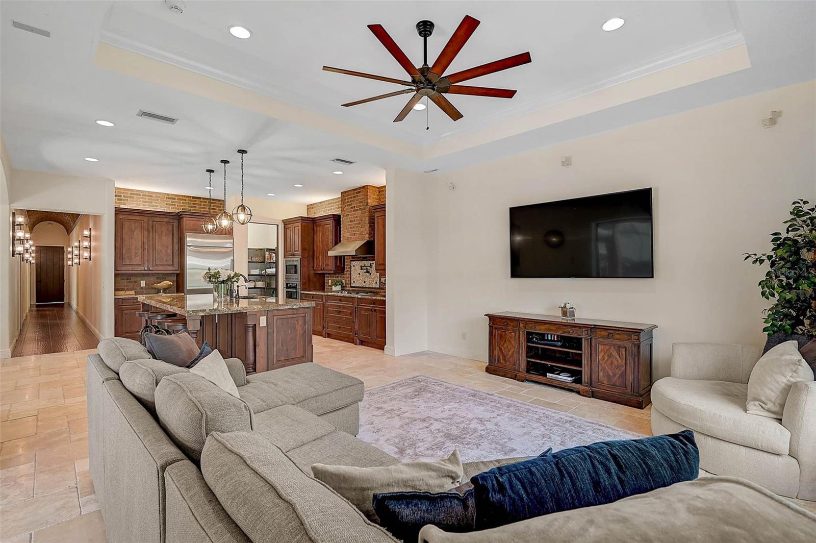 Welcome to La Casa Benedetta, a luxurious Tuscan-inspired retreat nestled in the West of the Trail neighborhood of Hartsdale, adjacent to Southside Village. This custom-built masterpiece sits on an expansive double lot and showcases impeccable craftsmanship, top-tier finishes, and modern conveniences. From the moment you step inside, you’ll be captivated by soaring ceilings, 8-foot tall solid wood doors, and exquisite travertine flooring that flows seamlessly throughout the home. Designed for both elegance and comfort, the spacious living area features a striking stone fireplace, stylish new light fixtures, and designer shades, all opening effortlessly to the poolside oasis. The thoughtfully designed split floor plan offers privacy and functionality, with the oversized primary suite situated on the east wing—complete with a remodeled spa-like bathroom, a soaking tub, and double walk-in closets. On the west side, the gourmet kitchen is a chef’s dream, boasting a large island, granite countertops, gas cooktop w/ pot filler, solid wood cabinetry, stainless steel appliances, and a walk-in pantry. It seamlessly connects to the inviting family room, making it perfect for casual gatherings. Two additional private ensuite bedrooms, a third bedroom, and a dedicated office, a poolside half-bath, and an oversized laundry room with ample storage complete this wing of the home. Wine enthusiasts will appreciate the distinctive dining and wine room, which includes a dual-zone wine cooler and ample storage for your prized collection. Step outside to discover an entertainer’s paradise—an expansive outdoor living area with a heated pool and spa, a sun shelf for lounging, and a fully equipped outdoor kitchen. Plus, the home is powered by natural gas, supplying the kitchen, fireplace, outdoor grill, and pool heater. This home offers lots of space, storage, and options to work or play, thanks to the generous two-car garage and the additional office space, thoughtfully converted from the original 12'x10' storage garage. Ideally situated just a short distance from Southside Village, Morton’s Market, Libby’s, and Sarasota Memorial Hospital, with Siesta Key and downtown Sarasota only minutes away. A rare blend of quality, space, location, and value—La Casa Benedetta is the dream home you’ve been searching for. Schedule your private tour today!