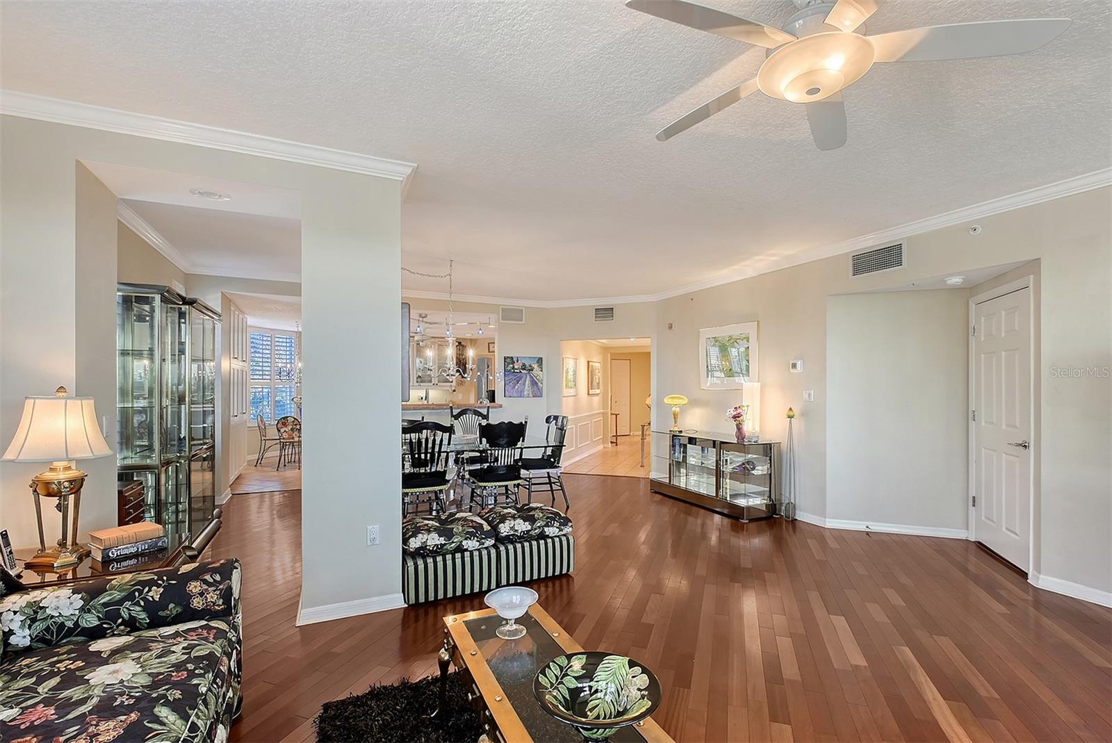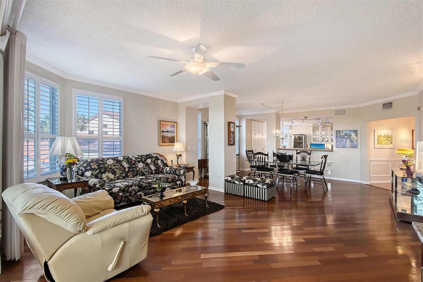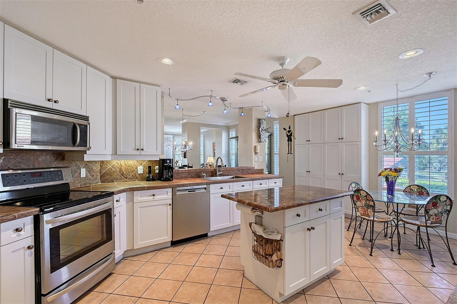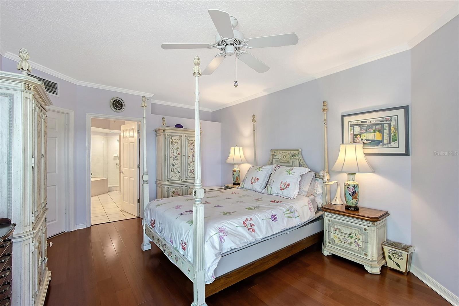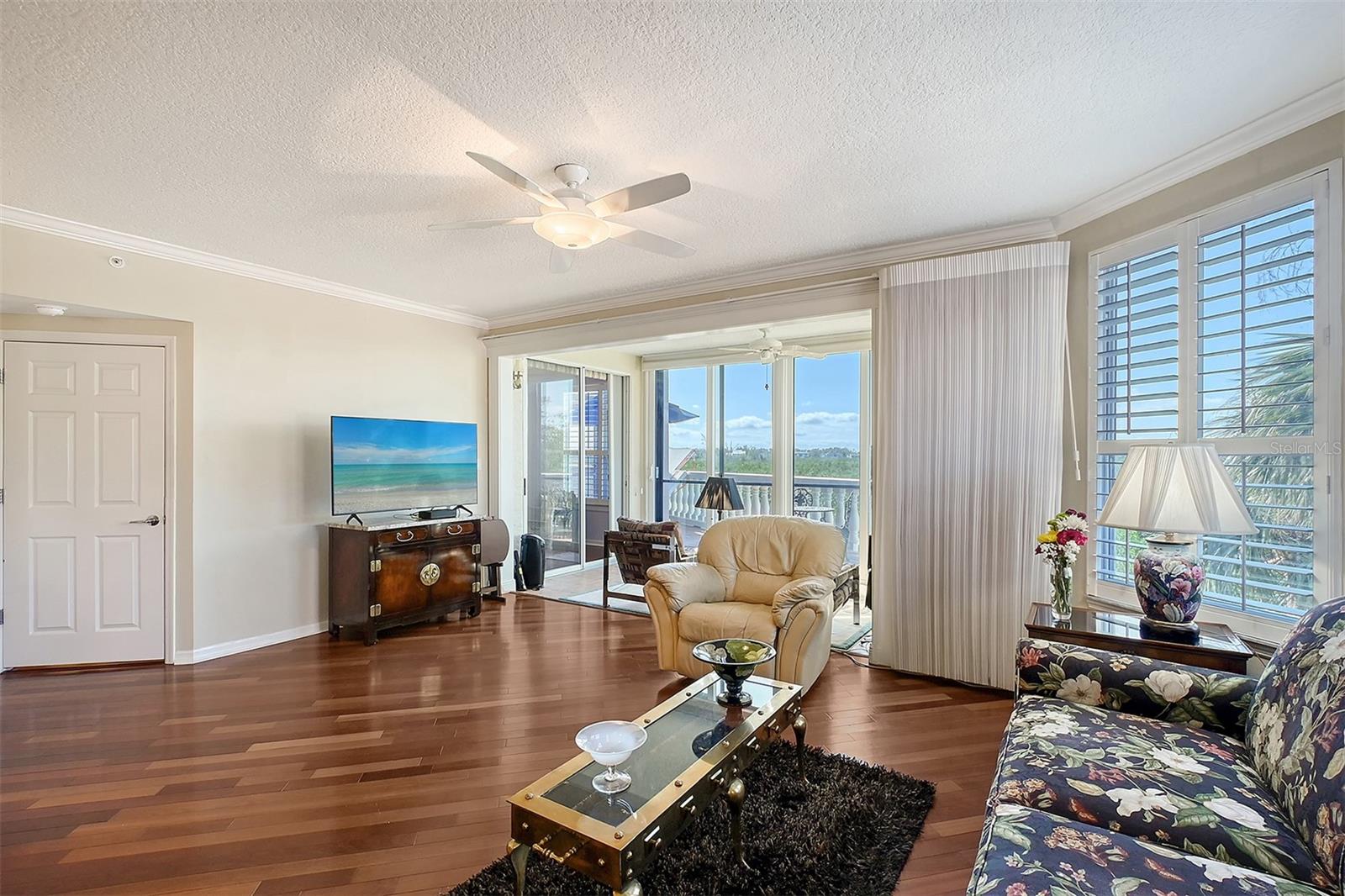 BEST PRICED 3 BR CONDO NEAR WATER! Enjoy gracious living in this 3 bedroom, 3 bath condo situated in the heart of Sarasota. Located in Eagles Point, within the gated community of The Landings, you will experience everyday living in comfort, while feeling like you are on vacation. As once you call this lovely unit home, you will be within minutes of Siesta Key and its World-Famous Beach, as well as Sarasota's vibrant Downtown. Enjoy all the shopping, dining, cultural and recreational options the area offers, or just stay home and enjoy this incredible condo and community. As you enter you will immediately be taken in by the expansive living areas. An end unit, the sun shines in from every direction filling the space with natural light. The warmth of the Brazilian cherry wood floors guides you from room to room, through the dining room, into the living room, and Florida room. The kitchen features newer cabinets and doorknobs, Italian tile countertops, a large granite island, ample storage, a walled pantry, a new stainless steel workstation sink, and a reverse osmosis water system with a warranty until February 2026. The dining room is spacious enough to accommodate large gatherings and the Swarovski chandelier adds a true touch of elegance. The expanded Florida room, with newer tile and hurricane sliders, provides over 2,000 square feet of living space. The balcony overlooks a natural mangrove habitat. This is the place to relax after a beautiful day take in one the Gulf Coast’s incredible sunsets. The main bedroom, also overlooking the natural habitat, has been recently painted in a soft, pastel shade. New Brazilian cherry wood floors have been added to the bedroom and the custom-designed main closet. The main bathroom features newer granite countertops, cabinets with new knobs, sinks and faucets, a new mirror with molding, an updated shower with a new shower head, grab bars, and doors, and a comfort-height toilet. The lighting fixtures have also been updated. Both guest rooms are generously sized. One guest room features views of the lake and plantation shutters, while the other, currently used as an office, also has lake views, new carpet, freshly painted, and plantation shutters. A lovely gallery with gallery lighting and ample wall space to display your favorite pieces welcomes you upon entering the home. Parking is under the building in a gated garage, and your deeded space and private storage room are near the secure lobby entrance. Want to enjoy resort living at home? Explore the grounds and everything it has to offer. Eagles Point has its own pool, and you can also enjoy access to all of the other community amenities, including the Landings Racquet Club featuring Har-Tru tennis courts, a pool, spa, sauna, and fitness center. There are walking paths that lead to the community gazebo on the bay where you can watch the boats and the birds, fish and relax. Don’t miss the opportunity to live, work and play in the middle of it all in sunny Sarasota!