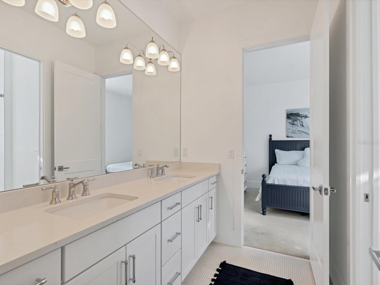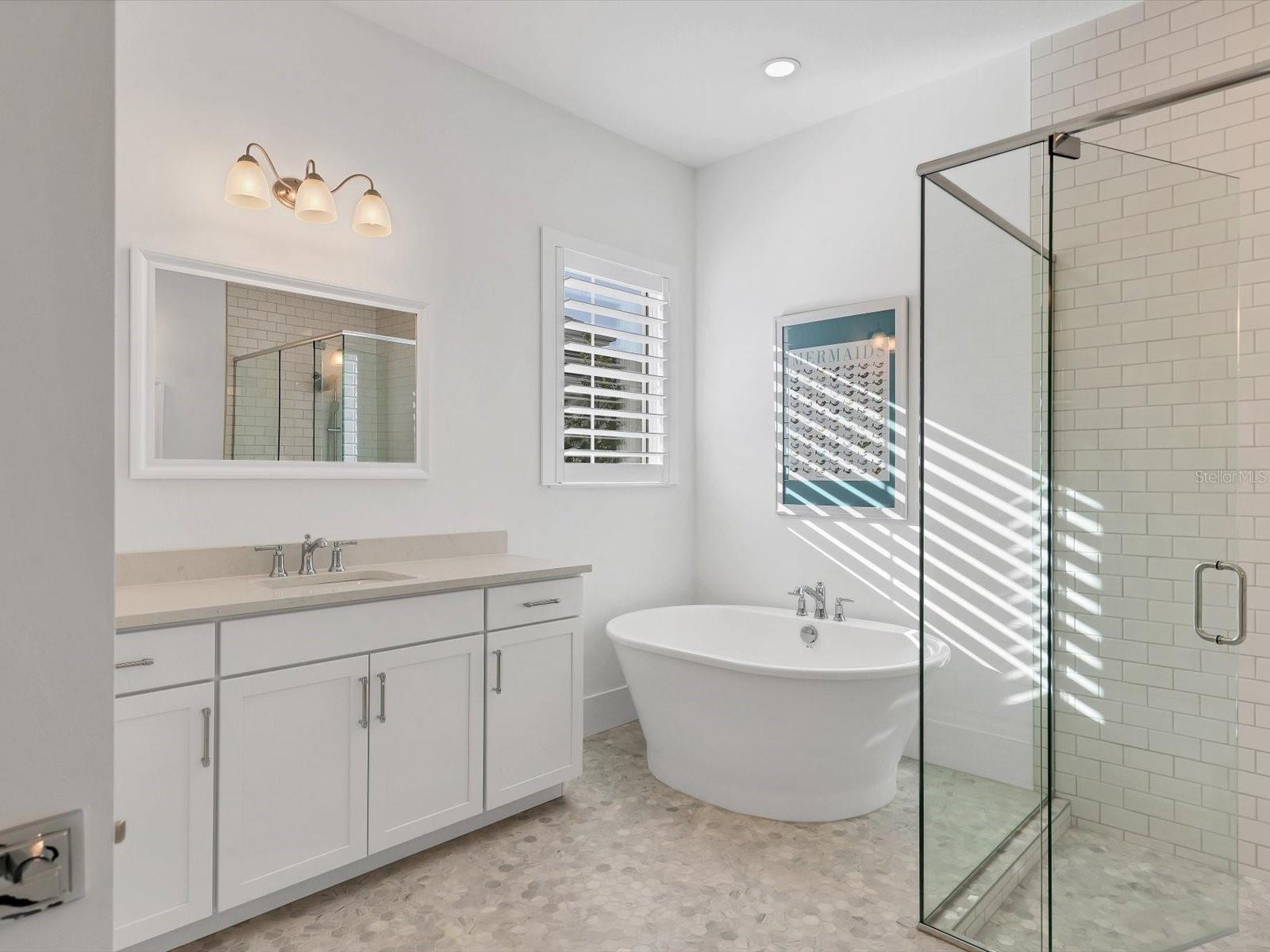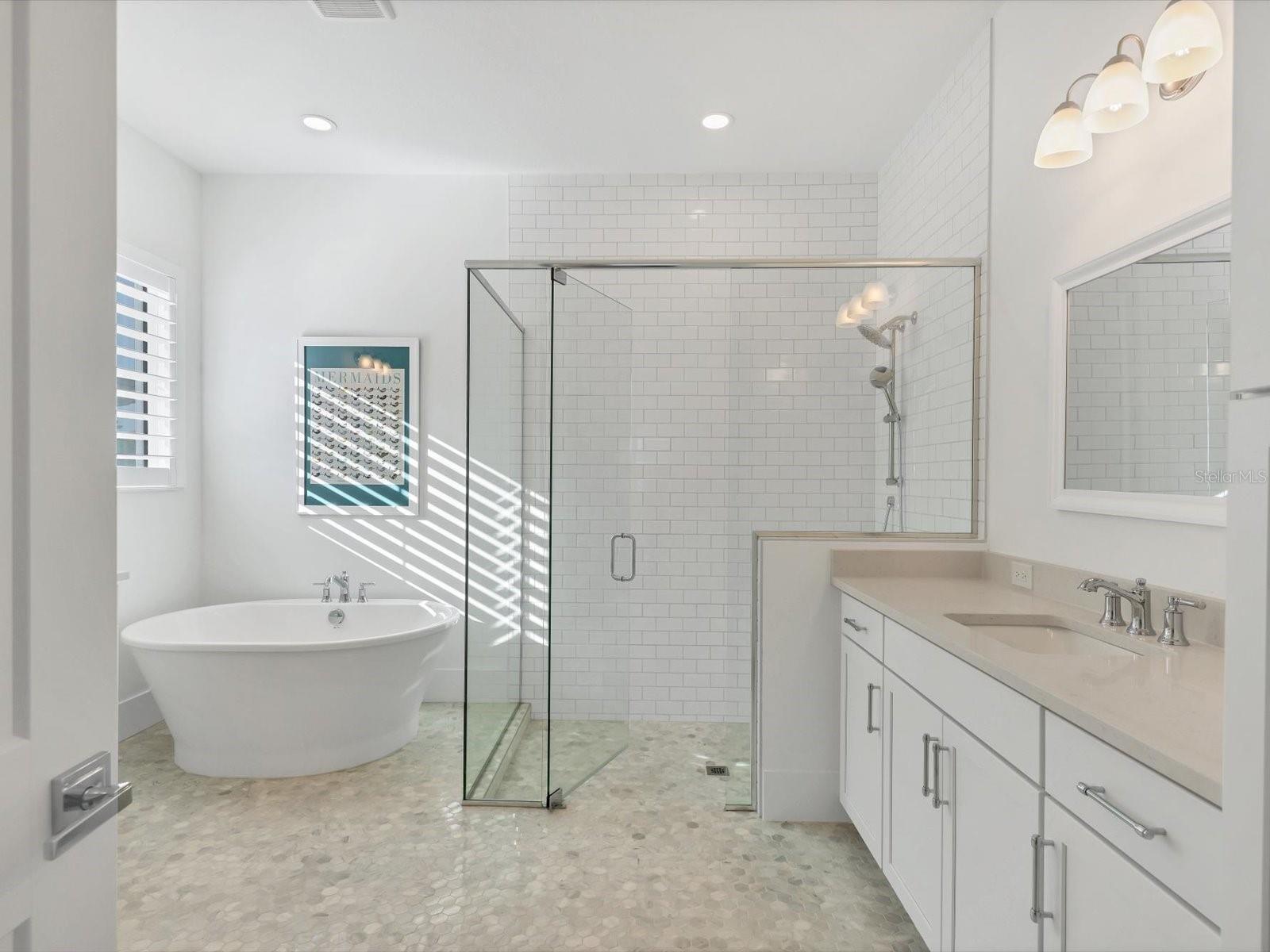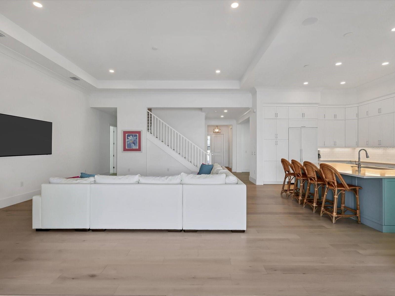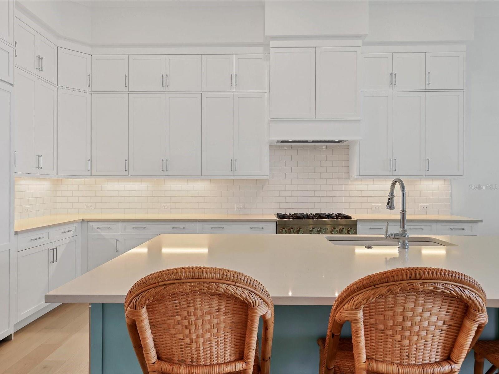 One or more photo(s) have been virtually staged. Experience Luxury Living with Breathtaking Water Views and Stunning Sunsets. Step into elegance with this custom-built, 5-bedroom, 4.5-bathroom masterpiece, perfectly designed for both comfort and sophistication. Nestled on a spacious 72’ lot, this Mayfield Grande III home offers a seamless blend of indoor and outdoor living, complete with a stunning water view that provides picturesque sunsets every evening. At the heart of the home, the gourmet kitchen boasts soft-close cabinetry, high-end Jenn-Air appliances, and an integrated refrigerator, ensuring a sleek and seamless aesthetic. The expansive 10-foot quartz island serves as the perfect gathering spot for entertaining, flowing effortlessly into the open-concept living space. Slide open the pocketing impact-resistant glass doors to reveal your private outdoor oasis, featuring a summer kitchen, saltwater pool and spa, and a panoramic screen overlooking the water—all designed for year-round enjoyment. The thoughtfully designed floor plan places the primary suite, three guest bedrooms, and a dedicated office on the first floor, while an additional guest suite, full bathroom, and loft provide privacy and flexibility upstairs. Elegant crown molding, soaring high ceilings, and premium finishes add to the home’s luxurious appeal. The three-car side-load garage, complete with epoxy flooring, offers ample space for vehicles and storage. Residents of Wild Blue enjoy an unmatched lifestyle, with access to an exclusive, resort-style clubhouse featuring concierge service, a theater, fitness studio, golf simulator, billiards, and an expansive pool complex with two resort-style swimming pools, a restaurant, and a patio bar. Outdoor enthusiasts will love the miles of scenic walking trails, a yoga lawn, and a putting green, while sports lovers can take advantage of the Midway Sports Complex with eight pickleball courts, six tennis courts, and a professional-grade pro shop. A dog park and playground add to the community’s appeal. For added convenience, maintenance-free living includes landscape maintenance and irrigation, allowing you to fully enjoy your home without the added stress. Located just minutes from Lakewood Ranch’s premier dining, shopping, and entertainment, this exceptional home offers the perfect blend of luxury, convenience, and an unbeatable lifestyle.
