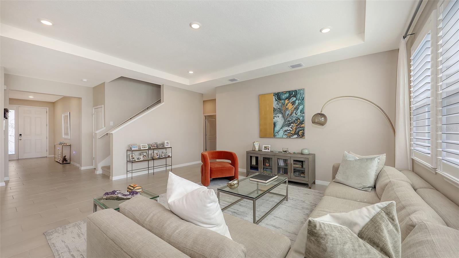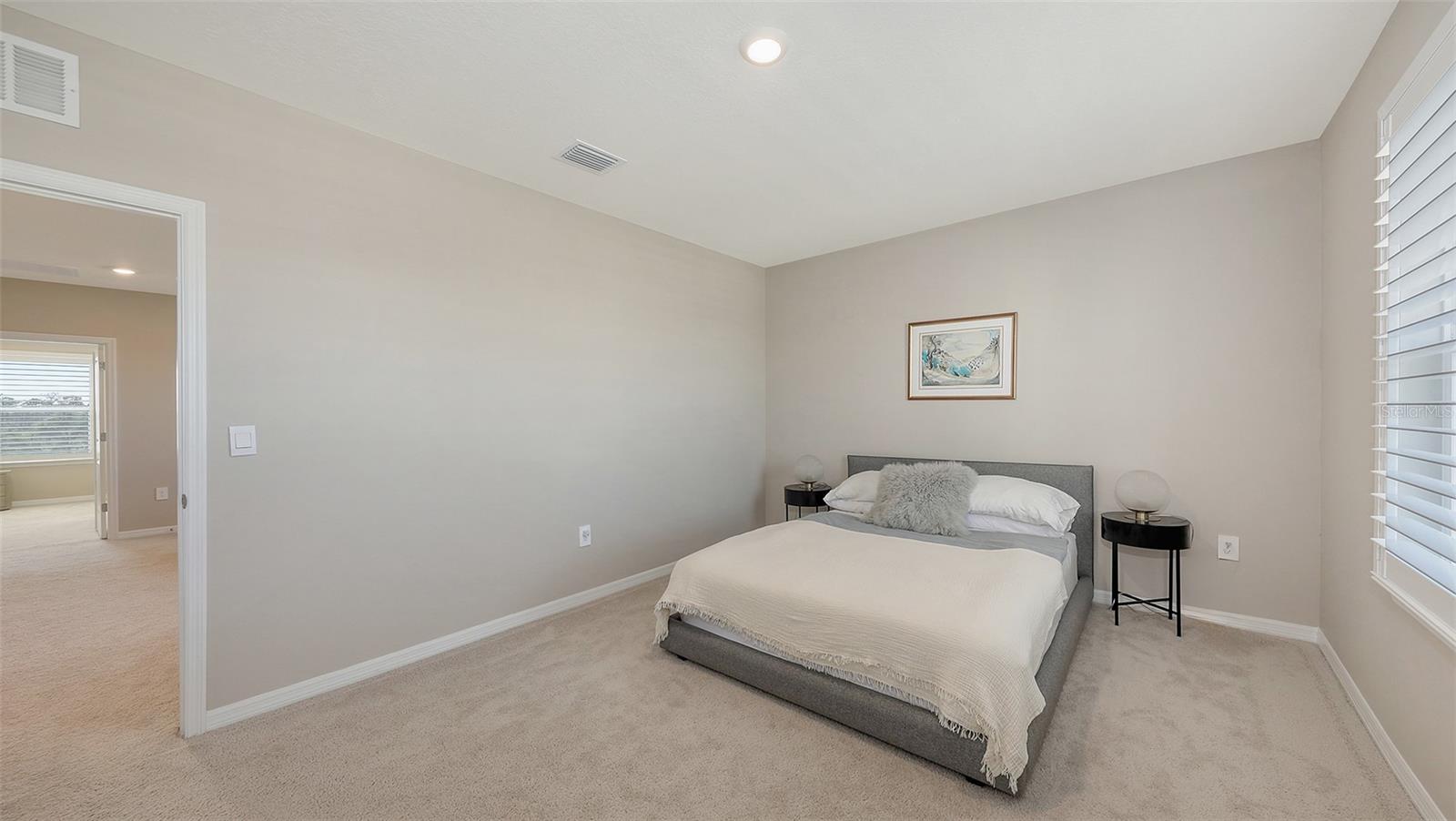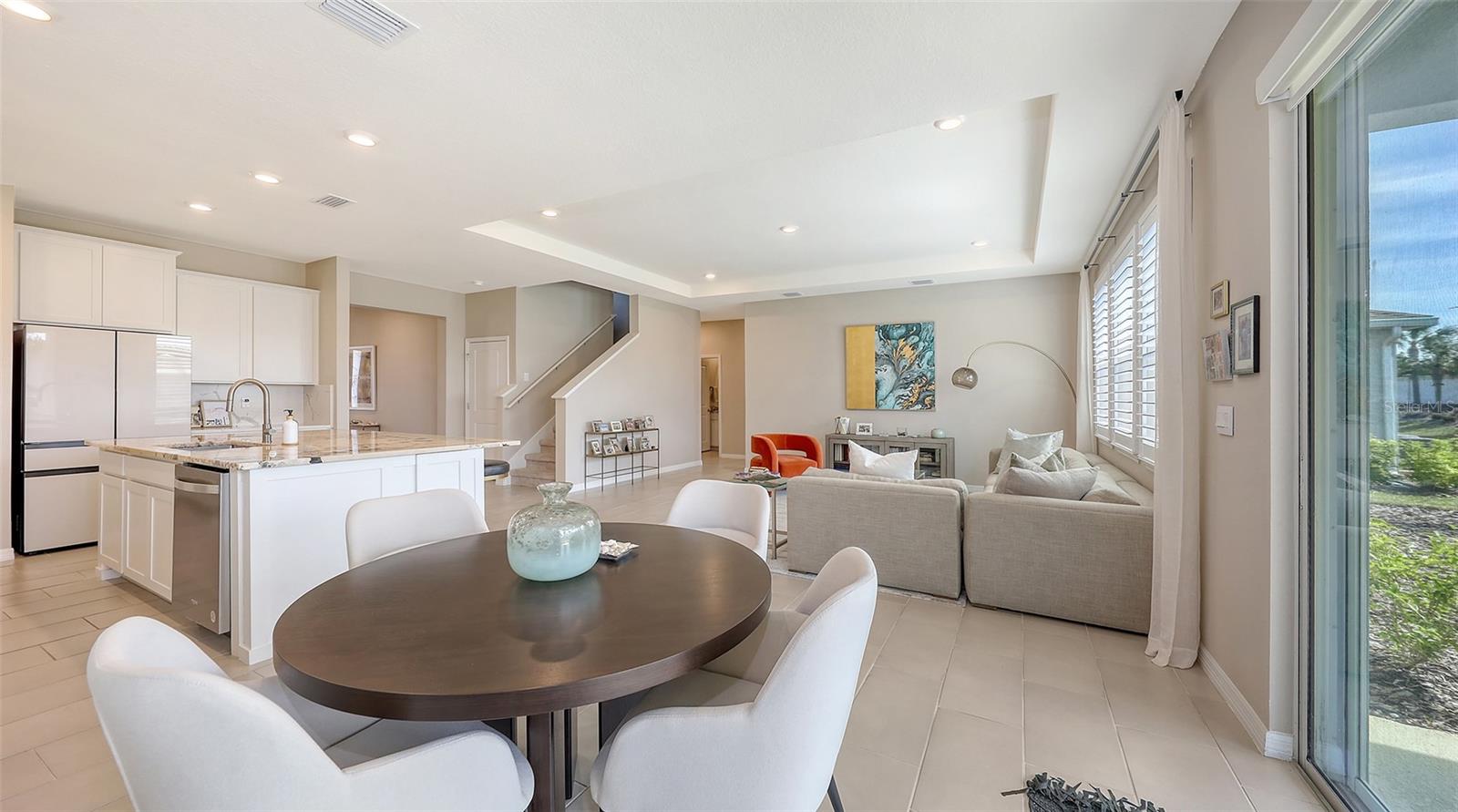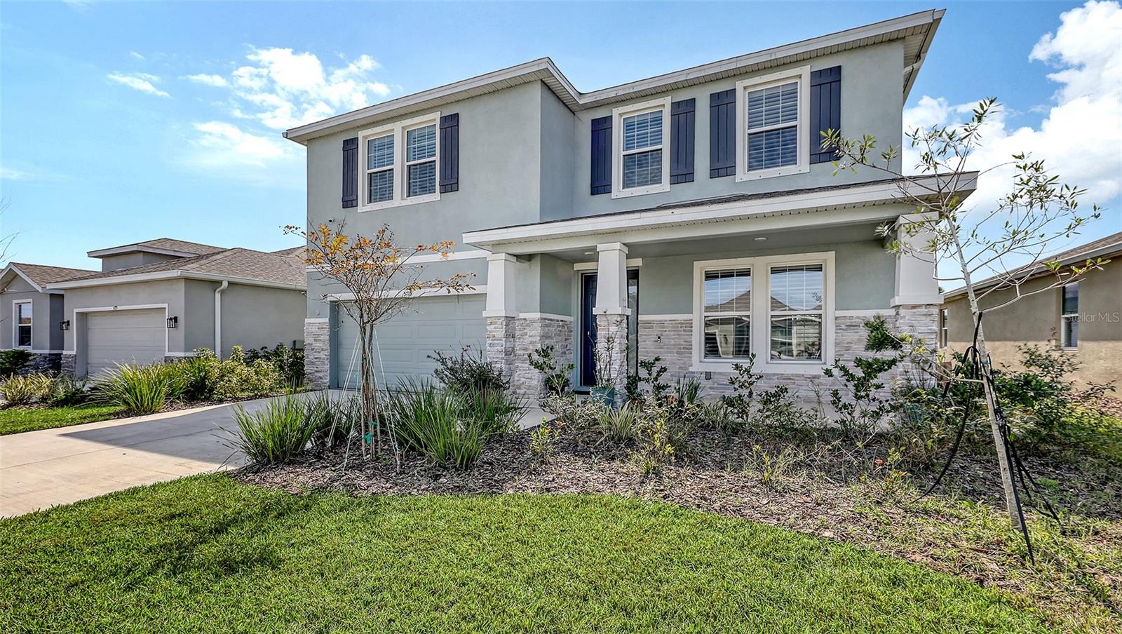 Welcome to this stunning, newer 4 bedroom, 3 bath home in the vibrant community of Promenade Estates. The original and only owners purchased it directly from the builder and immediately elevated it with high-end finishes, including porcelain wood-look tile, quartz and granite countertops, and top-of-the-line appliances. Step into the grand foyer, where you’re immediately drawn to the bright and airy kitchen and great room, bathed in natural light from the home’s beautiful southern exposure. The well-appointed kitchen, butler’s pantry, and formal dining room make this home an entertainer’s dream. The first-floor bedroom offers privacy for guests and is perfect for multi-generational living. Upstairs, a versatile loft space provides endless possibilities and showcases stunning long-lake views. The expansive primary suite features a spa-like bath and an oversized walk-in closet. Two additional bedrooms, a shared bath, and a conveniently located laundry room complete the second floor. With ample storage throughout and an attached two-car garage, this home is as functional as it is beautiful. Ideally located just minutes from the highly sought-after Pine View School, I-75, Legacy Trail, and a wealth of shopping and dining options, this home truly has it all.