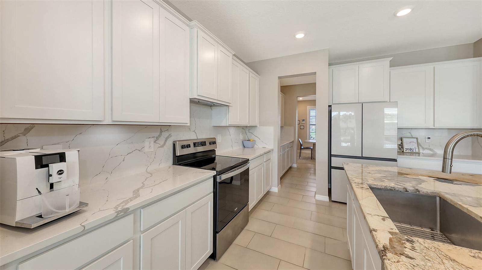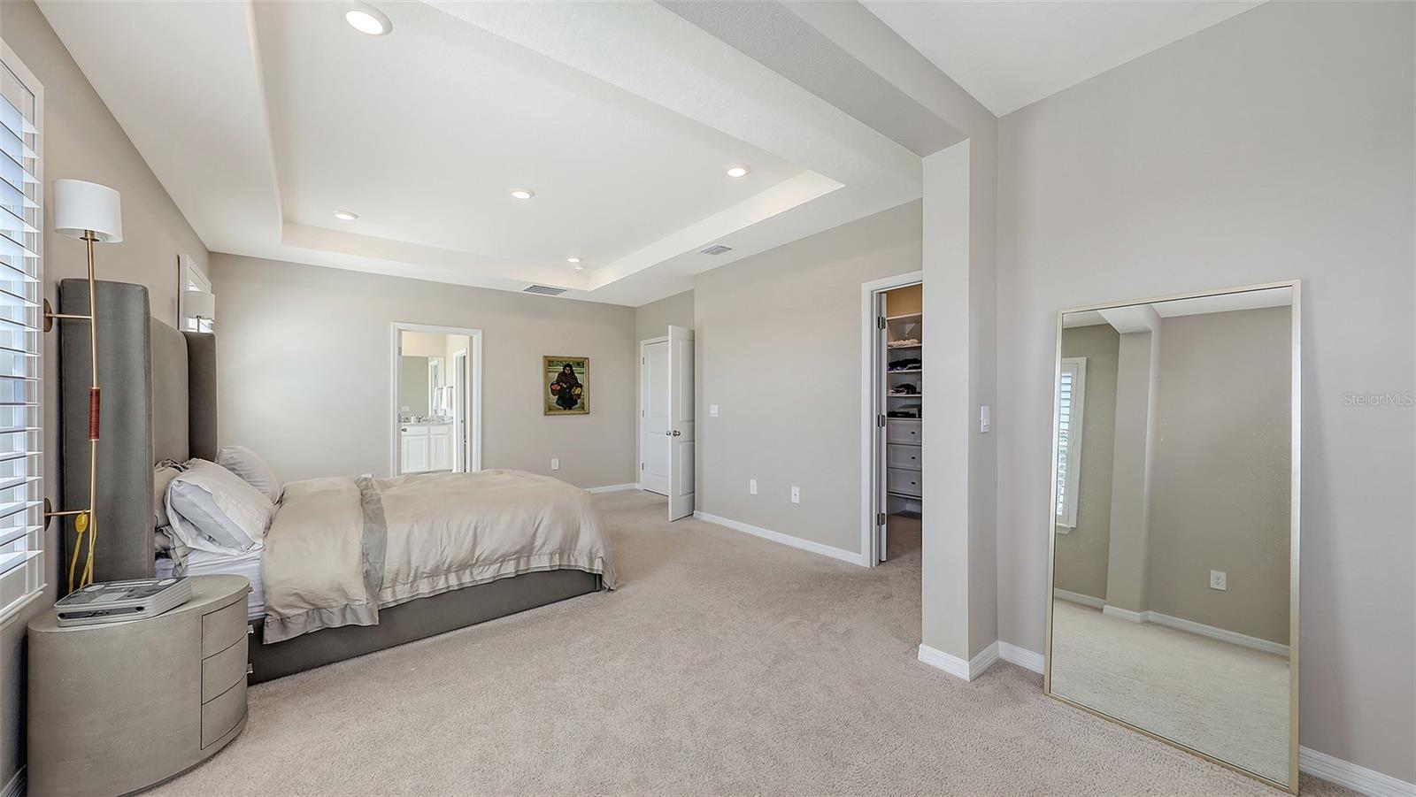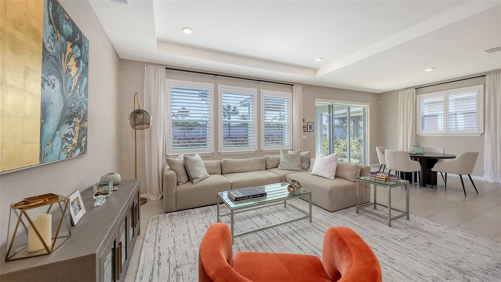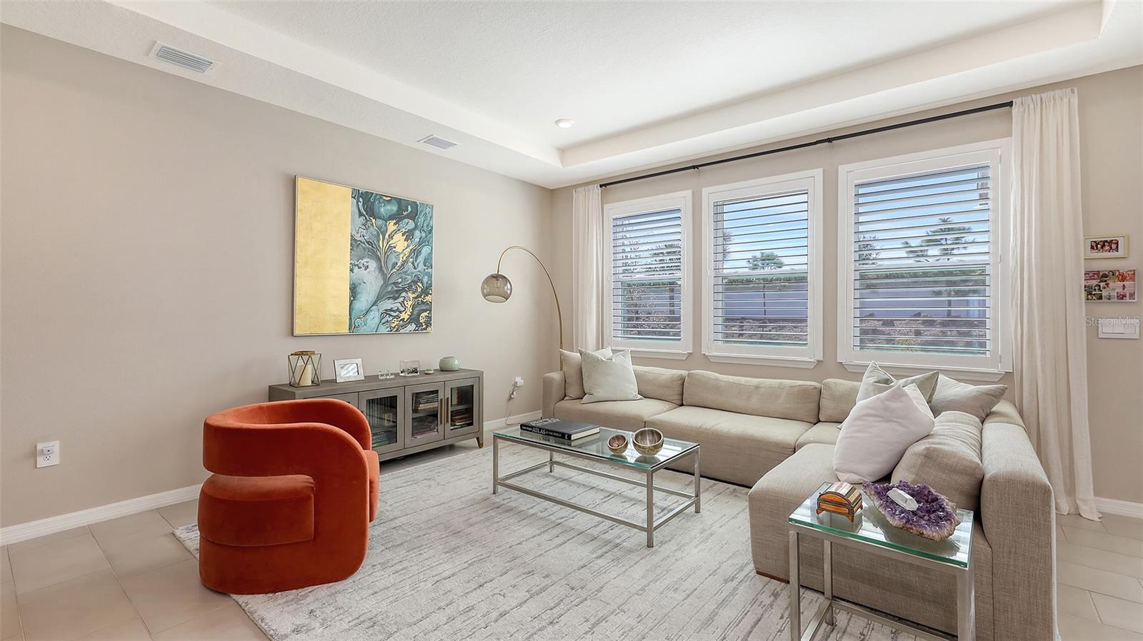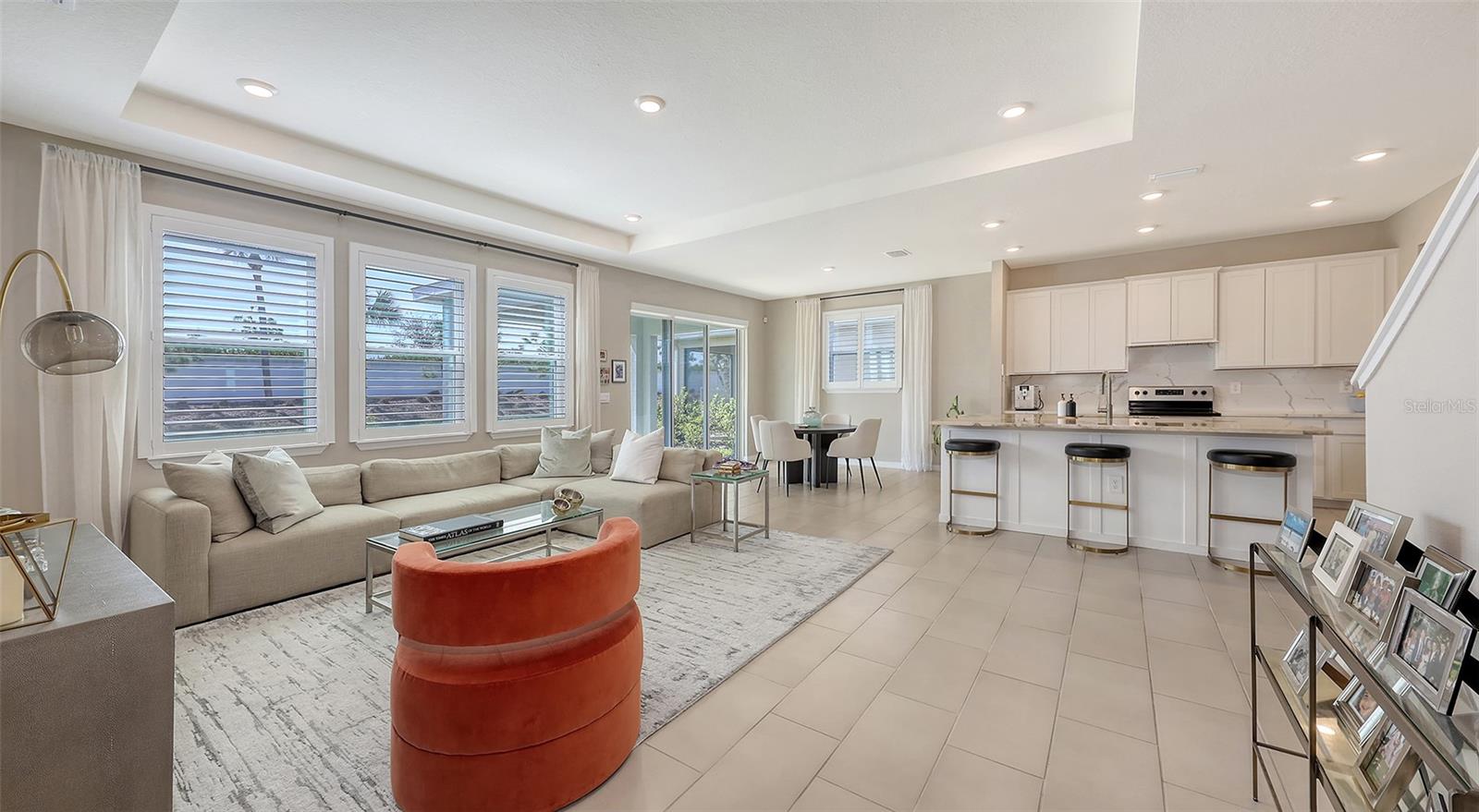 Welcome to this stunning, newer 4 bedroom, 3 bath home in the vibrant community of Promenade Estates. The original and only owners purchased it directly from the builder and immediately elevated it with high-end finishes, including porcelain wood-look tile, quartz and granite countertops, and top-of-the-line appliances. Step into the grand foyer, where you’re immediately drawn to the bright and airy kitchen and great room, bathed in natural light from the home’s beautiful southern exposure. The well-appointed kitchen, butler’s pantry, and formal dining room make this home an entertainer’s dream. The first-floor bedroom offers privacy for guests and is perfect for multi-generational living. Upstairs, a versatile loft space provides endless possibilities and showcases stunning long-lake views. The expansive primary suite features a spa-like bath and an oversized walk-in closet. Two additional bedrooms, a shared bath, and a conveniently located laundry room complete the second floor. With ample storage throughout and an attached two-car garage, this home is as functional as it is beautiful. Ideally located just minutes from the highly sought-after Pine View School, I-75, Legacy Trail, and a wealth of shopping and dining options, this home truly has it all.
