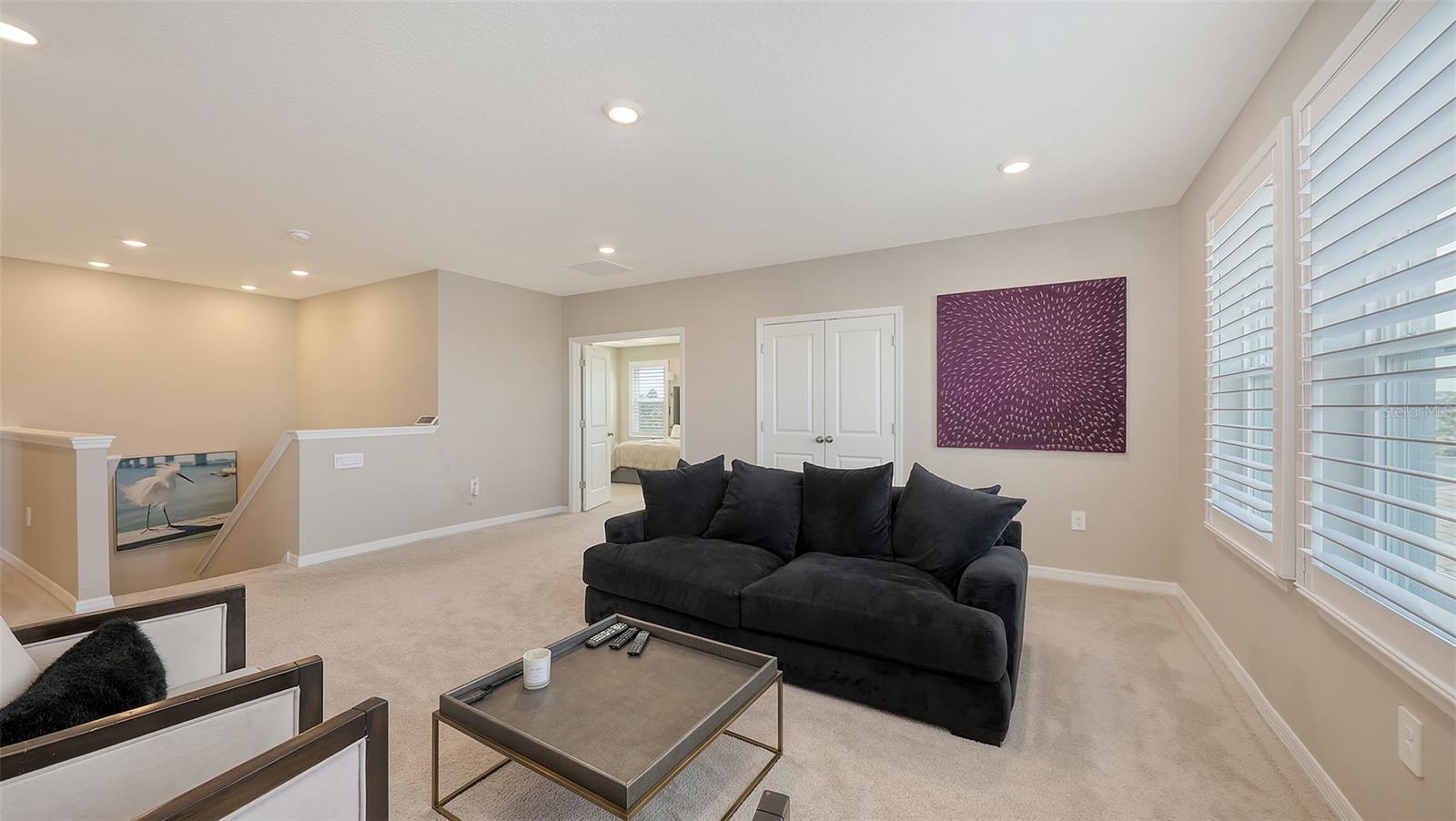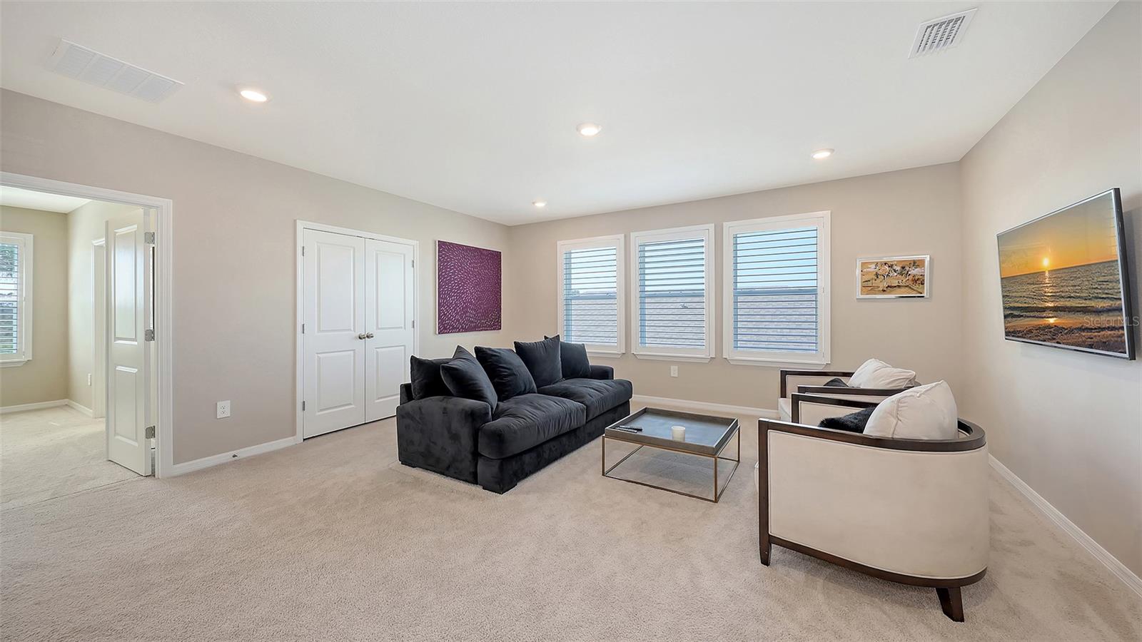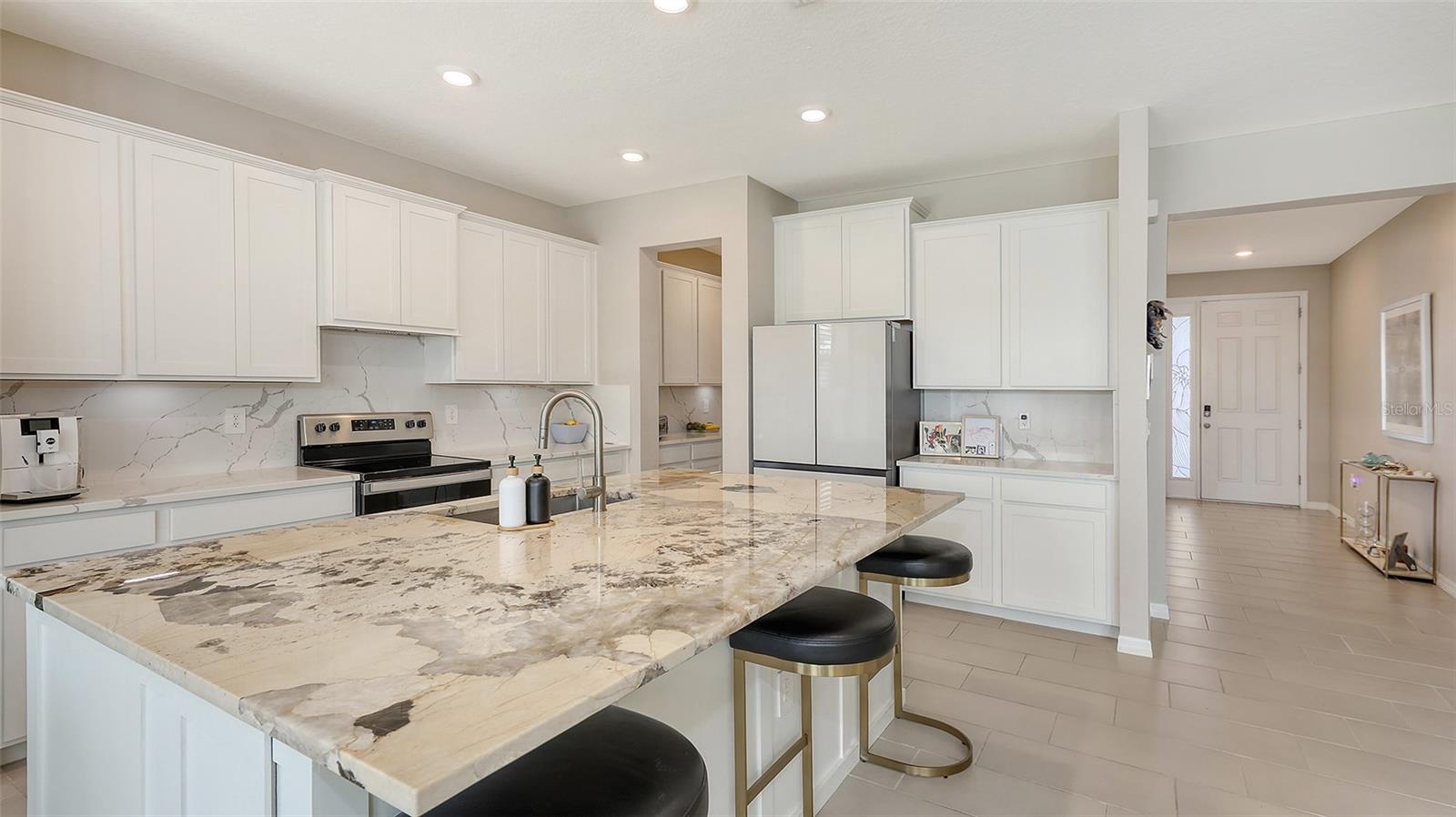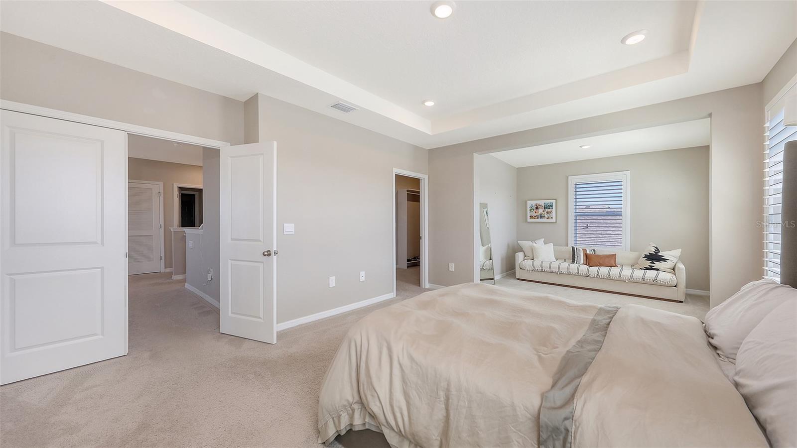 Welcome to this stunning, newer 4 bedroom, 3 bath home in the vibrant community of Promenade Estates. The original and only owners purchased it directly from the builder and immediately elevated it with high-end finishes, including porcelain wood-look tile, quartz and granite countertops, and top-of-the-line appliances. Step into the grand foyer, where you’re immediately drawn to the bright and airy kitchen and great room, bathed in natural light from the home’s beautiful southern exposure. The well-appointed kitchen, butler’s pantry, and formal dining room make this home an entertainer’s dream. The first-floor bedroom offers privacy for guests and is perfect for multi-generational living. Upstairs, a versatile loft space provides endless possibilities and showcases stunning long-lake views. The expansive primary suite features a spa-like bath and an oversized walk-in closet. Two additional bedrooms, a shared bath, and a conveniently located laundry room complete the second floor. With ample storage throughout and an attached two-car garage, this home is as functional as it is beautiful. Ideally located just minutes from the highly sought-after Pine View School, I-75, Legacy Trail, and a wealth of shopping and dining options, this home truly has it all.