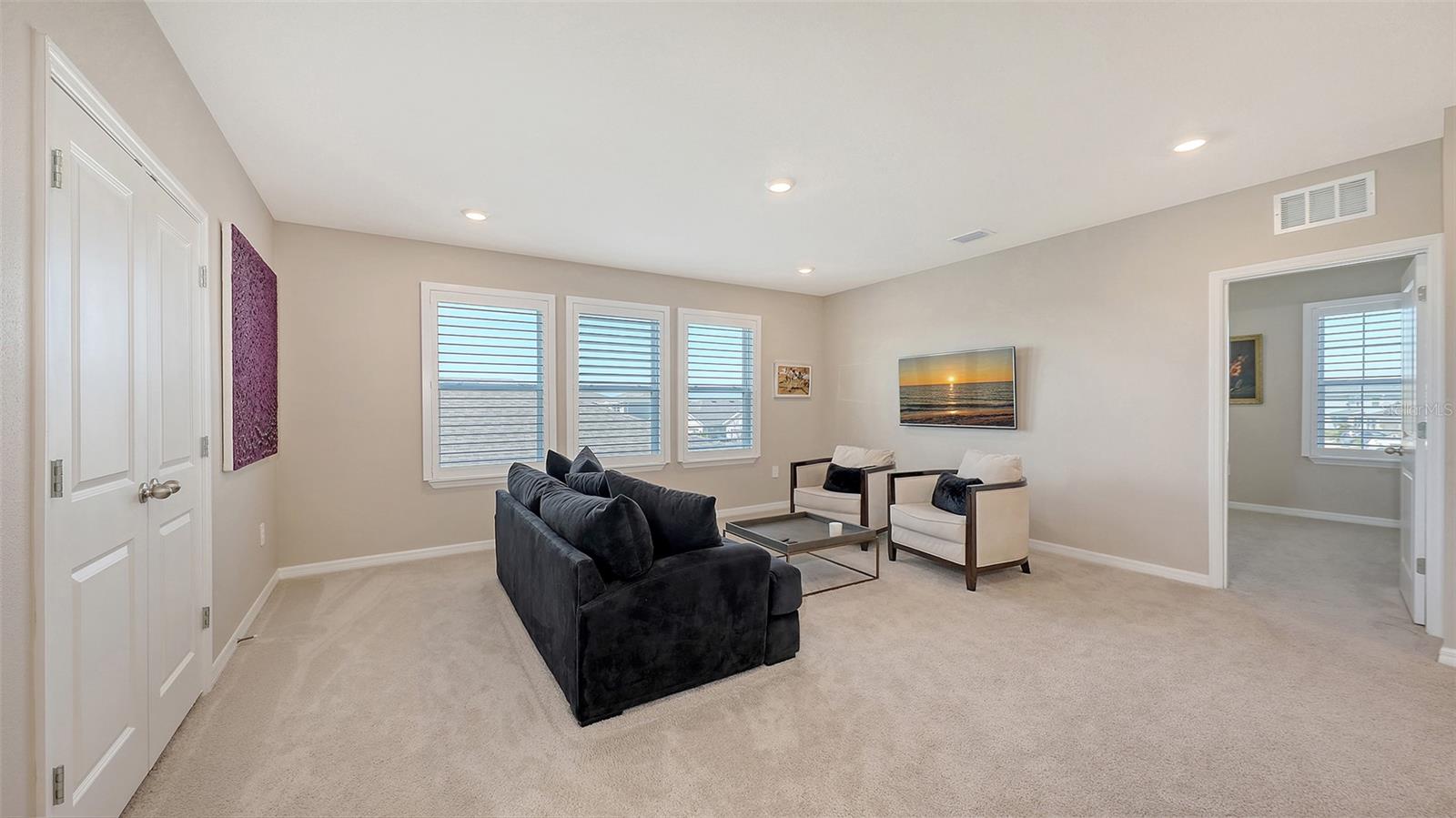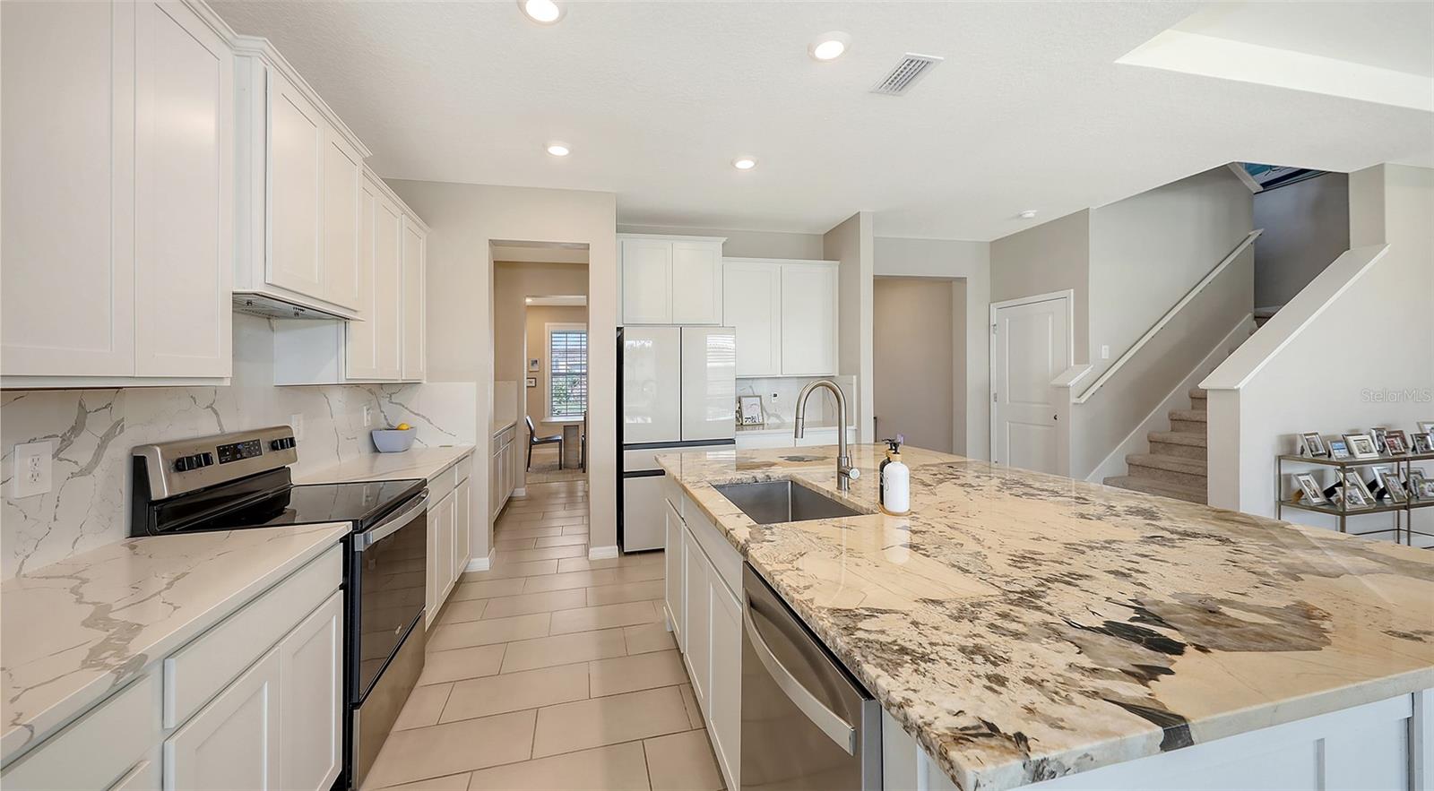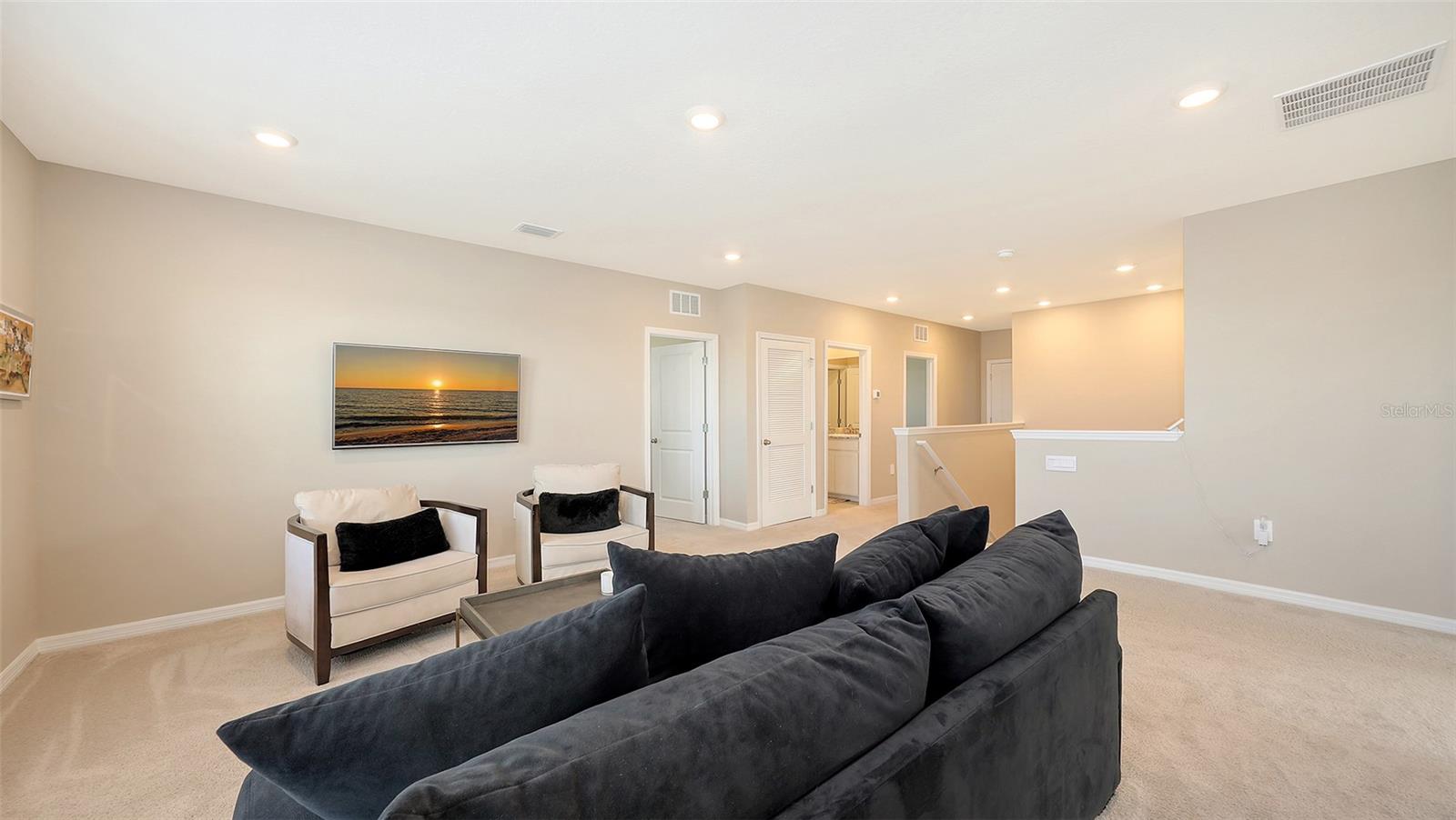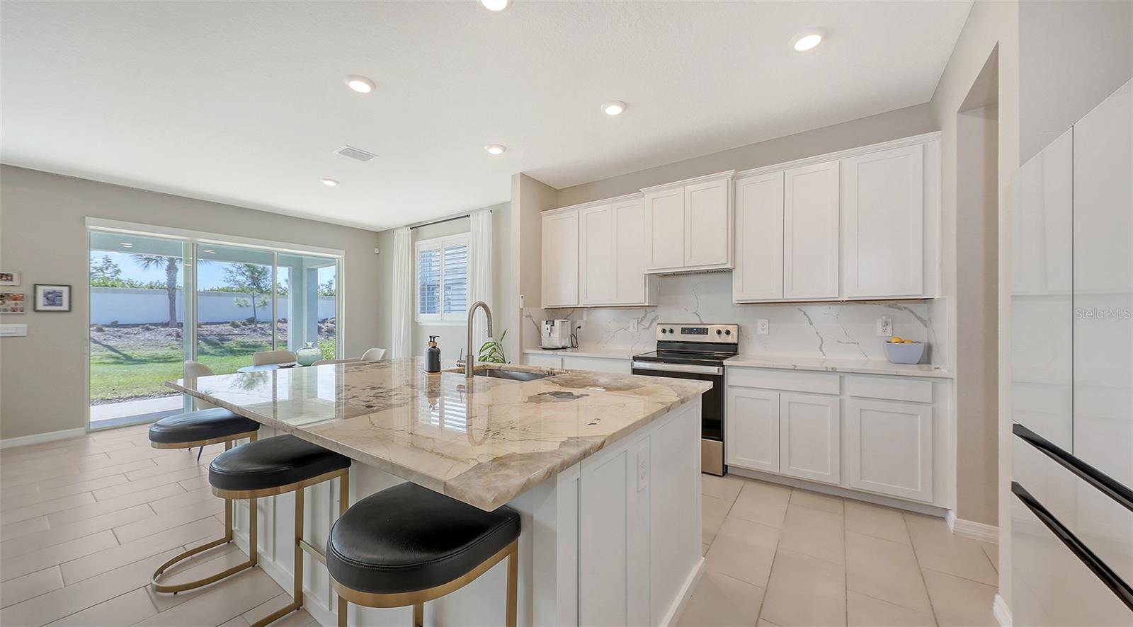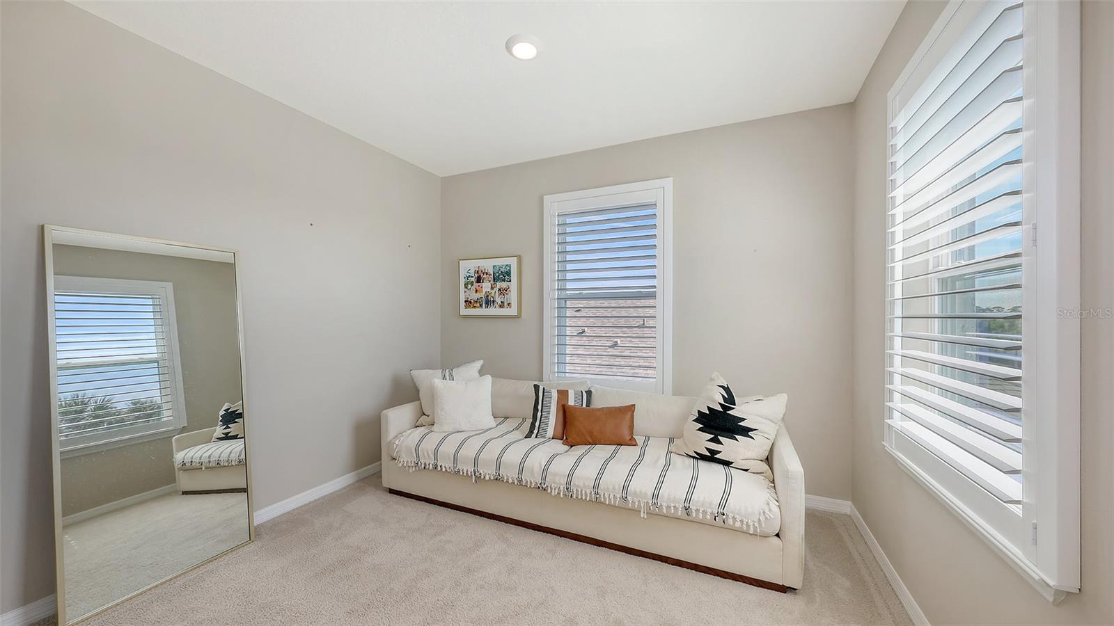 Welcome to this stunning, newer 4 bedroom, 3 bath home in the vibrant community of Promenade Estates. The original and only owners purchased it directly from the builder and immediately elevated it with high-end finishes, including porcelain wood-look tile, quartz and granite countertops, and top-of-the-line appliances. Step into the grand foyer, where you’re immediately drawn to the bright and airy kitchen and great room, bathed in natural light from the home’s beautiful southern exposure. The well-appointed kitchen, butler’s pantry, and formal dining room make this home an entertainer’s dream. The first-floor bedroom offers privacy for guests and is perfect for multi-generational living. Upstairs, a versatile loft space provides endless possibilities and showcases stunning long-lake views. The expansive primary suite features a spa-like bath and an oversized walk-in closet. Two additional bedrooms, a shared bath, and a conveniently located laundry room complete the second floor. With ample storage throughout and an attached two-car garage, this home is as functional as it is beautiful. Ideally located just minutes from the highly sought-after Pine View School, I-75, Legacy Trail, and a wealth of shopping and dining options, this home truly has it all.