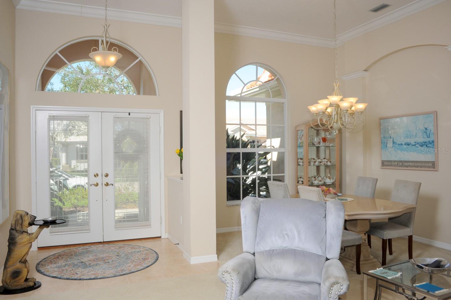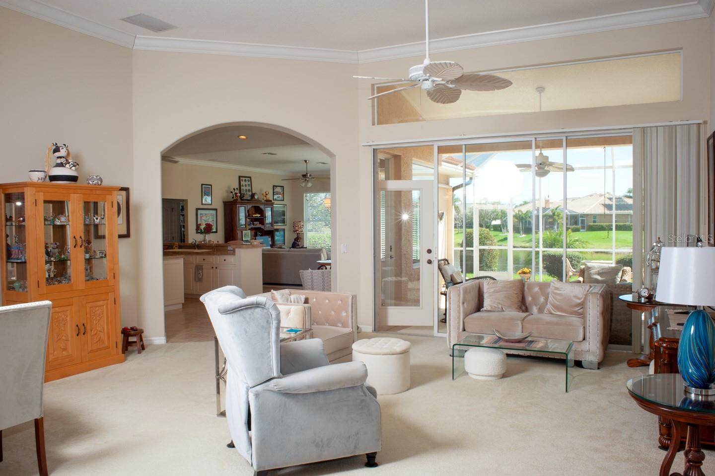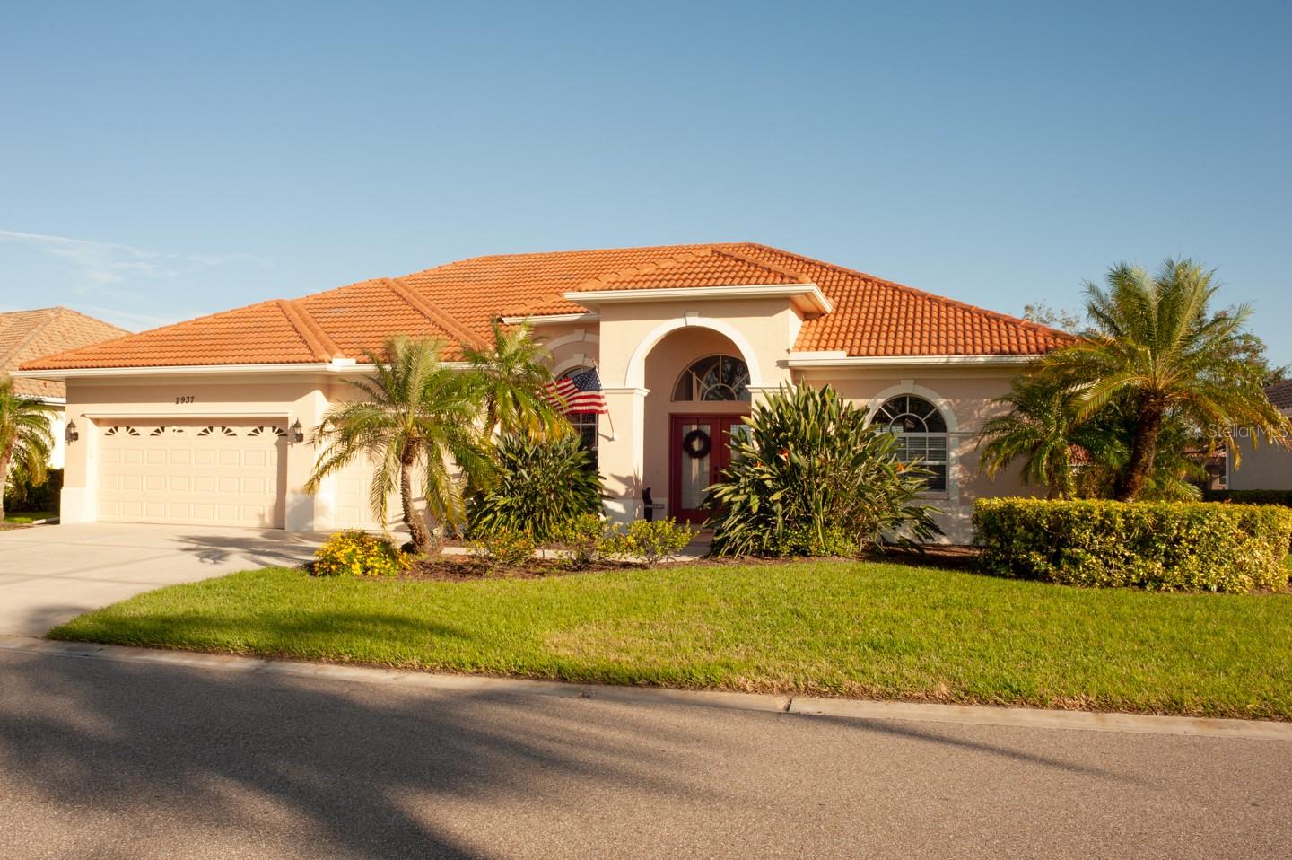 Panoramic Water Views, subtle architectural features, high ceilings, and crown molding. This 3/2 split floor plan offers privacy with a separate primary bedroom, separate wash basins, oval tub, and discrete shower area. The living room/dining area look out through 3 large glass doors leading to a large lanai, bringing the beauty of the water into the house. The kitchen, which features all new appliances, opens up into the family room where 3 large sliding glass doors, and a triple window let the sunshine in. Two more bedrooms, one featuring a walk in closet are separated by a full bathroom. There’s a laundry room with a large sink. The 3 car garage has finished walls and an epoxy floor. Recent upgrades include New HVAC, New Water Heater, Epoxy Garage Floor, Lanai Rescreen, New Dryer, toilet, and blinds. Exterior features new flowering plants and trees reminiscent of the tropical locale. Laurel Lakes is a gated community, with low HOA Fees and no CDD. Enjoy the community pool, fitness center, tennis courts. Easy access to groceries, I-75, golf courses, beaches, and everything Sarasota is known for.