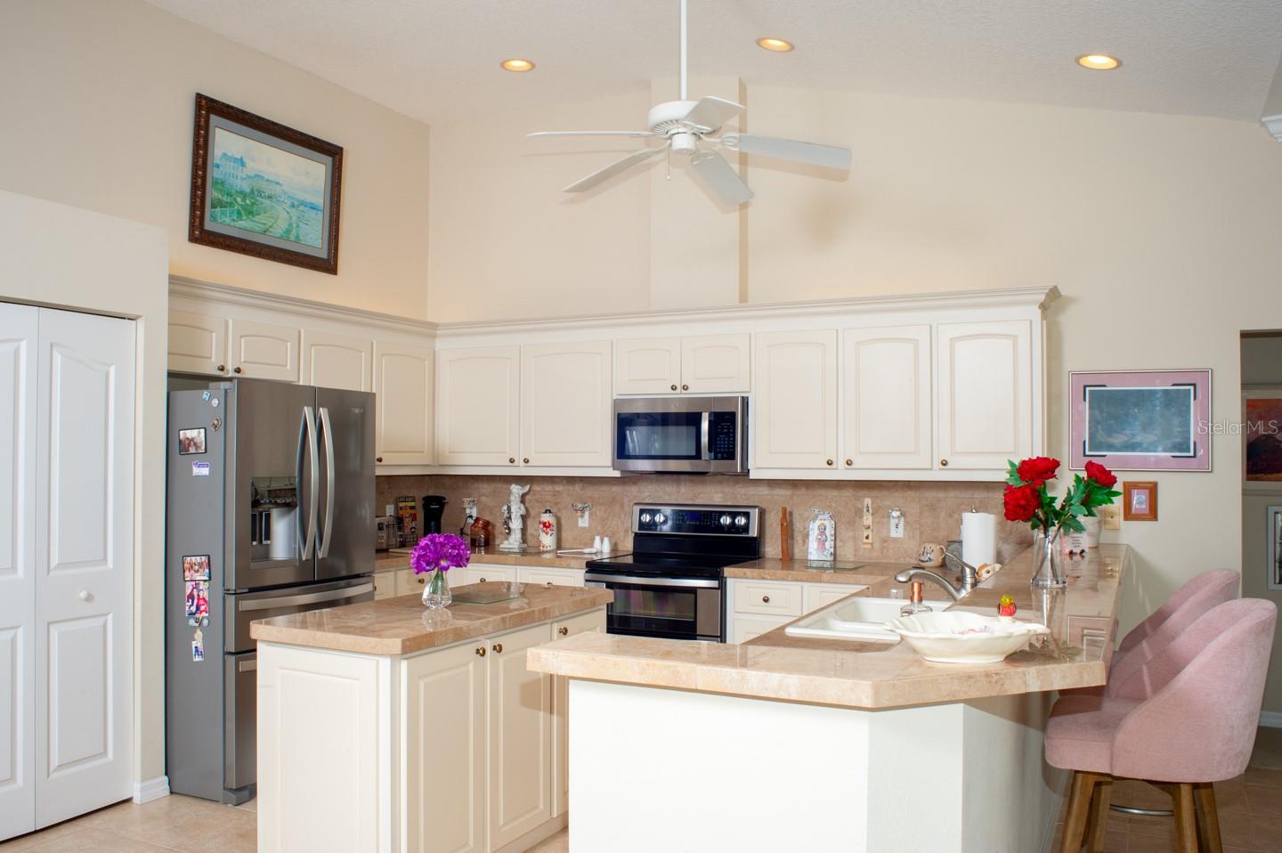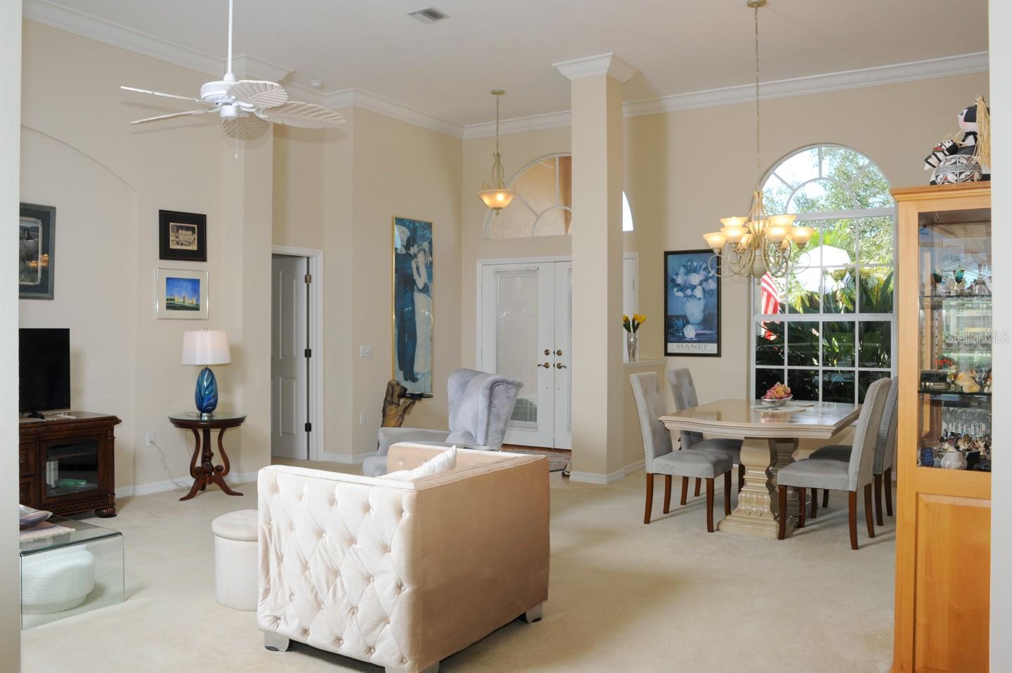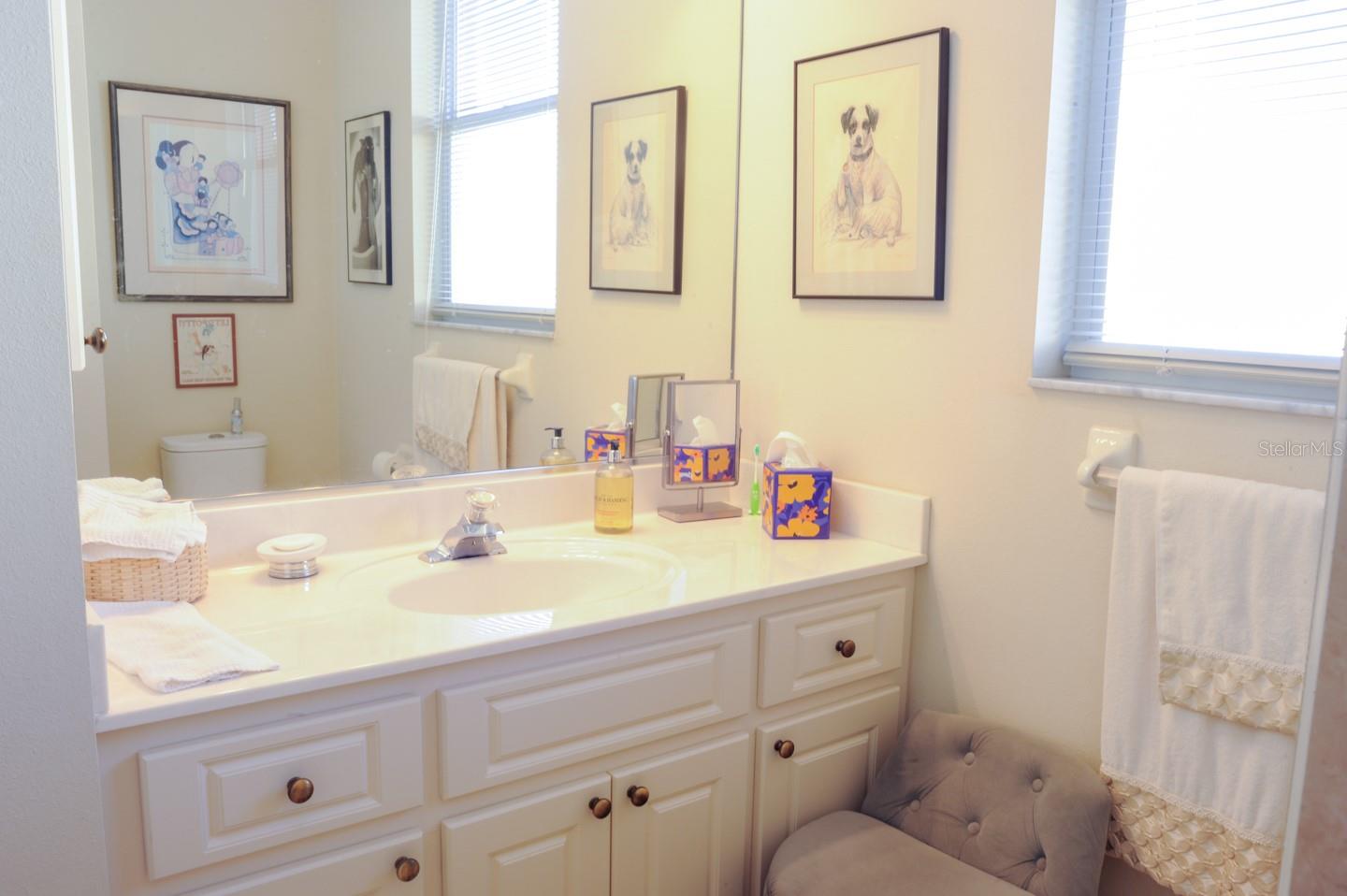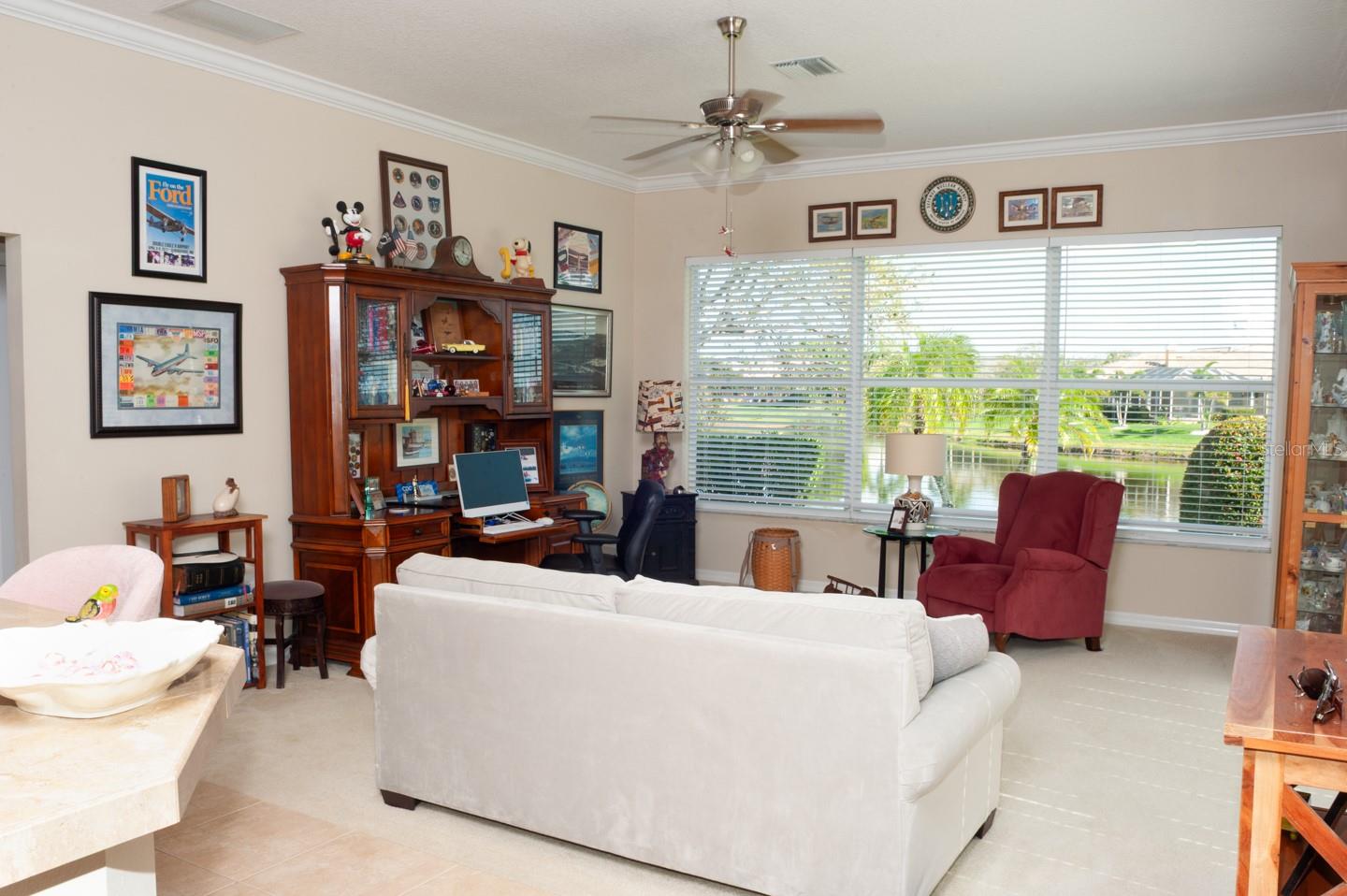Panoramic Water Views, subtle architectural features, high ceilings, and crown molding. This 3/2 split floor plan offers privacy with a separate primary bedroom, separate wash basins, oval tub, and discrete shower area. The living room/dining area look out through 3 large glass doors leading to a large lanai, bringing the beauty of the water into the house. The kitchen, which features all new appliances, opens up into the family room where 3 large sliding glass doors, and a triple window let the sunshine in. Two more bedrooms, one featuring a walk in closet are separated by a full bathroom. There’s a laundry room with a large sink. The 3 car garage has finished walls and an epoxy floor. Recent upgrades include New HVAC, New Water Heater, Epoxy Garage Floor, Lanai Rescreen, New Dryer, toilet, and blinds. Exterior features new flowering plants and trees reminiscent of the tropical locale. Laurel Lakes is a gated community, with low HOA Fees and no CDD. Enjoy the community pool, fitness center, tennis courts. Easy access to groceries, I-75, golf courses, beaches, and everything Sarasota is known for.