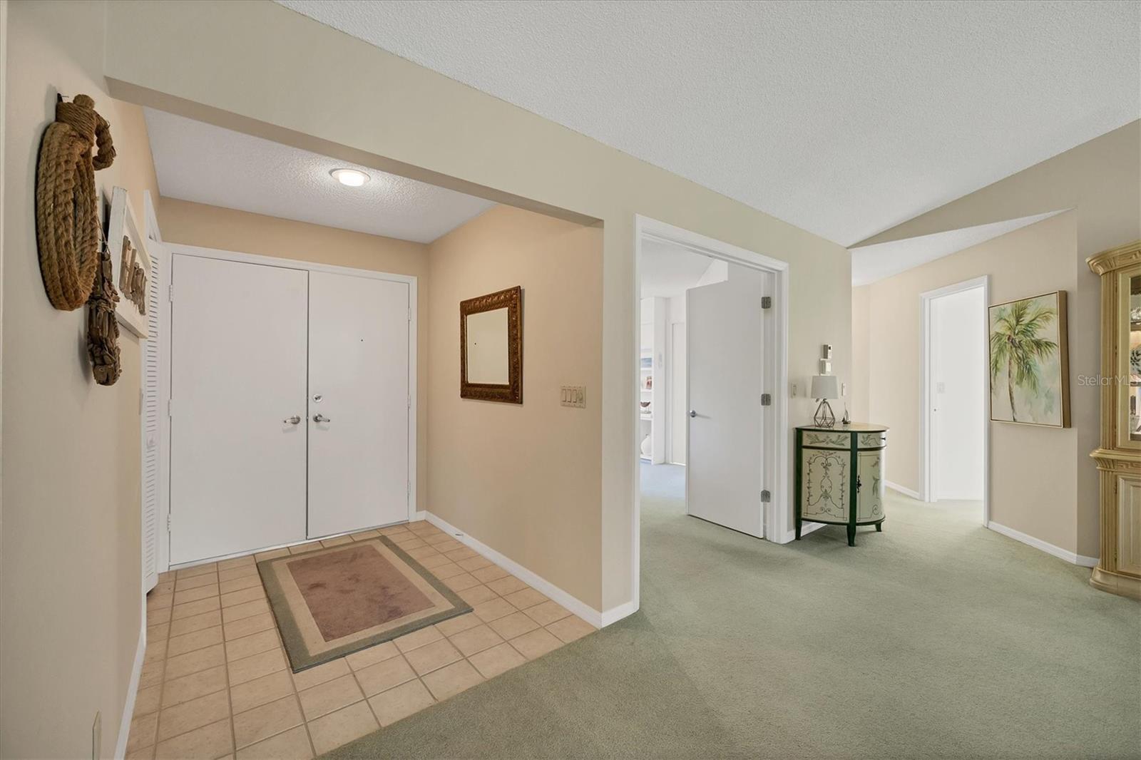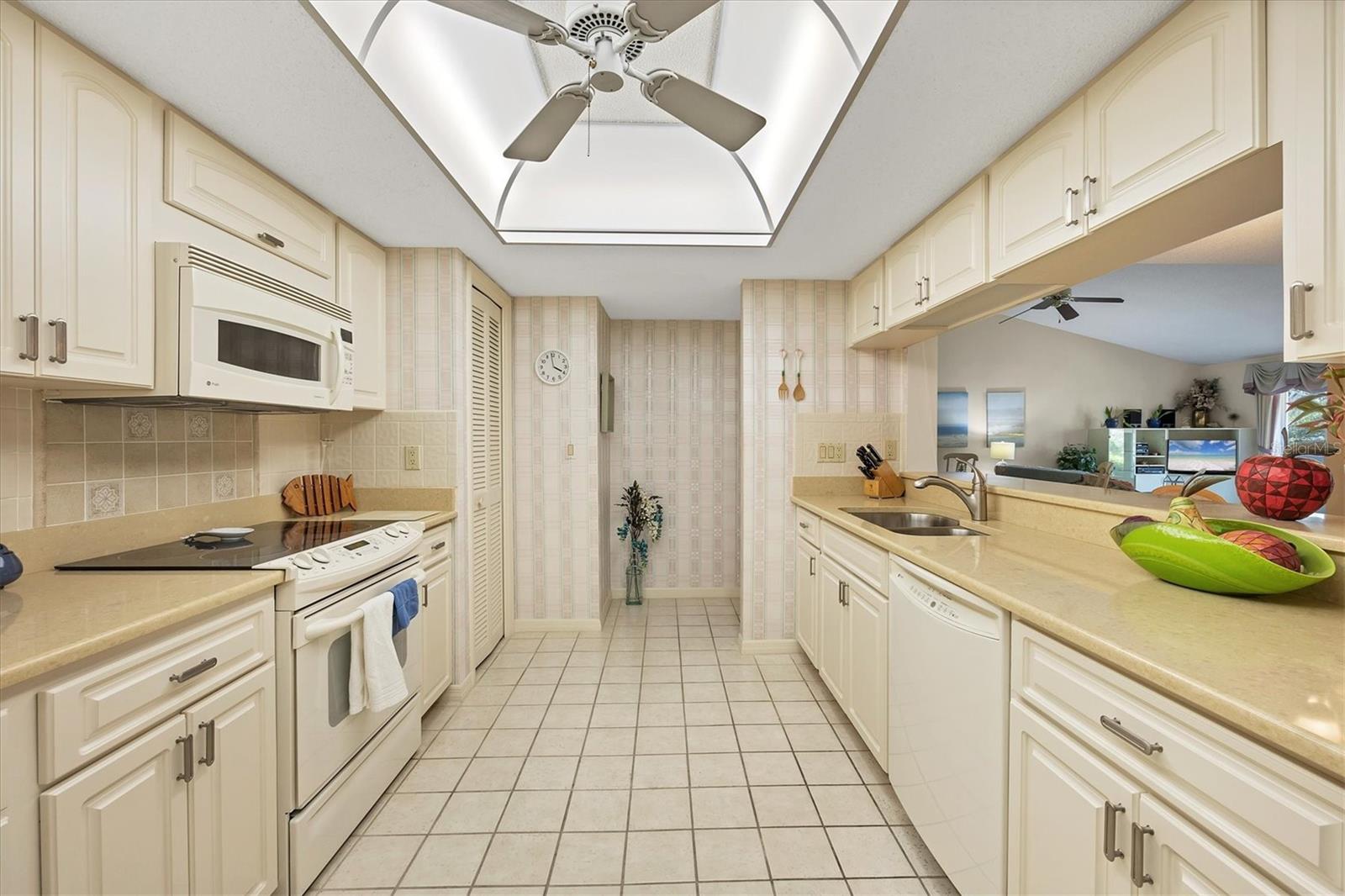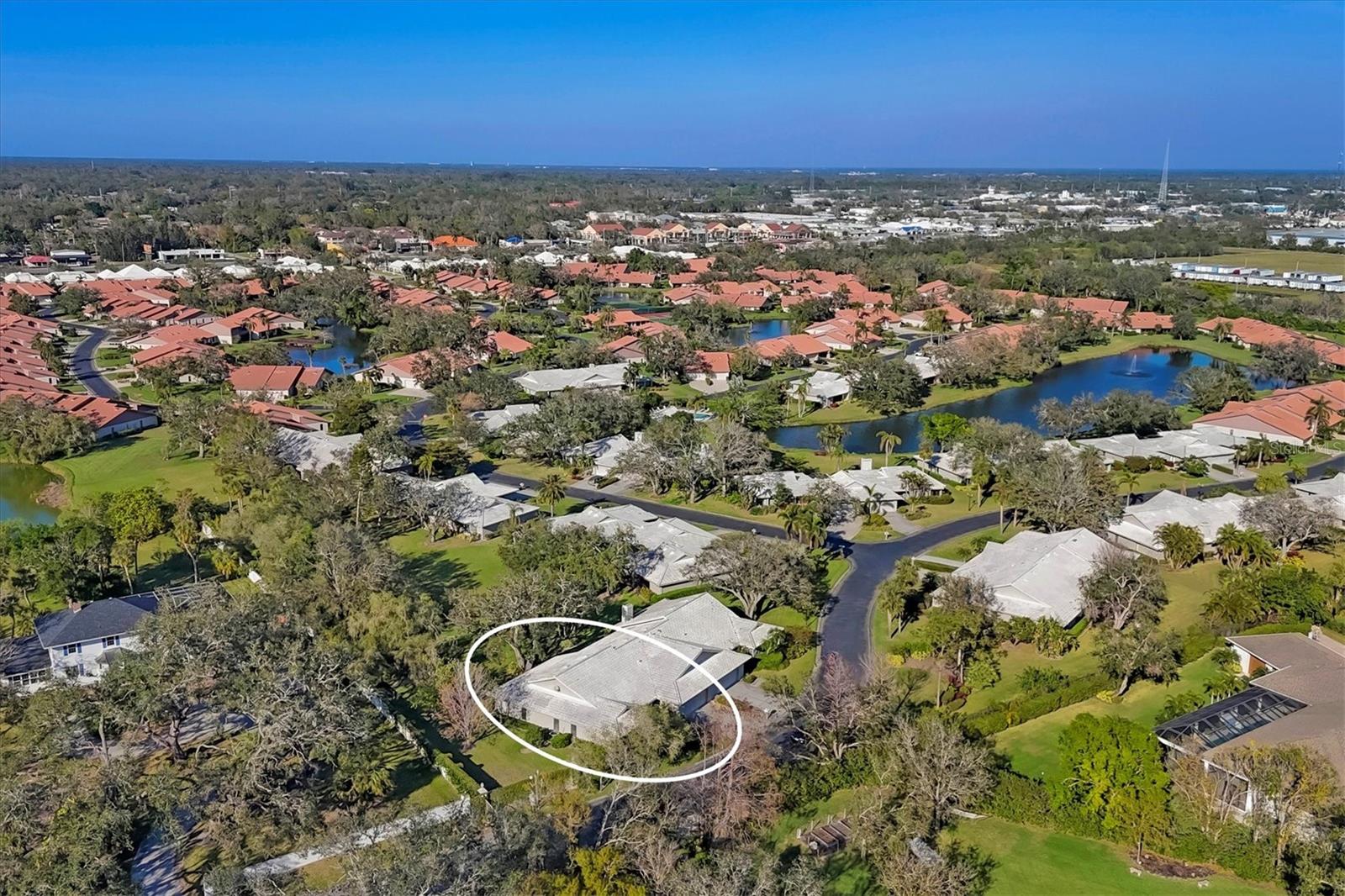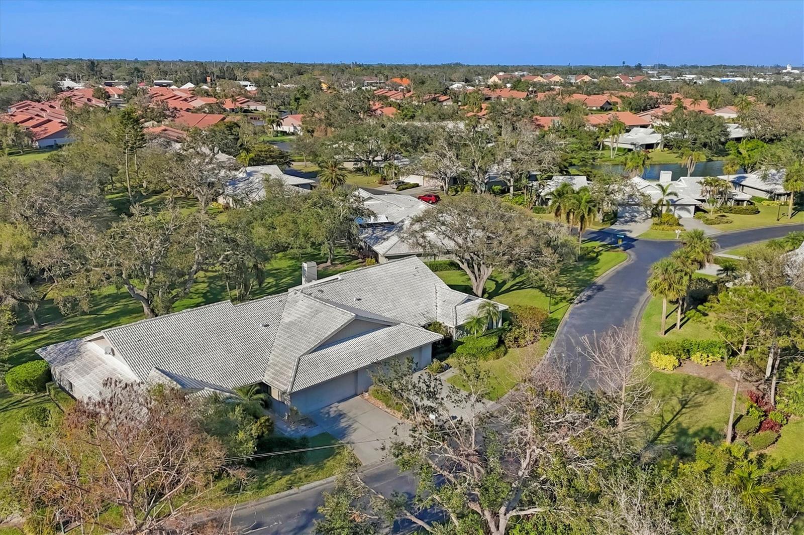 Welcome to Lakeshore Village South, a serene 55-plus pet-friendly community! Just minutes from the stunning Siesta Key Beach, this charming villa offers a relaxed, stress-free lifestyle with roof maintenance and landscaping covered in your quarterly fee. Experience the meaning of Florida living in a small, exclusive community with only 32 villas and a beautiful community pool. This rarely available is just 1 of 5 spacious villas in this community with three-bedroom, two-bath, two-car garage with an impressive 2,433 (includes covered lanai/sunroom) square feet and features versatile rooms that can be customized to suit your personal needs. Step inside through double front doors and be greeted by an expansive 27-by-18-foot living room with vaulted ceilings, creating an open and airy atmosphere. The large primary bedroom with dual walk-in closets for ample storage space. Many rooms throughout this home offer flexibility and the guest bedroom is set up as an office with built-in cabinets but could easily be converted to suit your lifestyle. The kitchen is equipped with a convenient passthrough window to the dining room and includes a cozy dinette area for your morning coffee. The attached laundry room provides plenty of cabinetry for additional storage. Enjoy the indoor-outdoor living with the lanai featuring all-around glass sliding doors and screens, giving you the option of fresh air or a comfortable sunroom retreat. For just $200 per year, residents can enjoy access to fantastic amenities, including two new pickleball courts, two tennis courts, a heated saltwater pool, a large clubhouse with a full kitchen and dining area, horseshoe pits and a billiards table. Don't miss out on this opportunity to live in a wonderful, low-maintenance community. Make this villa your new home today. Villa was repiped in 2015, New A/C in 2020, New tile roof is scheduled for replacement in 2026 by HOA