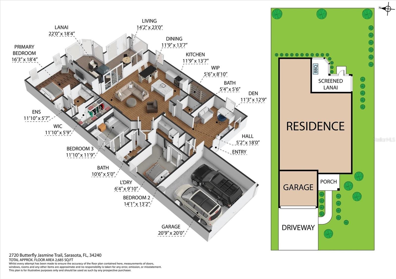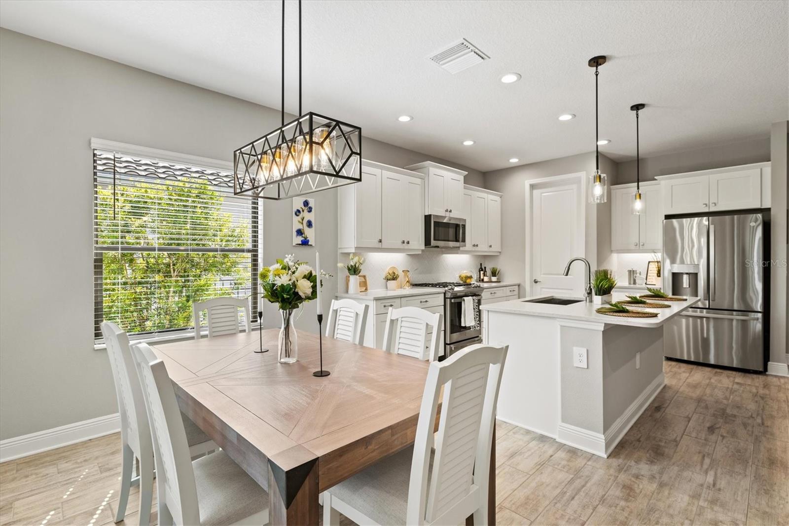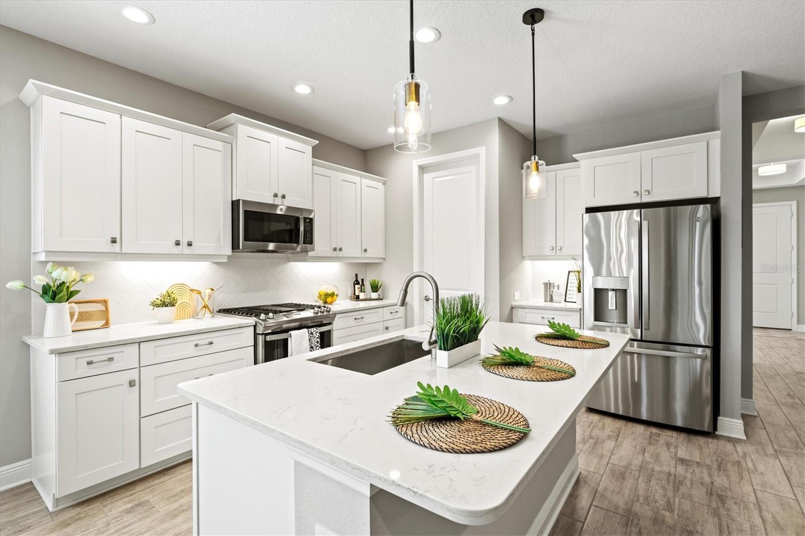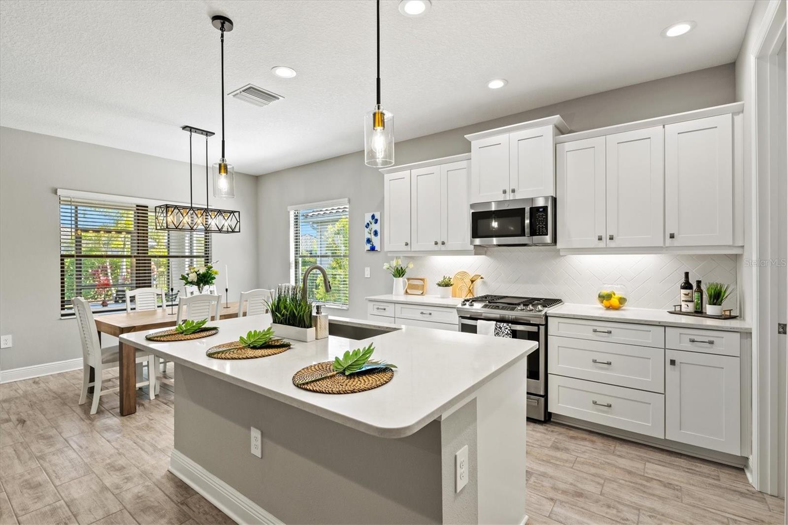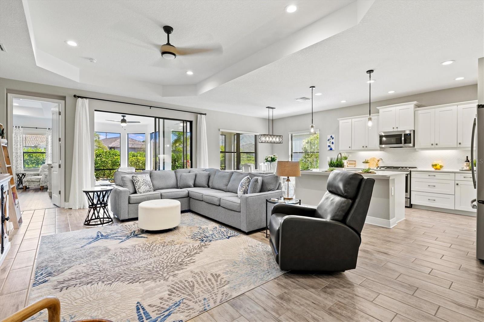 Refined Sarasota County Living in Windward at Lakewood Ranch – White Star Model with Designer Finishes and Pool-Ready Potential Discover a perfect blend of sophistication and Florida charm in this exceptional White Star model by Neal Communities, ideally located in the highly desirable Windward at Lakewood Ranch, in Sarasota County. This thoughtfully designed 3-bedroom, 2.5-bathroom home with a dedicated den/study offers 2,066 sq. ft. of inspired living space, where elegance meets everyday ease. Step into a light-filled, open-concept layout where oversized windows, tray ceilings, and designer touches create an inviting atmosphere. The chef-style kitchen is a standout feature with white shaker cabinets, quartz countertops, stainless steel appliances, a large island with seating, and a walk-in pantry—a perfect space for casual meals or elegant entertaining. The great room and dining area flow seamlessly, ideal for hosting and everyday comfort. A versatile den/study provides privacy for a home office, creative studio, or guest accommodations. The primary suite is a serene retreat, featuring a spa-style en-suite bath with dual vanities, a walk-in tiled shower, and a generously sized walk-in closet. Two additional bedrooms are thoughtfully positioned, offering comfort and flexibility for family or guests. Step outside to your oversized screened lanai, the perfect setting for al fresco dining or quiet morning coffee. This home is also pre-plumbed for both gas and electric, making it pool-ready and ready for your custom outdoor oasis. The 2-car garage provides ample space and convenience, while the low-maintenance lifestyle of this gated community ensures more time for enjoying what matters most. Residents of Windward at Lakewood Ranch enjoy unmatched resort-style amenities, including two heated pools, tennis and pickleball courts, a state-of-the-art fitness center, clubhouse, dog parks, scenic walking trails, and a vibrant social calendar curated by an on-site Lifestyle Director. Just minutes from Waterside Place, UTC, top-rated Sarasota County schools, and the Gulf Coast’s award-winning beaches, this home is perfectly positioned for convenience, luxury, and lifestyle. This is more than just a home—it’s a gateway to one of Florida’s most sought-after master-planned communities. Schedule your private showing today and discover the best of Windward living.