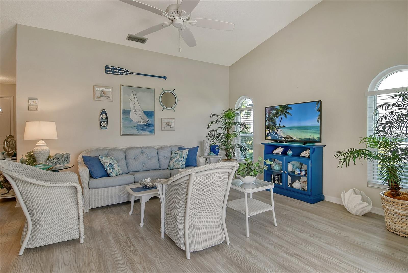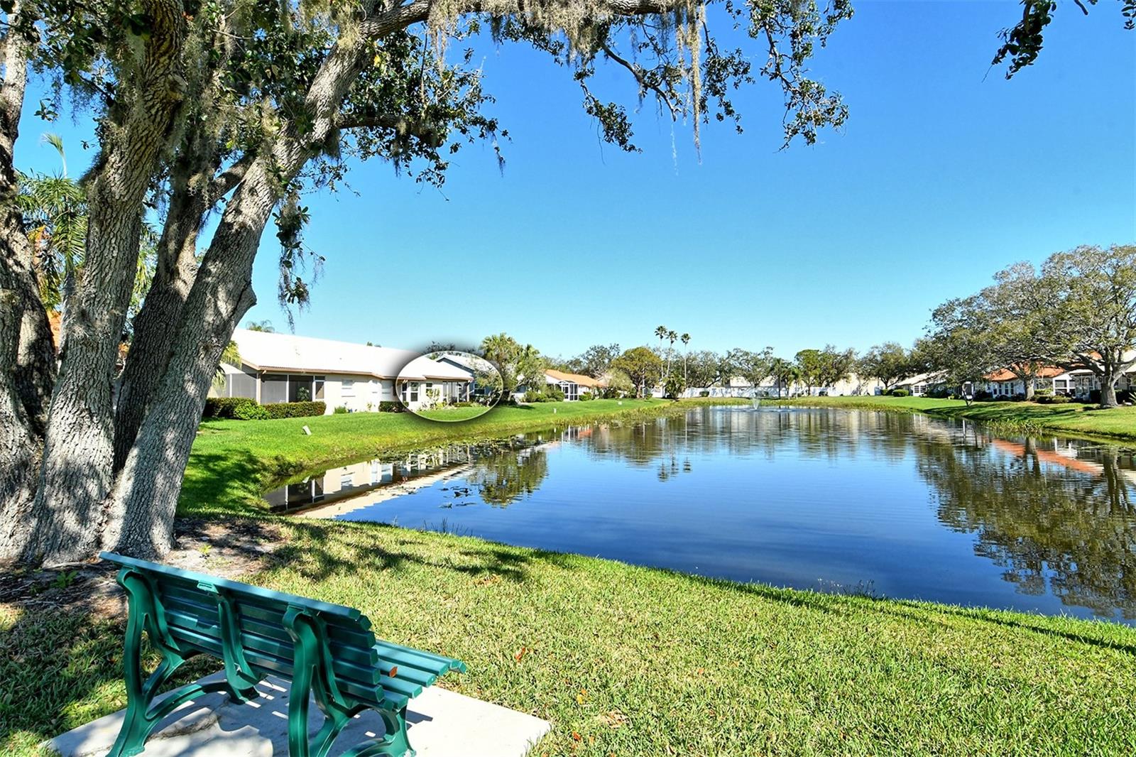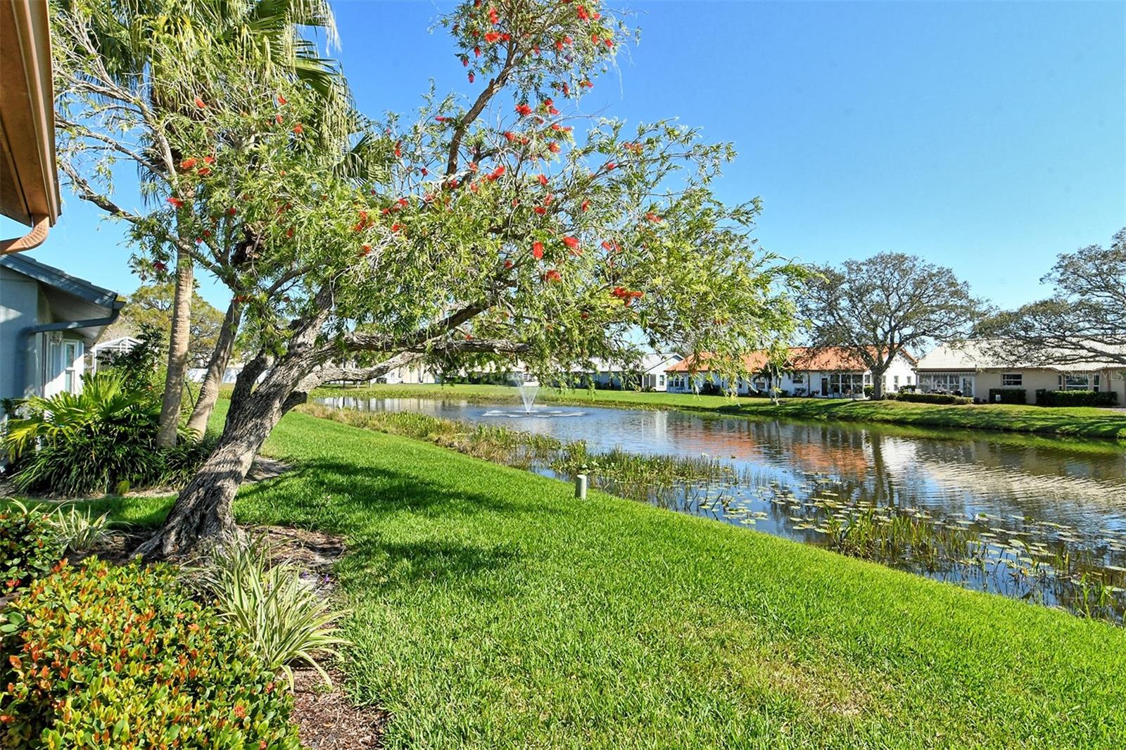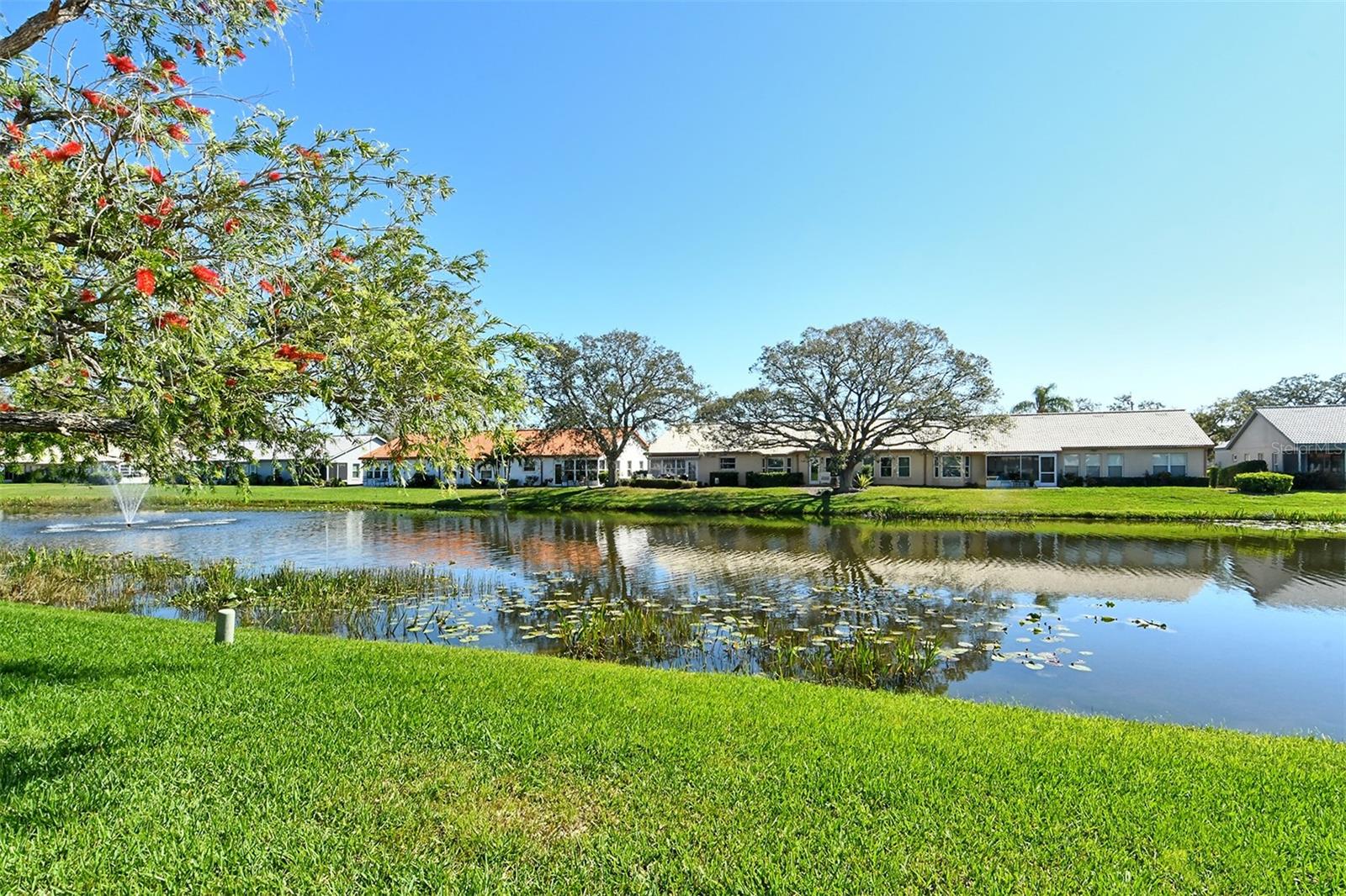 This is a WOW from the moment you enter you will be pleased with the lake view, cathedral ceilings and open floor plan. Waterproof luxury laminate and ceramic flooring throughout. Light and bright end unit is perfect for full time residence or 2nd home. Most appliances are 4 months old, new Dryer too. Xtra refrigerator in spacious 2 car garage with painted floor. Hurricane proof windows except for the slider which leads to a spacious lanai, perfect for enjoying your morning coffee. Mrs. Clean lives here and it shows. Beautifully landscaped. The community offers a clubhouse, pool, tennis/pickleball, shuffleboard and recreation room. Close to shopping, banking, restaurants, I-75 & just minutes to Siesta Key beach. See it today.