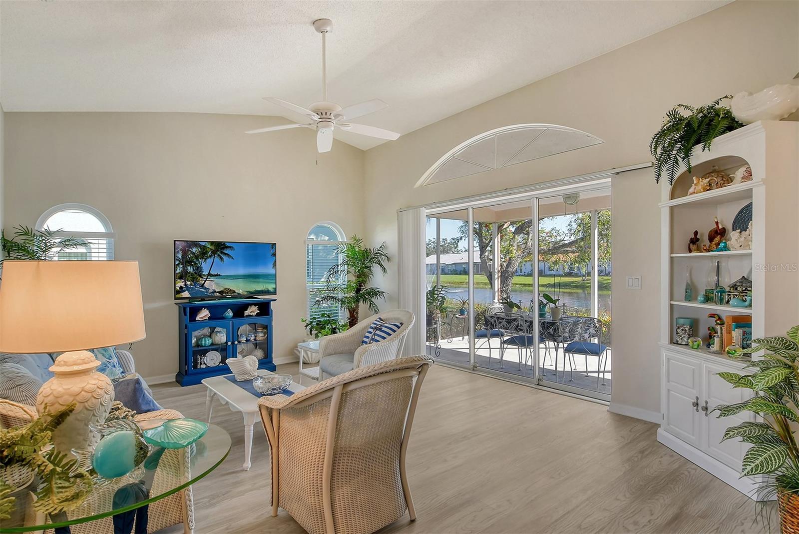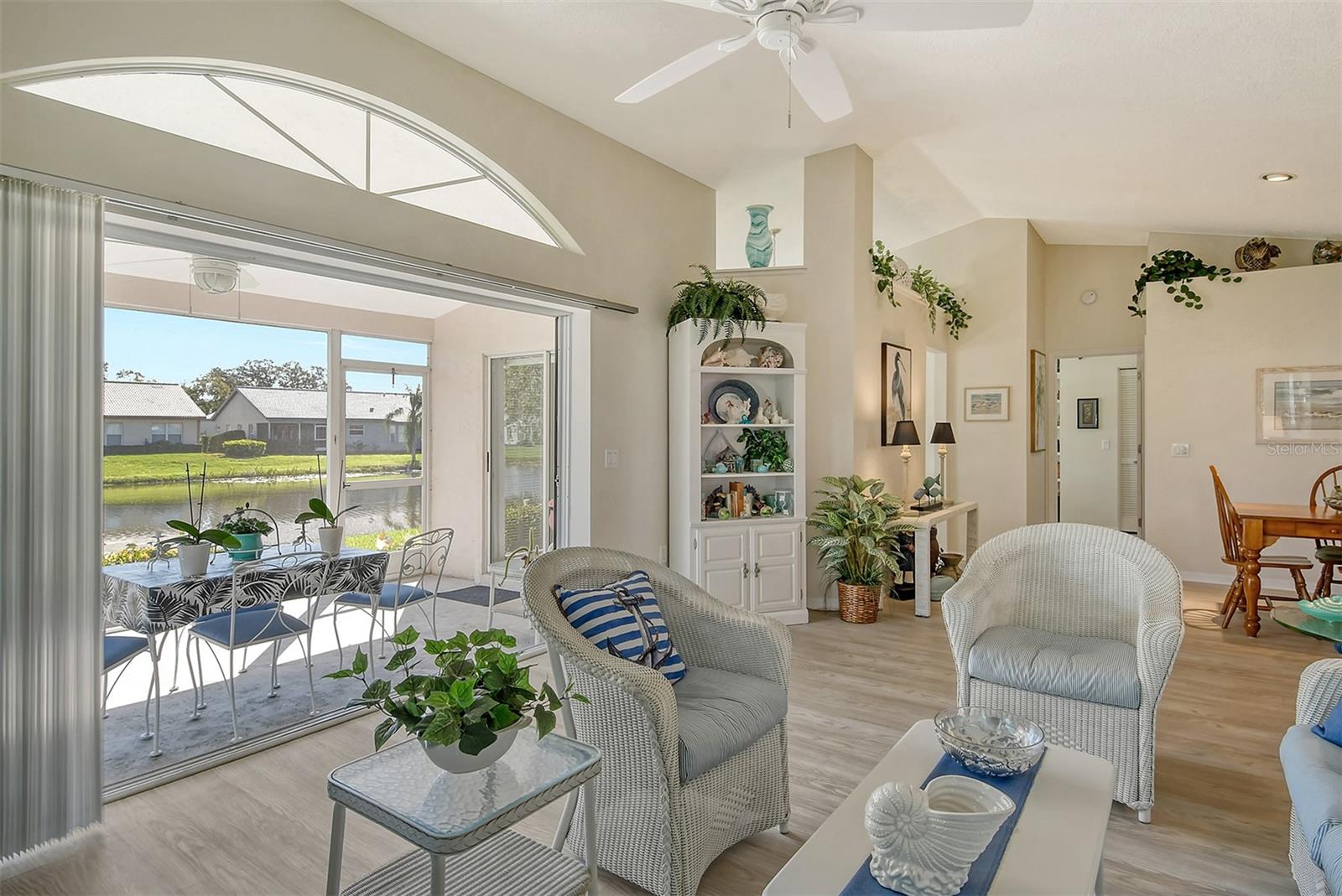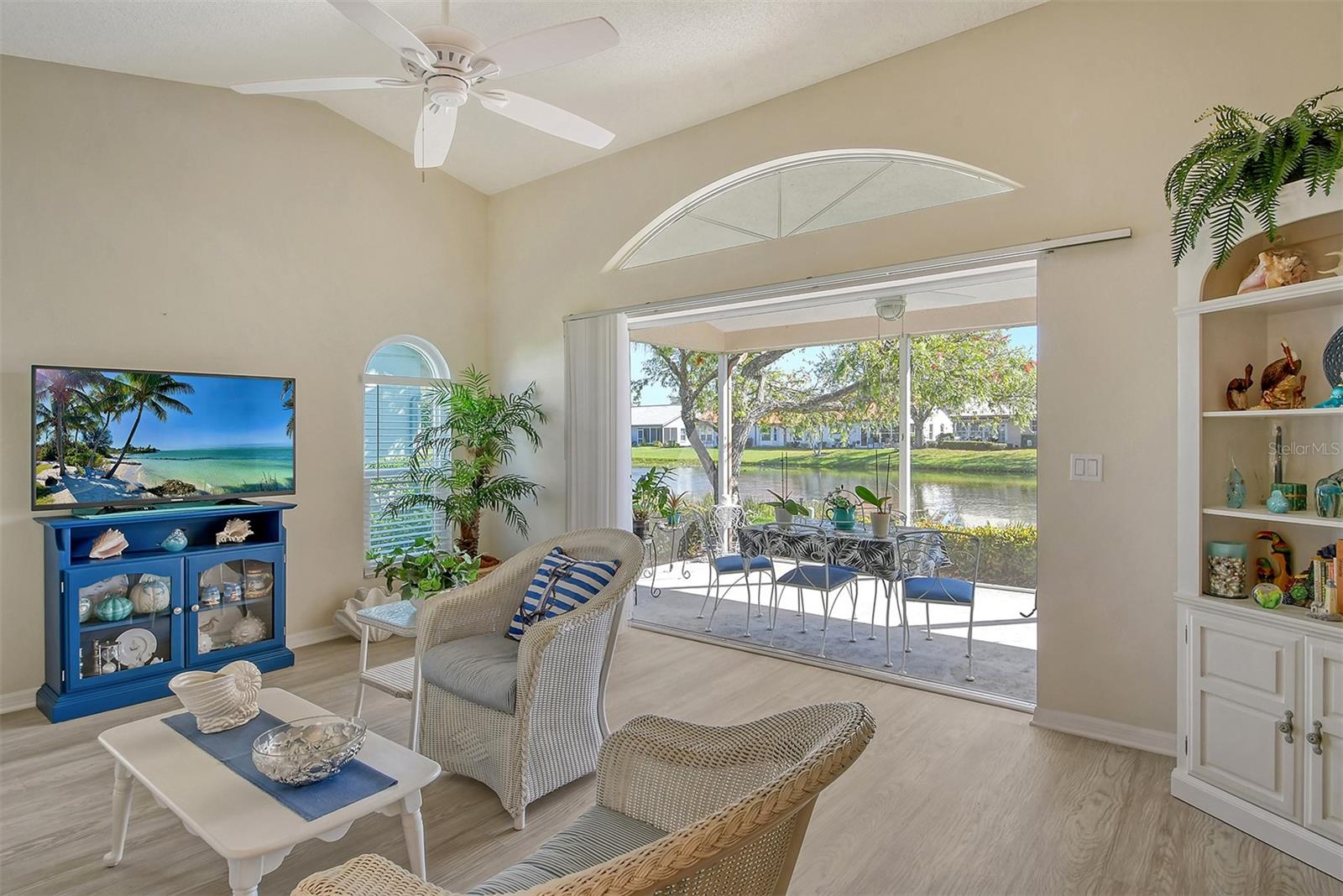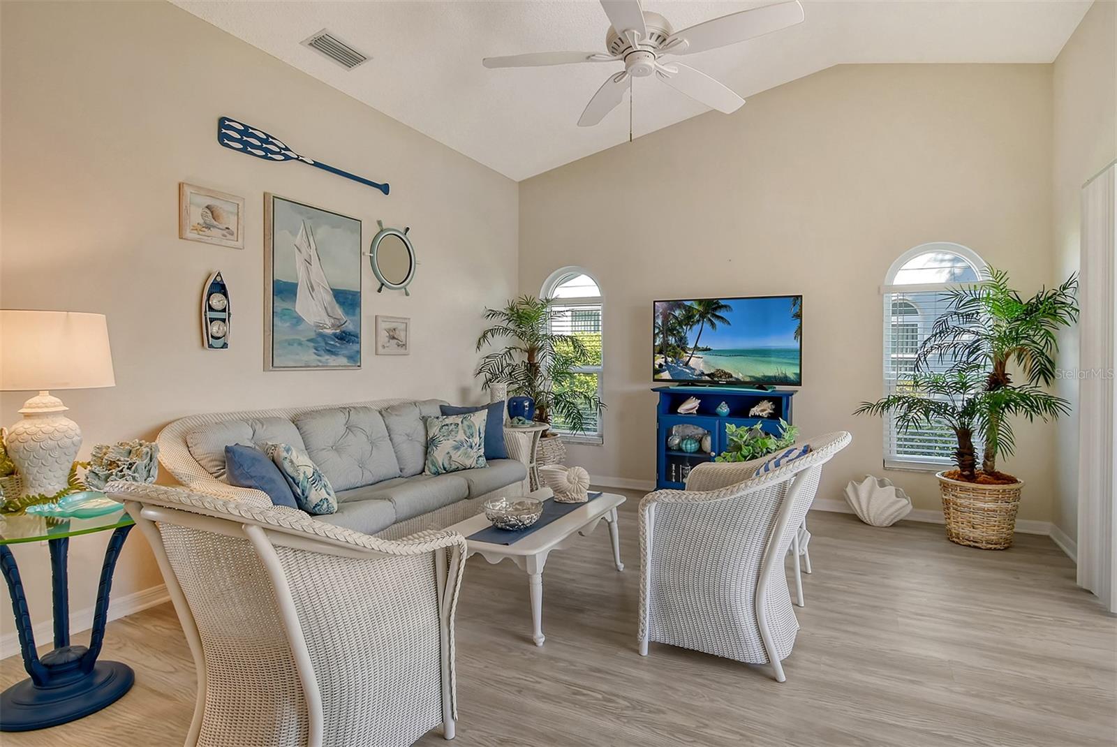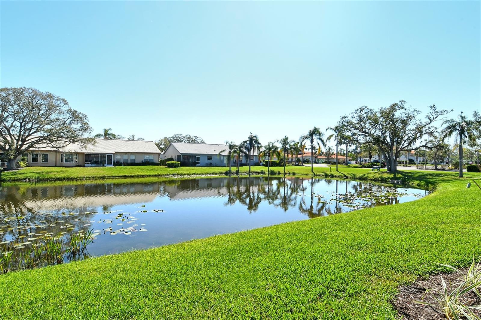 This is a WOW from the moment you enter you will be pleased with the lake view, cathedral ceilings and open floor plan. Waterproof luxury laminate and ceramic flooring throughout. Light and bright end unit is perfect for full time residence or 2nd home. Most appliances are 4 months old, new Dryer too. Xtra refrigerator in spacious 2 car garage with painted floor. Hurricane proof windows except for the slider which leads to a spacious lanai, perfect for enjoying your morning coffee. Mrs. Clean lives here and it shows. Beautifully landscaped. The community offers a clubhouse, pool, tennis/pickleball, shuffleboard and recreation room. Close to shopping, banking, restaurants, I-75 & just minutes to Siesta Key beach. See it today.