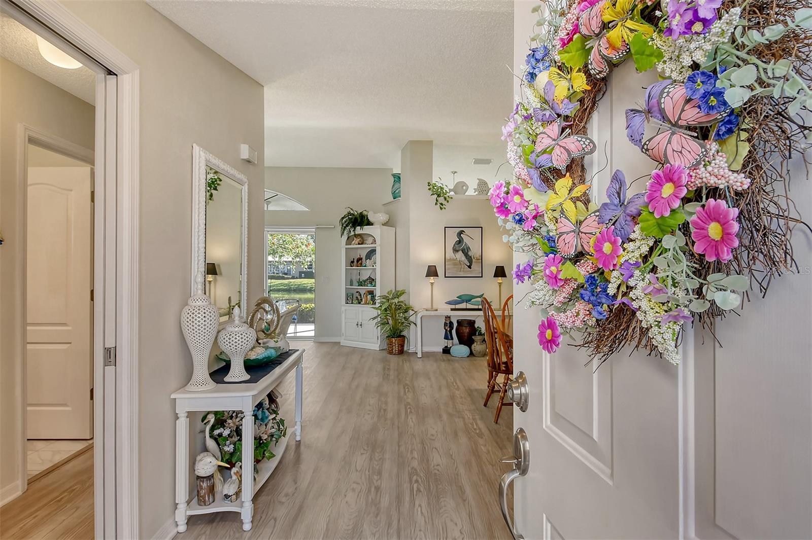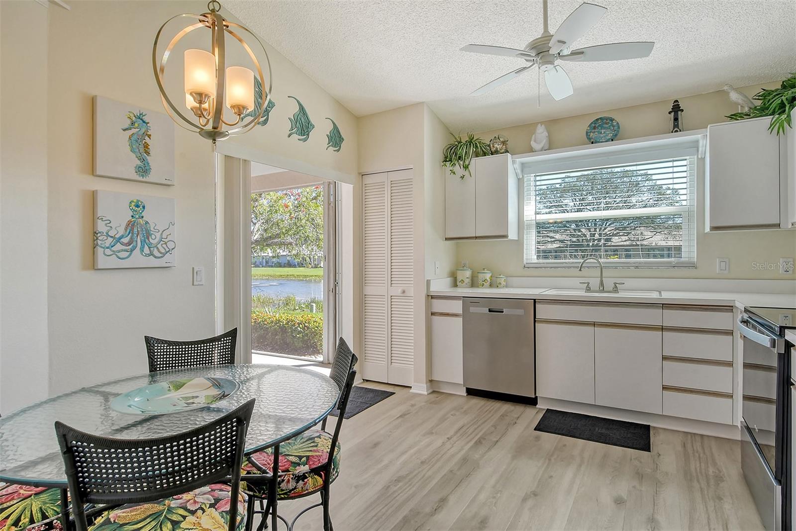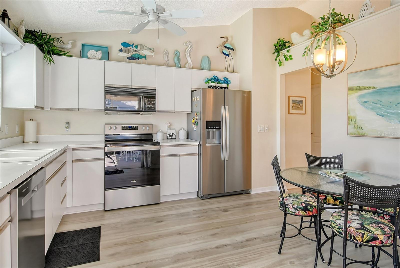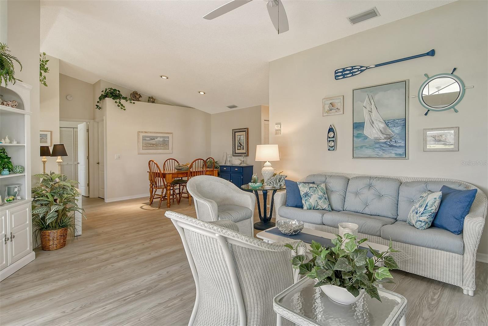 This is a WOW from the moment you enter you will be pleased with the lake view, cathedral ceilings and open floor plan. Waterproof luxury laminate and ceramic flooring throughout. Light and bright end unit is perfect for full time residence or 2nd home. Most appliances are 4 months old, new Dryer too. Xtra refrigerator in spacious 2 car garage with painted floor. Hurricane proof windows except for the slider which leads to a spacious lanai, perfect for enjoying your morning coffee. Mrs. Clean lives here and it shows. Beautifully landscaped. The community offers a clubhouse, pool, tennis/pickleball, shuffleboard and recreation room. Close to shopping, banking, restaurants, I-75 & just minutes to Siesta Key beach. See it today.
