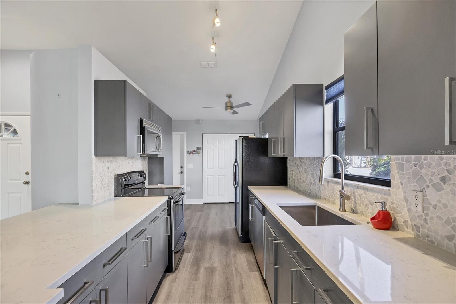 Beautifully updated TWO BEDROOM AND A DEN home with stunning lake views available in desirable Country Oaks. Stylish, modern renovations through out include brand new flooring (2025), newer kitchen and bathroom cabinets with quartz countertops, stainless steel appliances, updated mirrors and lighting and painting. Notable features include vaulted ceilings and French doors leading to a separate home office or bedroom. NEWER ROOF, AC, and WATER HEATER (2023). Relax on your screened patio with serene lake views, perfect for morning coffee or evening unwinding. A gorgeous, established oak in the backyard provides beauty and shade. The community offers fantastic amenities, including a sparkling pool and tennis courts, and is just a short walk to Conservatory Park. Located in an unbeatable spot, you?re just a 10 minute drive to all the shops and restaurants at University Town Center, 20 minutes to Downtown Sarasota, and only 30 minutes to the breathtaking beaches of Lido Key and the charm of St. Armand's Circle. Don't miss this incredible opportunity, schedule your showing today!