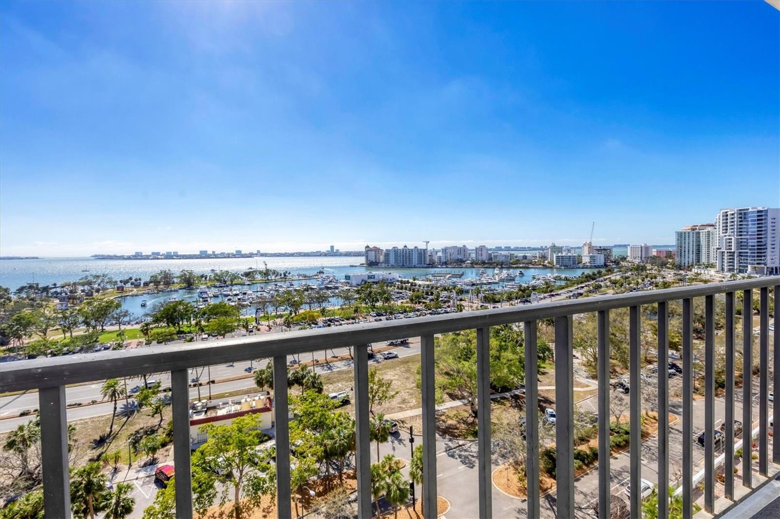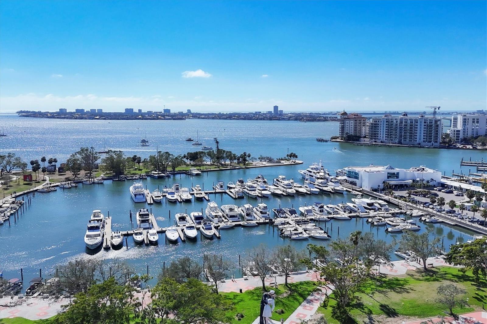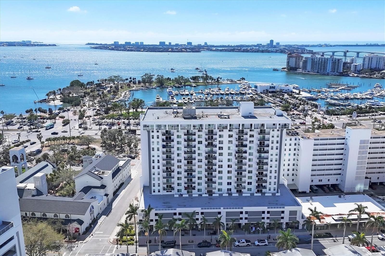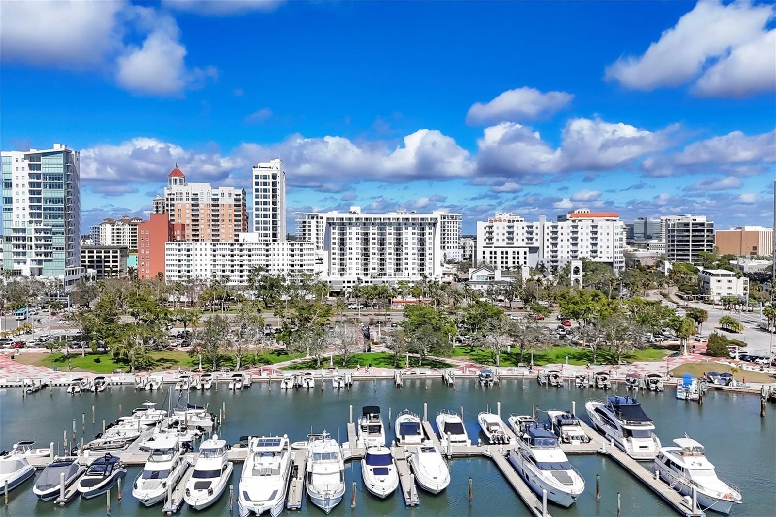 Everyone's favorite unit just had a nice price reduction. Amazing View! Fantastic Location! These are the words that come to mind when you step into this incredible downtown building called 101 Condominium. This unique building is in the best spot downtown. Across from Marina Jacks and Bayfront Park, seconds from Main Street, minutes to the theater, restaurants, Whole Foods, music venues, Selby Gardens, the library, the Farmer's Market and so much more. This 1- bedroom, 2-bathroom condo is a perfect place to call home, to use in season or to have for your weekend getaways in Sarasota. This unit has been upgraded with a newer kitchen, newer floors, remodeled and updated bathrooms, freshly painted, and comes with brand new furniture. This unit has a million dollar view from the terrace, from the living space, and from the master bedroom. The view is endless! Sit and watch the boats, the sunsets, views of the marina, the park, Bird Key, Siesta, the bay and the Gulf of Mexico. The building is under renovations and the Façade will be sleek, modern, sophisticated and just plain gorgeous. There is a large pool on the 4th floor, a clubroom for functions and a gym. The convenience of this building can not be expressed enough; walk over the bridge to St. Armand's Circle, minutes to Lido Beach and also to the world-famous beach of Siesta Key. Do not let this pass by! Call today to schedule your private tour!