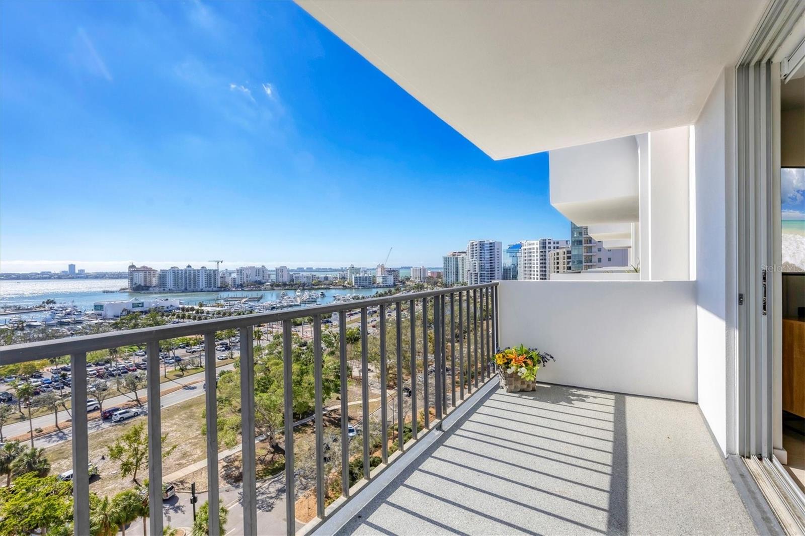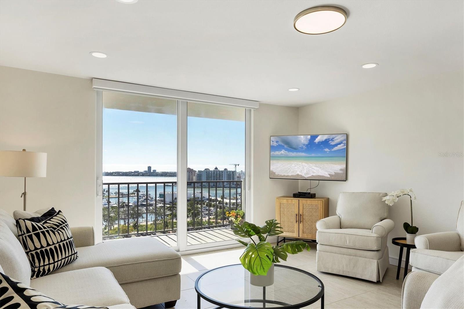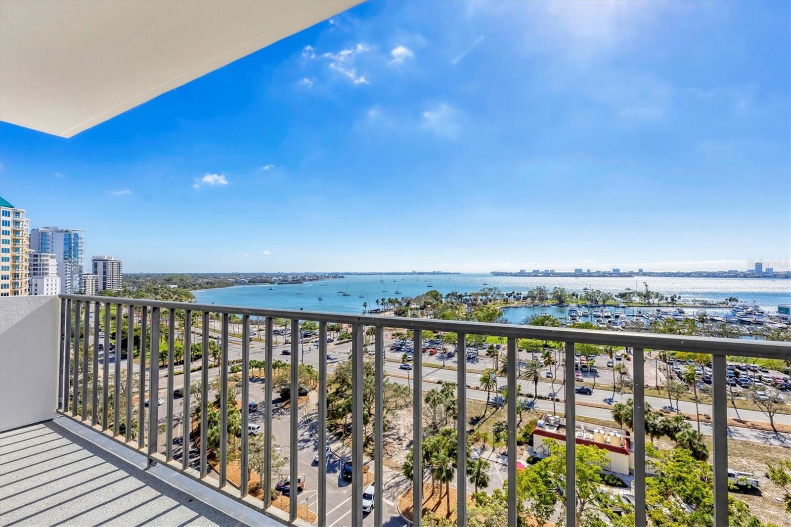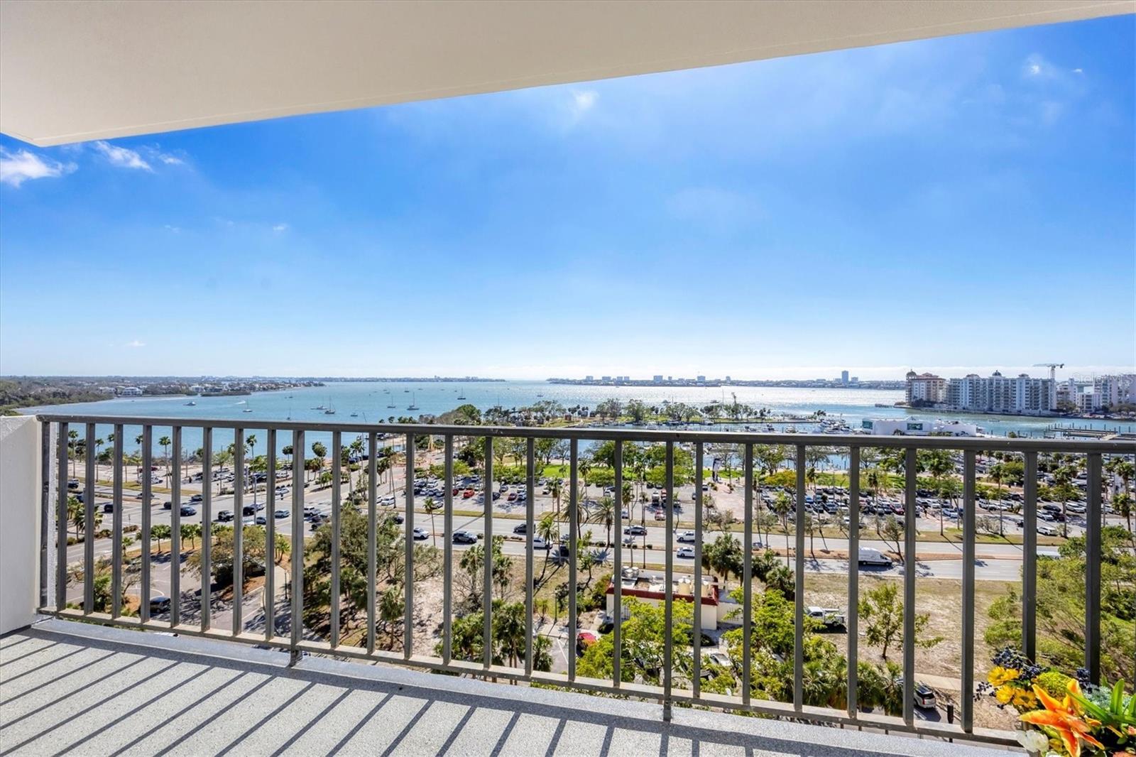Everyone's favorite unit just had a nice price reduction. Amazing View! Fantastic Location! These are the words that come to mind when you step into this incredible downtown building called 101 Condominium. This unique building is in the best spot downtown. Across from Marina Jacks and Bayfront Park, seconds from Main Street, minutes to the theater, restaurants, Whole Foods, music venues, Selby Gardens, the library, the Farmer's Market and so much more. This 1- bedroom, 2-bathroom condo is a perfect place to call home, to use in season or to have for your weekend getaways in Sarasota. This unit has been upgraded with a newer kitchen, newer floors, remodeled and updated bathrooms, freshly painted, and comes with brand new furniture. This unit has a million dollar view from the terrace, from the living space, and from the master bedroom. The view is endless! Sit and watch the boats, the sunsets, views of the marina, the park, Bird Key, Siesta, the bay and the Gulf of Mexico. The building is under renovations and the Façade will be sleek, modern, sophisticated and just plain gorgeous. There is a large pool on the 4th floor, a clubroom for functions and a gym. The convenience of this building can not be expressed enough; walk over the bridge to St. Armand's Circle, minutes to Lido Beach and also to the world-famous beach of Siesta Key. Do not let this pass by! Call today to schedule your private tour!