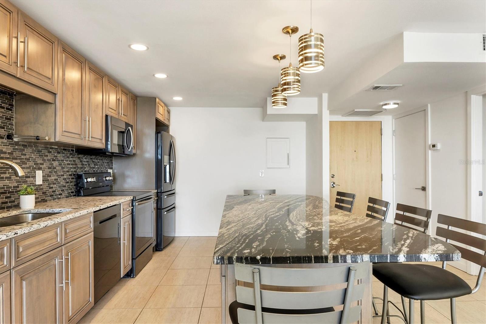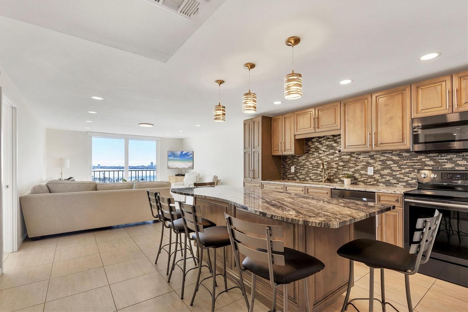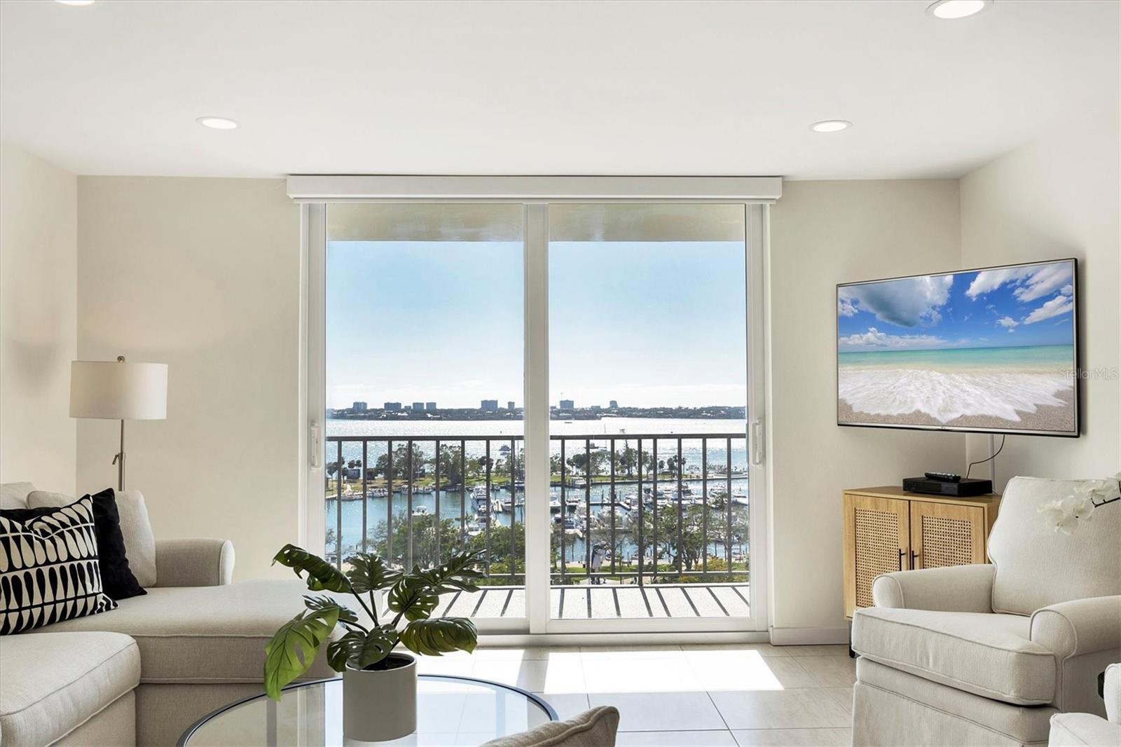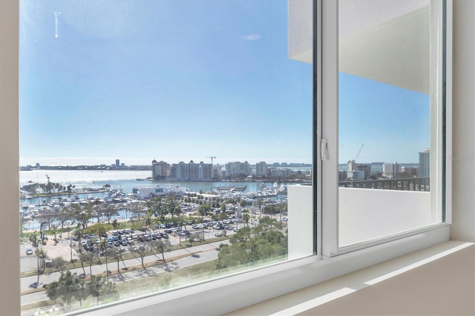 Everyone's favorite unit just had a nice price reduction. Amazing View! Fantastic Location! These are the words that come to mind when you step into this incredible downtown building called 101 Condominium. This unique building is in the best spot downtown. Across from Marina Jacks and Bayfront Park, seconds from Main Street, minutes to the theater, restaurants, Whole Foods, music venues, Selby Gardens, the library, the Farmer's Market and so much more. This 1- bedroom, 2-bathroom condo is a perfect place to call home, to use in season or to have for your weekend getaways in Sarasota. This unit has been upgraded with a newer kitchen, newer floors, remodeled and updated bathrooms, freshly painted, and comes with brand new furniture. This unit has a million dollar view from the terrace, from the living space, and from the master bedroom. The view is endless! Sit and watch the boats, the sunsets, views of the marina, the park, Bird Key, Siesta, the bay and the Gulf of Mexico. The building is under renovations and the Façade will be sleek, modern, sophisticated and just plain gorgeous. There is a large pool on the 4th floor, a clubroom for functions and a gym. The convenience of this building can not be expressed enough; walk over the bridge to St. Armand's Circle, minutes to Lido Beach and also to the world-famous beach of Siesta Key. Do not let this pass by! Call today to schedule your private tour!