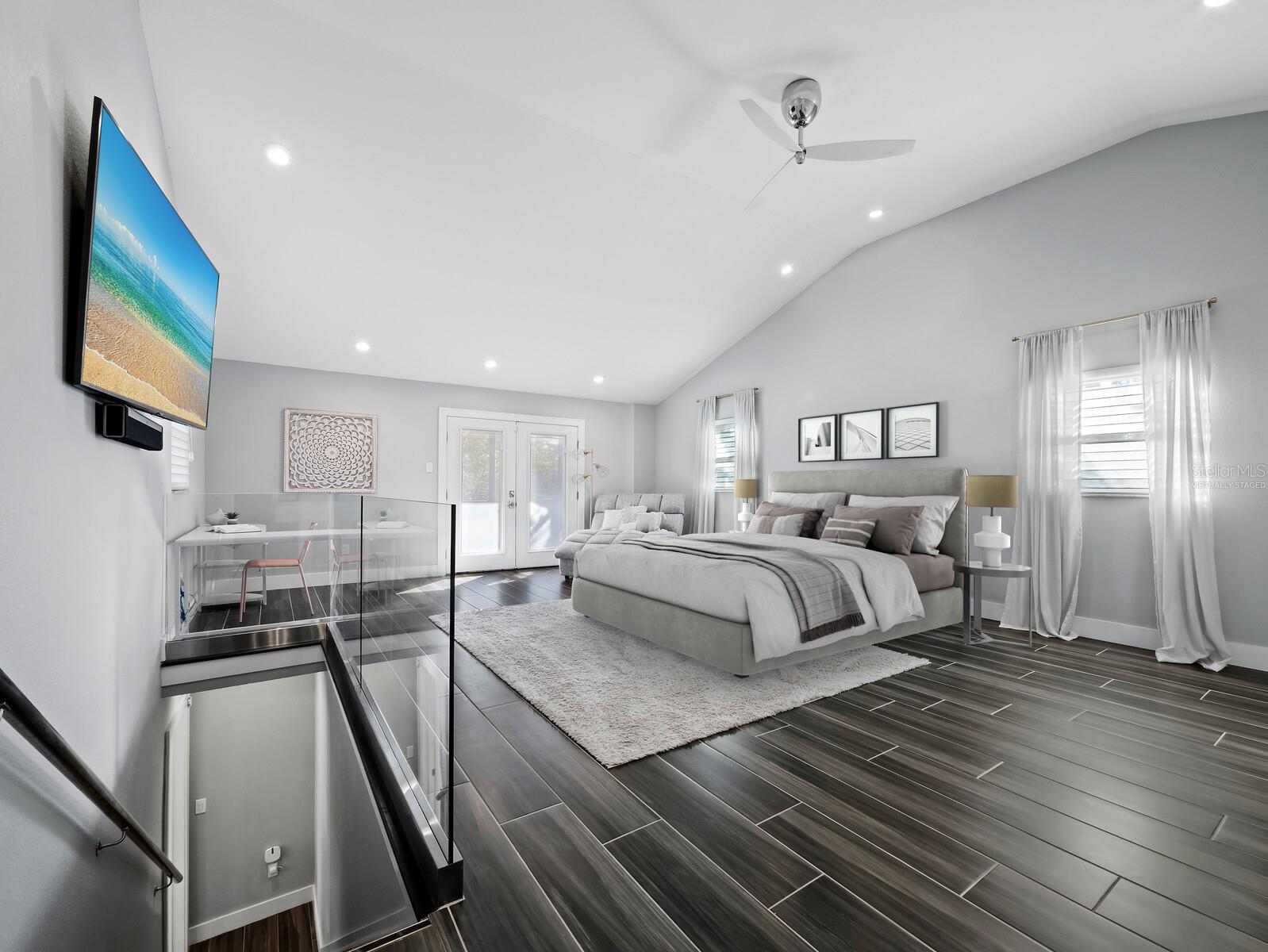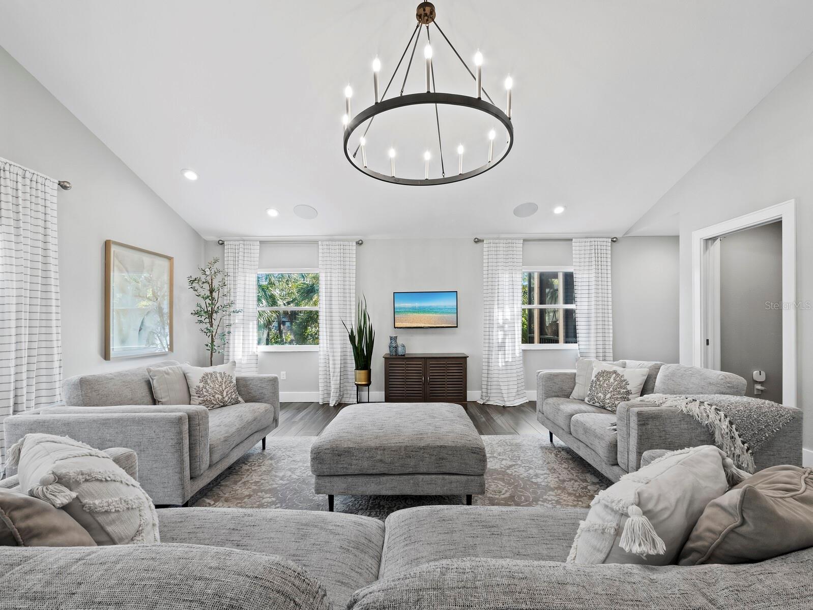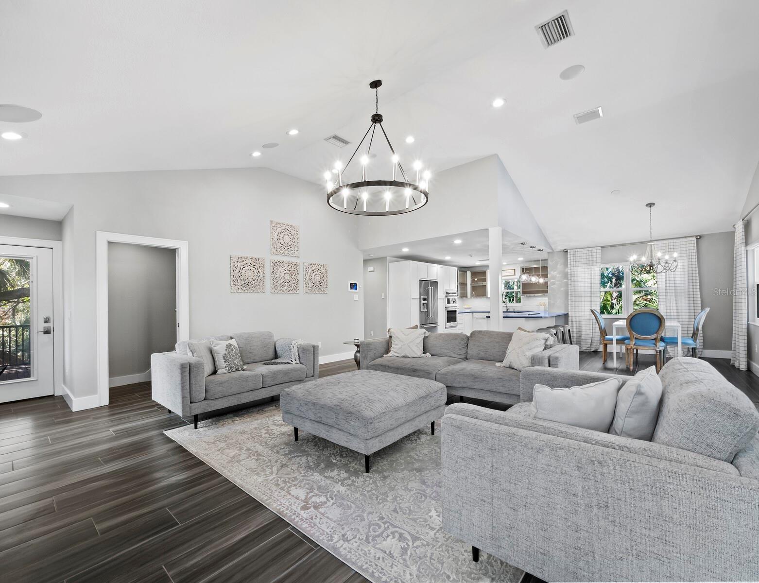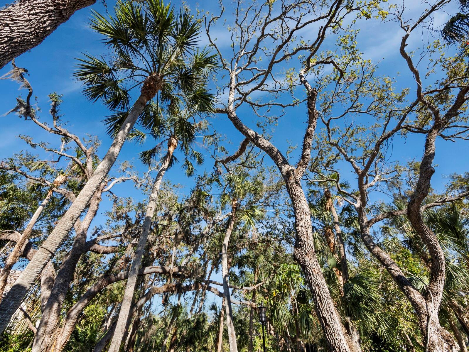 One or more photo(s) has been virtually staged. Located in popular and convenient South Gate, this home is anything but typical! Elevated and surrounded by gorgeous nature, it has the feel of a luxurious tropical treehouse. From the large lot on a quiet & private street to the huge deck at the front door, you will appreciate the cool style as soon as you pull up…this property is unique and beautiful and nestled into its surroundings in a way that you don’t often see. Phillippi Creek winds around the edge of the lot and you’ll often spot egrets, wood storks, blue heron, and even roseate spoonbills wading there, plus bald eagles and owls are known to nest nearby – it is truly a nature-lover’s paradise! Also, the creek is ideal for kayaking and you can launch right from the property and paddle all the way to in intercoastal if you like. The first floor features a spacious 2-car garage and loads of storage, with all living space located safely high above on the second and third stories. Soaring ceilings and a beautifully updated & chic kitchen define the main living area, with an elegant bath and the two nicely-sized bedrooms located on the same level. The property is offered furnished for your ultimate ease and convenience. You’ll adore the large screened deck with grill & gas fire pit too! Tucked into the treetops, this outdoor living space is infinitely enjoyable. Ascend to the main bedroom suite, where you will be absolutely wowed by the spaciousness and fantastic high ceilings! There is plenty of room for a sitting area, desk, or even a yoga or meditation spot so you can create a true retreat. The updated bath features a freestanding tub and shower with space for two, and the large walk-in closet has ample space and is already customized! The laundry is conveniently located upstairs in a second closet, and there is also a second fabulous screen porch to enjoy. Many smart home features make for easy living: Lutron lighting throughout, in-ceiling speakers, Arlo camera system, and an August automated front door lock. This entire home is perfectly updated and ready to enjoy and you will also be thrilled with the location: easily drive or bike to Siesta Key Beach or downtown, or hop on the nearby Legacy Trail! 10 minutes or less will get you most places, which is a rarity in Sarasota. Your tropical paradise treehouse awaits…come take a look at this unique and dazzling property today!