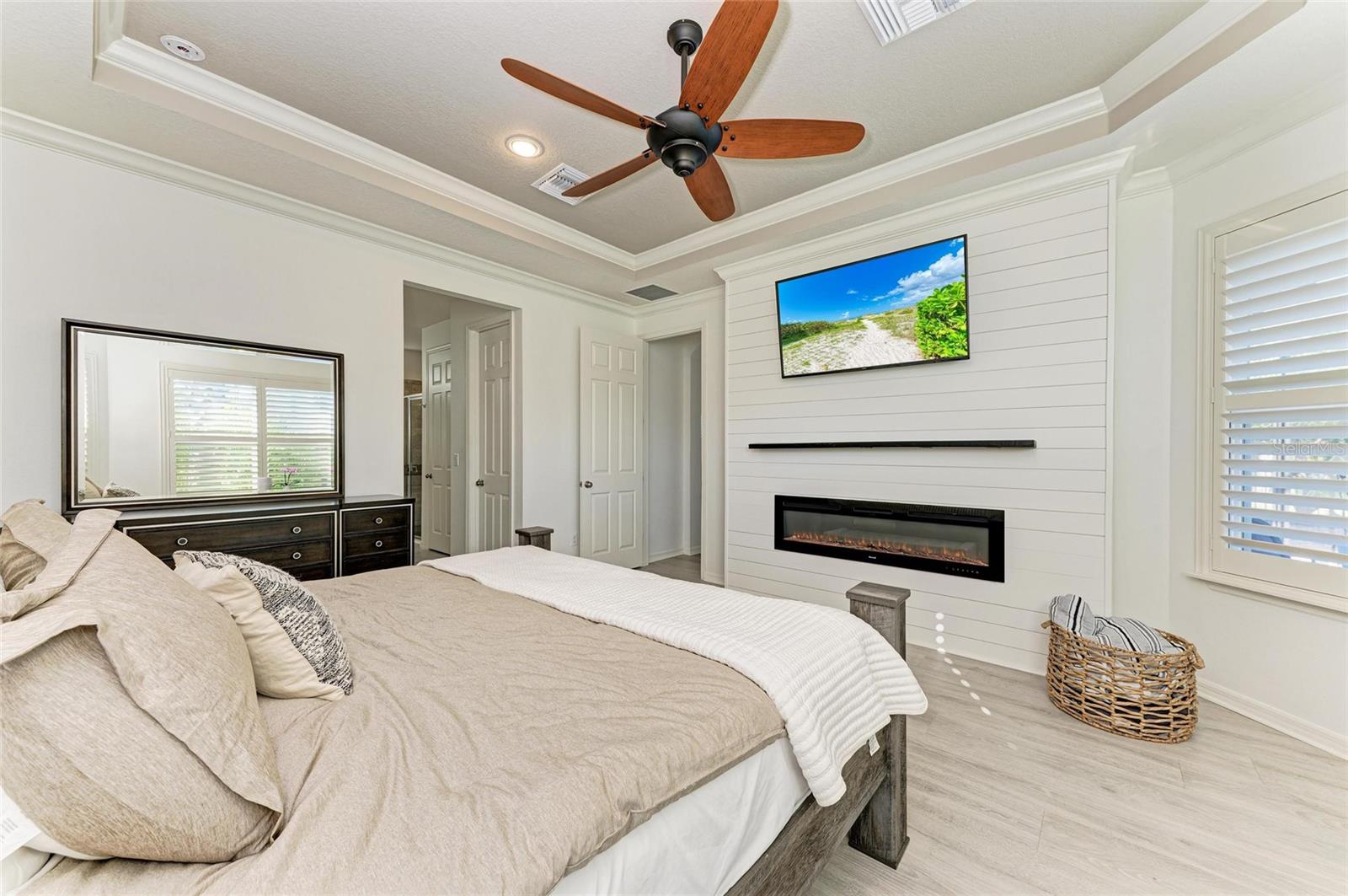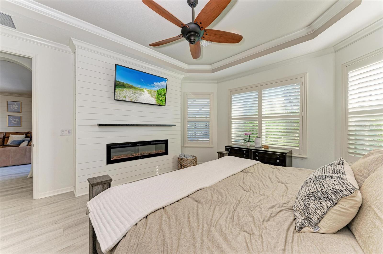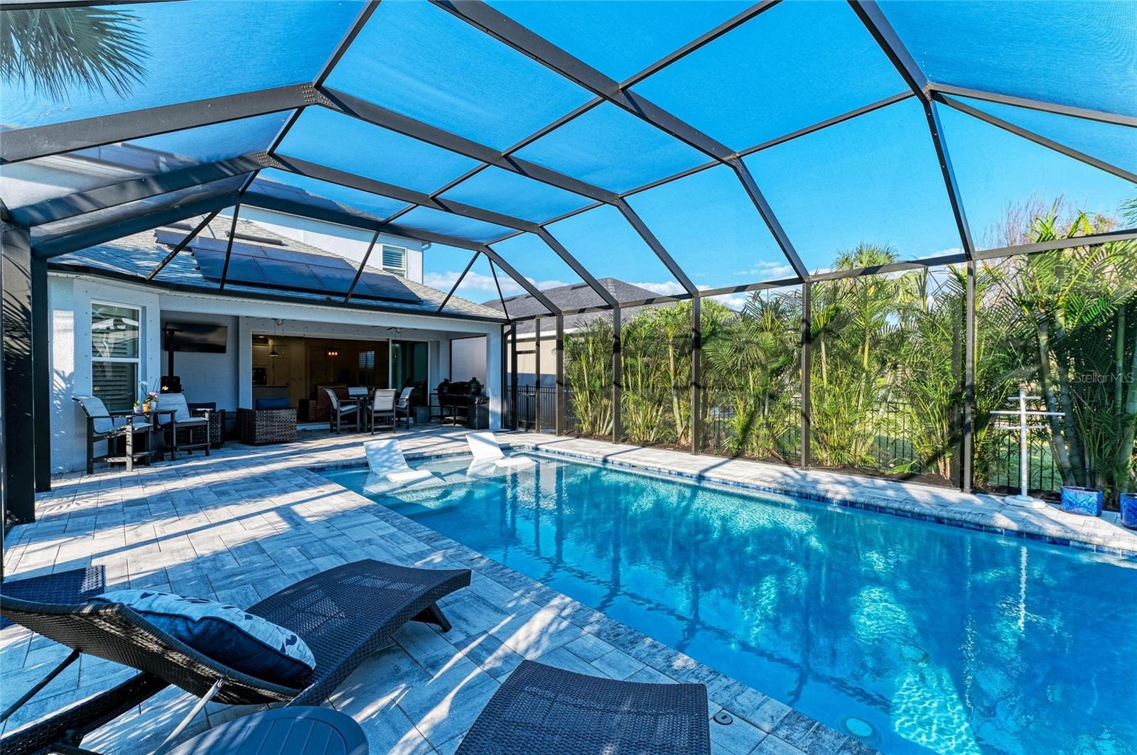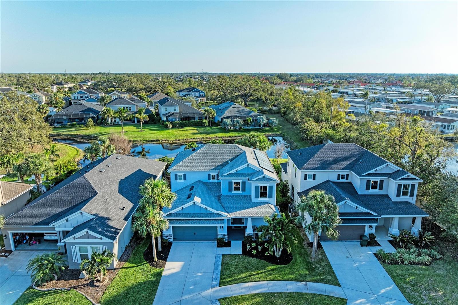 Nestled on a premium lakefront lot in the sought-after Arbor Lakes in Palmer Ranch, this exceptional four-bedroom, three-and-a-half-bathroom home with a flex room and loft offers 2,973 square feet of luxurious living space. Designed with high-end upgrades, breathtaking views, and resort-style amenities, this home embodies the best of Florida living. From the moment you step inside, you’ll be captivated by the tall ceilings, elegant crown molding, plantation shutters, and custom finishes. The spacious great room is a showstopper, featuring a built-in media wall with a cozy fireplace, perfect for relaxing evenings. The gourmet chef’s kitchen is equally impressive, boasting 42-inch cabinetry, a large island, stainless steel appliances, a built-in oven and microwave, and a gas cooktop. Step outside to your panoramic screened lanai and take in the unobstructed lake views. The heated 16-by-28-foot saltwater pool with a sundeck entrance and seating area creates the perfect setting for entertaining or unwinding at sunset. Plus, with solar panels keeping your electric bill low, you can enjoy luxury while saving on energy costs. Your private retreat features a fireplace for warmth and ambiance, offering a true sanctuary at the end of the day. Additional highlights include a 2018 roof, in-wall pest defense system, electric blinds in the living room, and gas-powered appliances, including the water heater and pool heater. Furniture is available for purchase separately. Enjoy a vibrant, family-friendly community with top-tier amenities, including a pirate playground, splash park, resort-style pool and spa, volleyball, basketball, dog park, fishing areas, and a community fire pit. Located in a top-rated school district, this home is zoned for the brand-new Skye Ranch K-8 and is just 15 minutes from Pine View School for the Gifted. Plus, you’re only minutes from downtown Sarasota, world-class dining, shopping, and the world-famous Siesta Key Beach. This rare opportunity won’t last—schedule your private showing today.