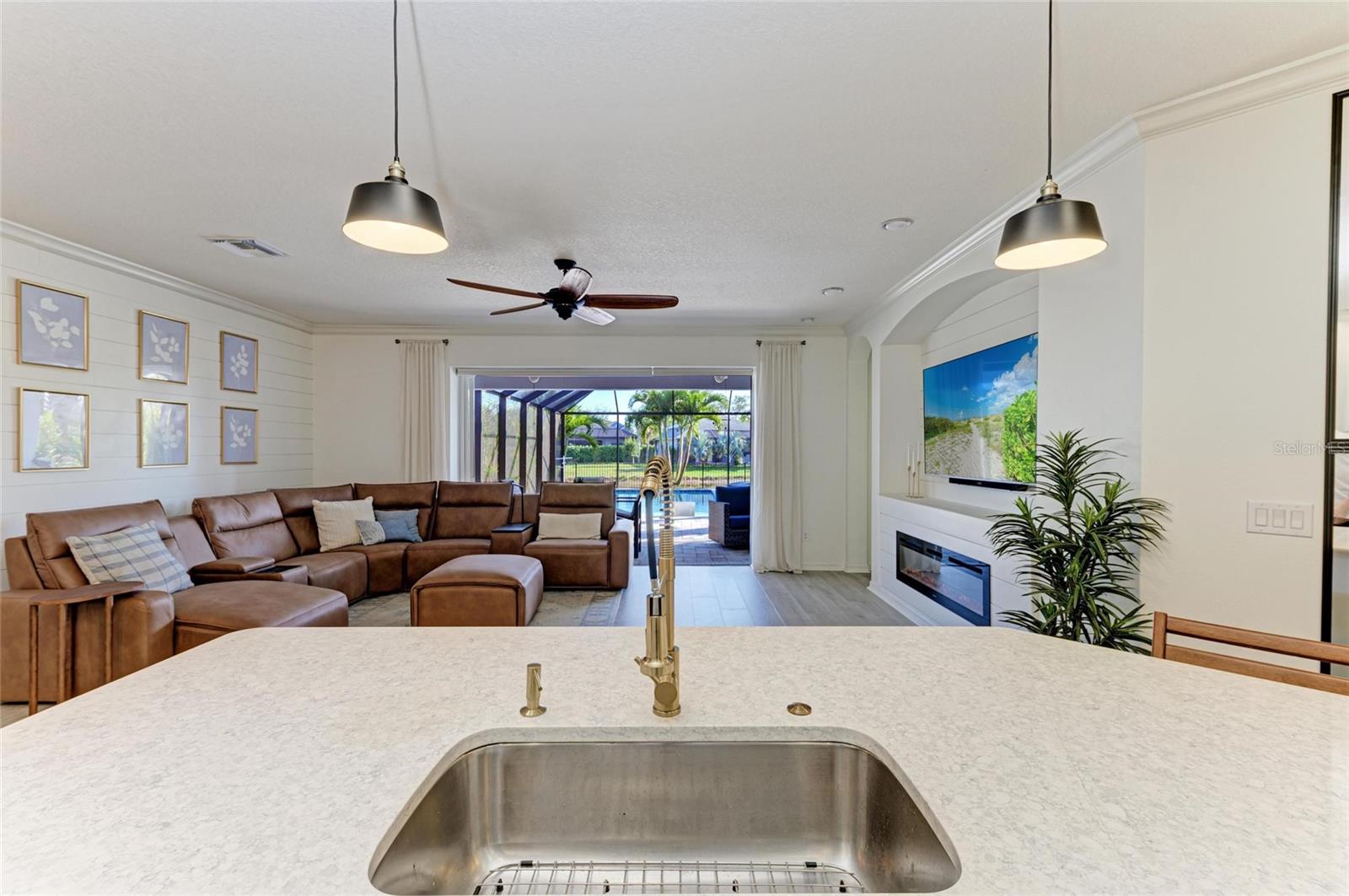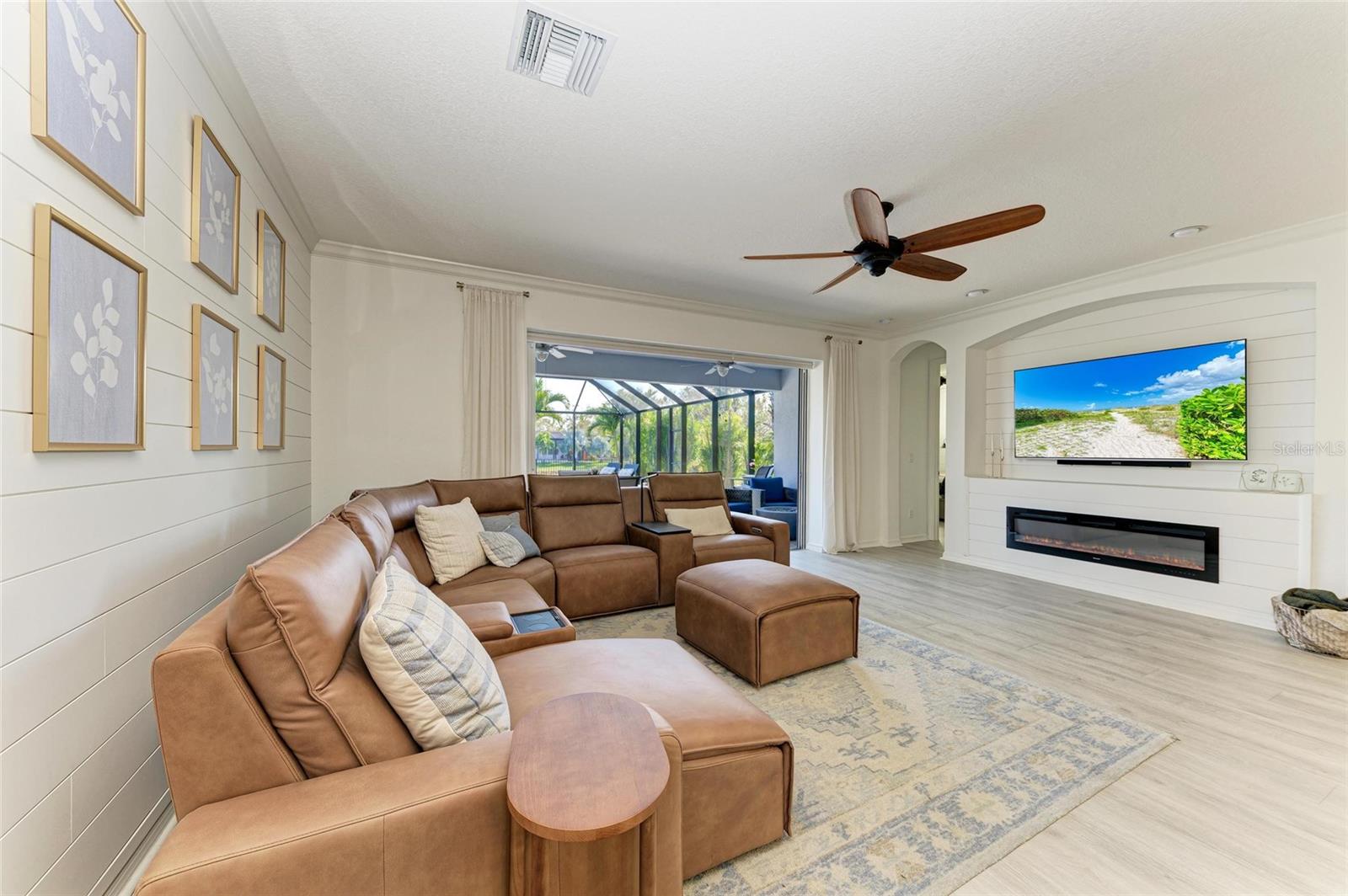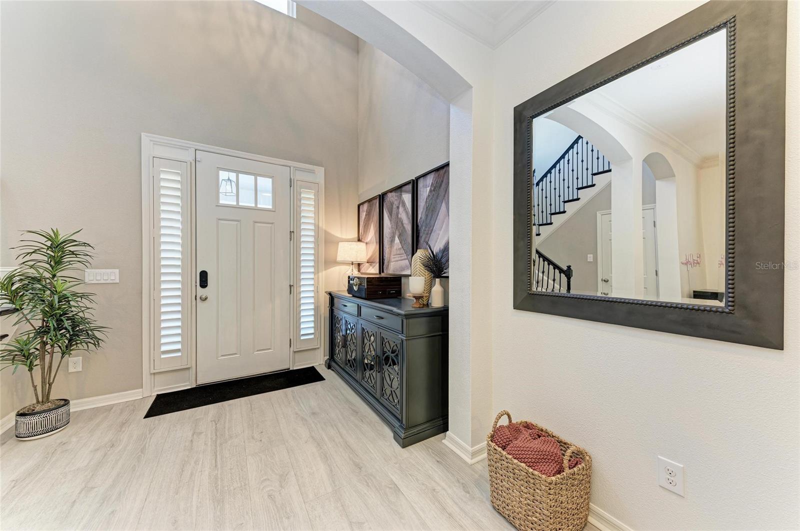 Nestled on a premium lakefront lot in the sought-after Arbor Lakes in Palmer Ranch, this exceptional four-bedroom, three-and-a-half-bathroom home with a flex room and loft offers 2,973 square feet of luxurious living space. Designed with high-end upgrades, breathtaking views, and resort-style amenities, this home embodies the best of Florida living. From the moment you step inside, you’ll be captivated by the tall ceilings, elegant crown molding, plantation shutters, and custom finishes. The spacious great room is a showstopper, featuring a built-in media wall with a cozy fireplace, perfect for relaxing evenings. The gourmet chef’s kitchen is equally impressive, boasting 42-inch cabinetry, a large island, stainless steel appliances, a built-in oven and microwave, and a gas cooktop. Step outside to your panoramic screened lanai and take in the unobstructed lake views. The heated 16-by-28-foot saltwater pool with a sundeck entrance and seating area creates the perfect setting for entertaining or unwinding at sunset. Plus, with solar panels keeping your electric bill low, you can enjoy luxury while saving on energy costs. Your private retreat features a fireplace for warmth and ambiance, offering a true sanctuary at the end of the day. Additional highlights include a 2018 roof, in-wall pest defense system, electric blinds in the living room, and gas-powered appliances, including the water heater and pool heater. Furniture is available for purchase separately. Enjoy a vibrant, family-friendly community with top-tier amenities, including a pirate playground, splash park, resort-style pool and spa, volleyball, basketball, dog park, fishing areas, and a community fire pit. Located in a top-rated school district, this home is zoned for the brand-new Skye Ranch K-8 and is just 15 minutes from Pine View School for the Gifted. Plus, you’re only minutes from downtown Sarasota, world-class dining, shopping, and the world-famous Siesta Key Beach. This rare opportunity won’t last—schedule your private showing today.