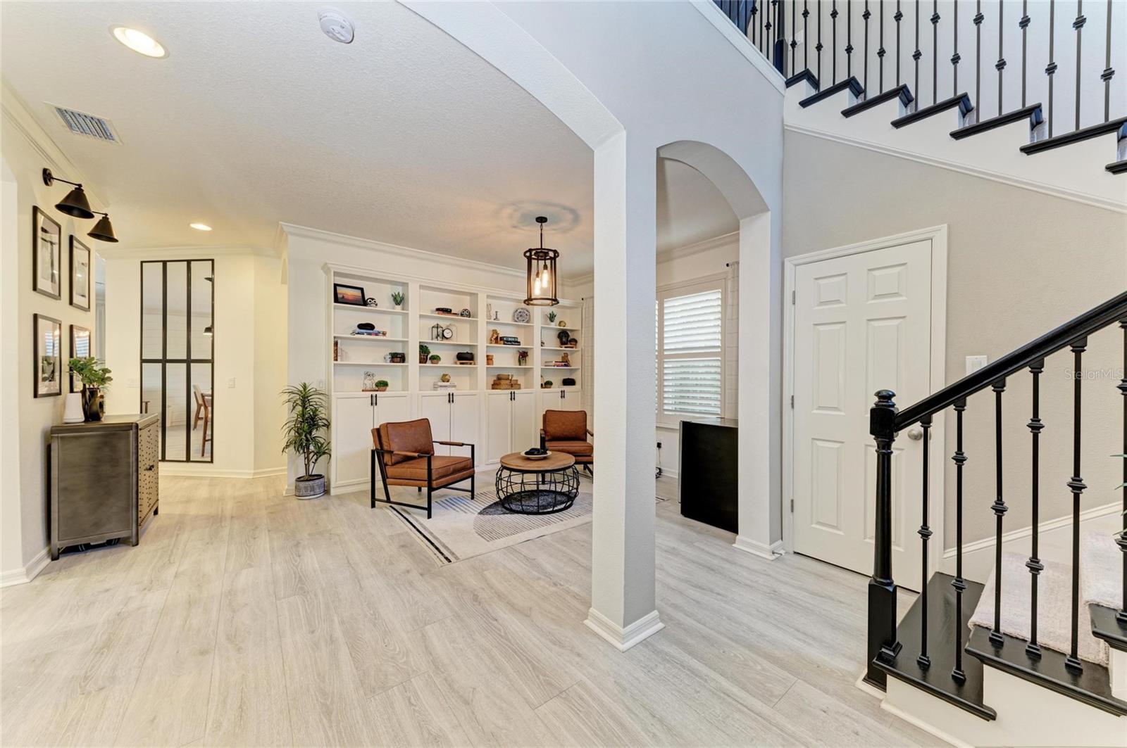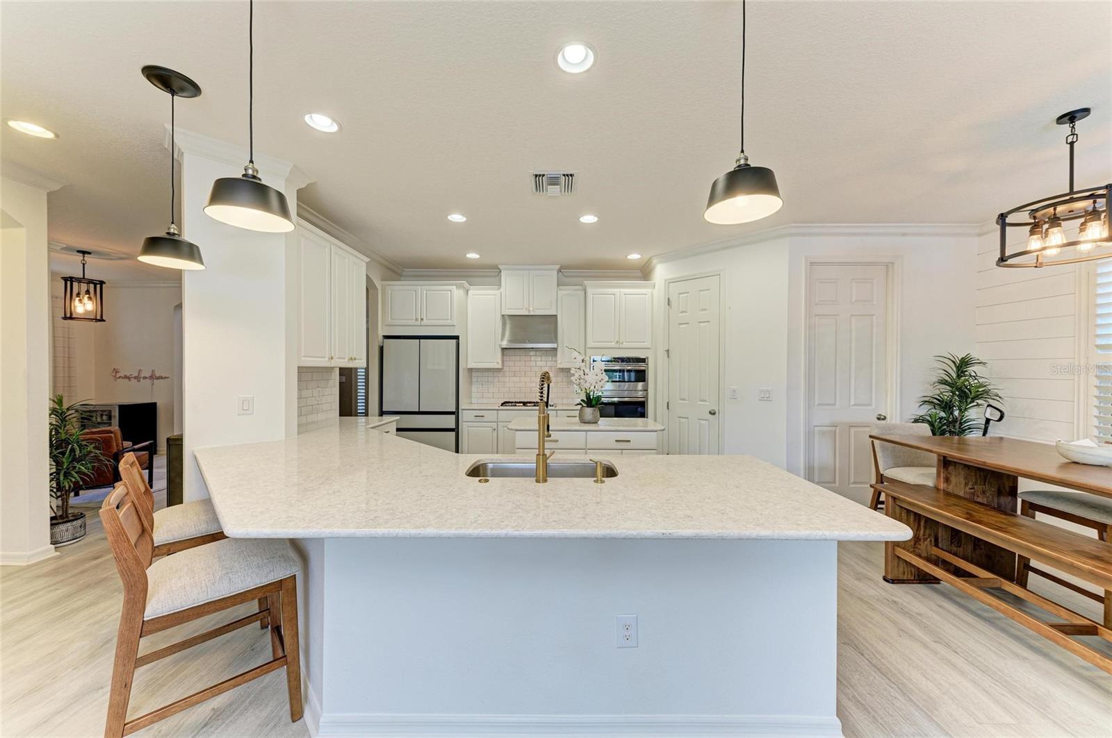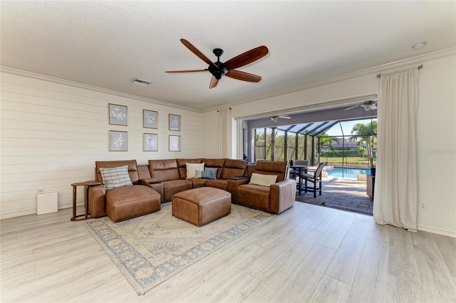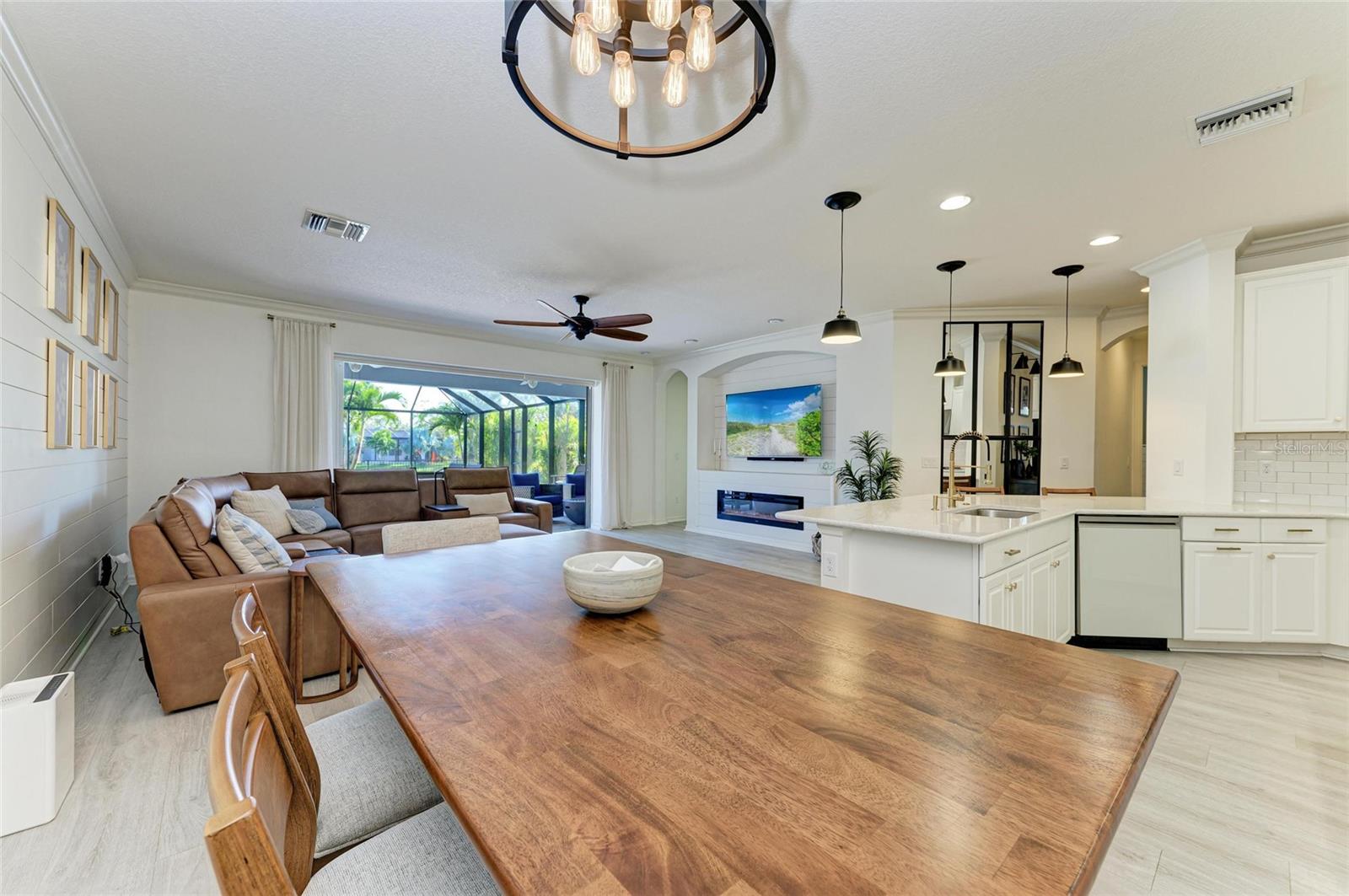 Nestled on a premium lakefront lot in the sought-after Arbor Lakes in Palmer Ranch, this exceptional four-bedroom, three-and-a-half-bathroom home with a flex room and loft offers 2,973 square feet of luxurious living space. Designed with high-end upgrades, breathtaking views, and resort-style amenities, this home embodies the best of Florida living. From the moment you step inside, you’ll be captivated by the tall ceilings, elegant crown molding, plantation shutters, and custom finishes. The spacious great room is a showstopper, featuring a built-in media wall with a cozy fireplace, perfect for relaxing evenings. The gourmet chef’s kitchen is equally impressive, boasting 42-inch cabinetry, a large island, stainless steel appliances, a built-in oven and microwave, and a gas cooktop. Step outside to your panoramic screened lanai and take in the unobstructed lake views. The heated 16-by-28-foot saltwater pool with a sundeck entrance and seating area creates the perfect setting for entertaining or unwinding at sunset. Plus, with solar panels keeping your electric bill low, you can enjoy luxury while saving on energy costs. Your private retreat features a fireplace for warmth and ambiance, offering a true sanctuary at the end of the day. Additional highlights include a 2018 roof, in-wall pest defense system, electric blinds in the living room, and gas-powered appliances, including the water heater and pool heater. Furniture is available for purchase separately. Enjoy a vibrant, family-friendly community with top-tier amenities, including a pirate playground, splash park, resort-style pool and spa, volleyball, basketball, dog park, fishing areas, and a community fire pit. Located in a top-rated school district, this home is zoned for the brand-new Skye Ranch K-8 and is just 15 minutes from Pine View School for the Gifted. Plus, you’re only minutes from downtown Sarasota, world-class dining, shopping, and the world-famous Siesta Key Beach. This rare opportunity won’t last—schedule your private showing today.