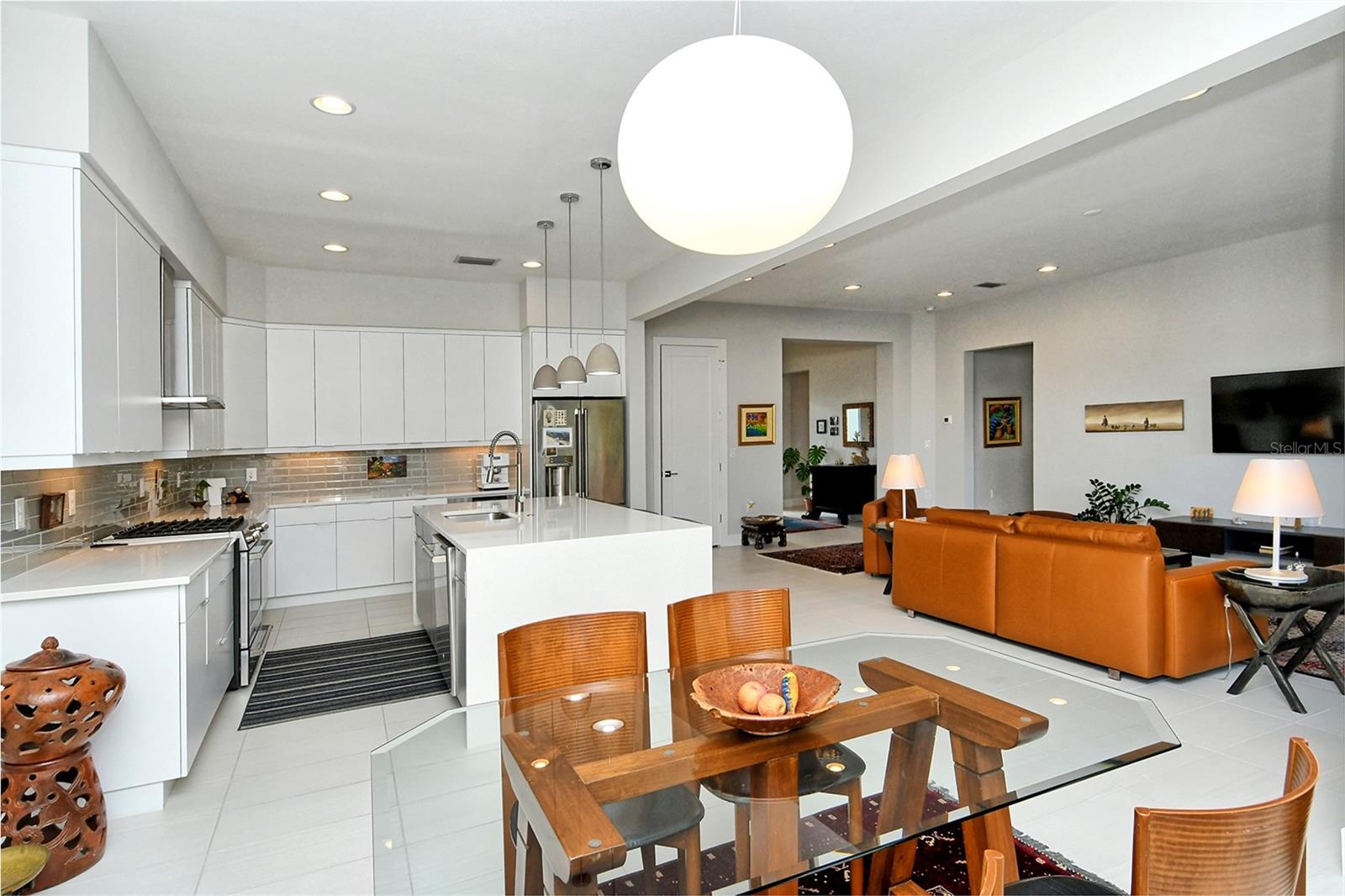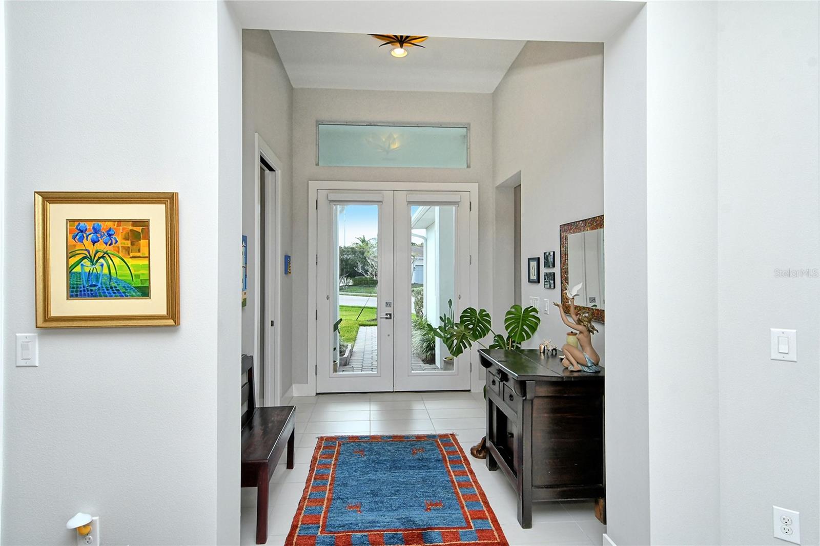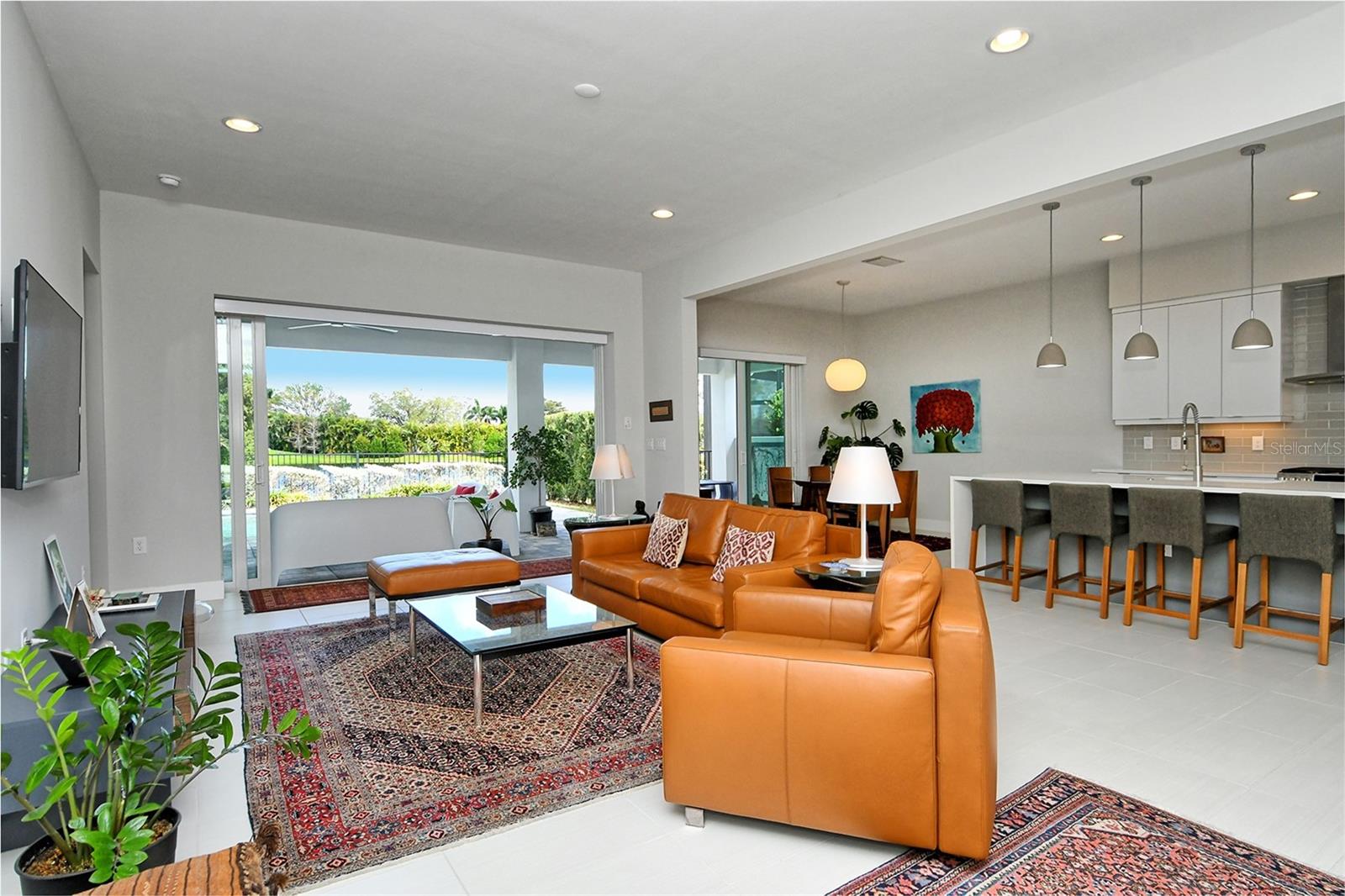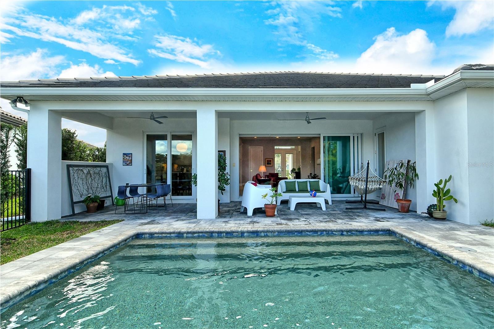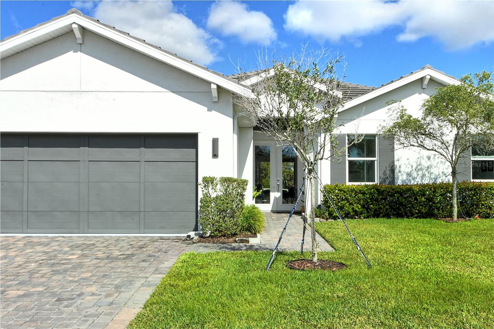 Situated on one of the largest corner lots in the prestigious gated enclave of Sandhill Lake, this exquisite pool residence offers breathtaking lake views and meticulously landscaped surroundings. Crafted by award-winning luxury builder Heritage Builders, this residence showcases unparalleled design and superior craftsmanship. The open-concept floor plan features soaring 12-foot ceilings, creating a seamless flow throughout the living spaces. Enter through grand 10-foot double doors with glass panels and be captivated by the modern elegance and high-end finishes. Hurricane-impact windows and sliding glass doors provide peace of mind, and this home remained completely unaffected by last year’s hurricanes. The 12x24 luxury porcelain tile floors add a touch of sophistication. Built in 2020, this residence features three spacious en-suite bedrooms, each designed for comfort and privacy. The lavish primary suite is a private retreat with oversized windows overlooking the serene pool and lake, along with direct access to the lanai. The spa-like bathroom features quartz countertops, dual sinks, and a stand-alone custom imported porcelain tub. Each additional en-suite bedroom includes a custom wood walk-in closet and a private bath. A guest room with a built-in office nook adds versatility to the home. Designed for the culinary enthusiast, the gourmet kitchen features a gas stove, waterfall-edge quartz countertops, a glass tile backsplash, custom wood cabinetry, top-of-the-line Café Series appliances, and a spacious pantry. Seamlessly blending indoor and outdoor living, the enclosed lanai, fenced yard, and state-of-the-art pool create a resort-style oasis. The elegant concrete paver patio provides the perfect setting for relaxation or entertaining, with space to add an outdoor kitchen. Not in a flood zone! The low HOA fees cover lawn maintenance and pest control, and with no CDD fees, residents enjoy both luxury and affordability. Located in an A-rated school district, including Riverview High School, this home is just minutes from Siesta Key Beach, Myakka Park, downtown Sarasota, top-rated golf courses, and fine dining. Residents of Sandhill Lake enjoy exclusive access to a clubhouse, resort-style pool, spa, and fire pit. Move-in ready, this modern luxury home offers an exceptional blend of elegance, comfort, and convenience.