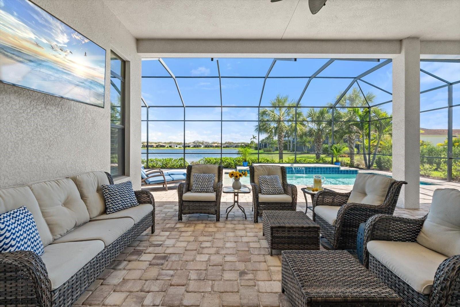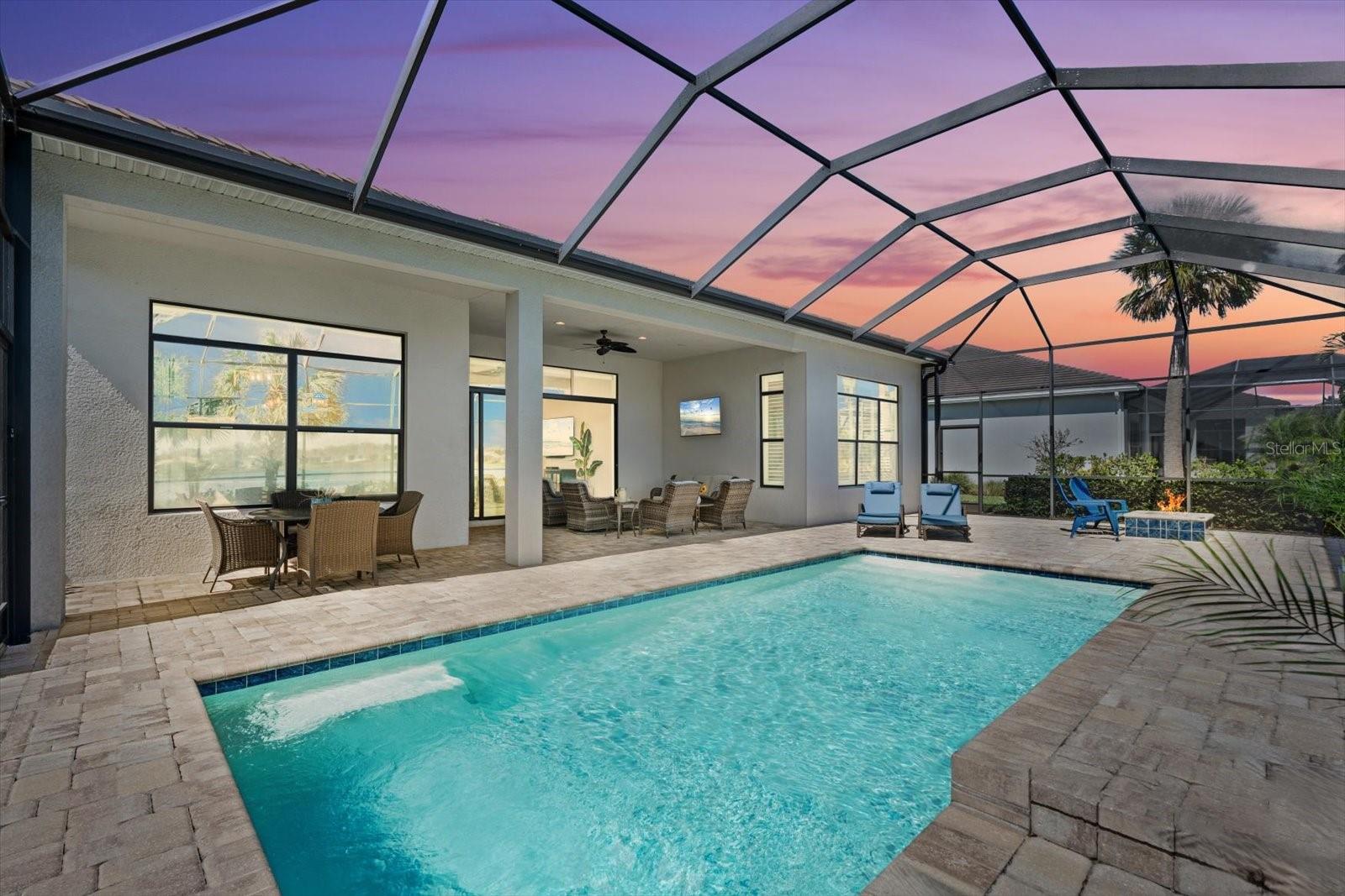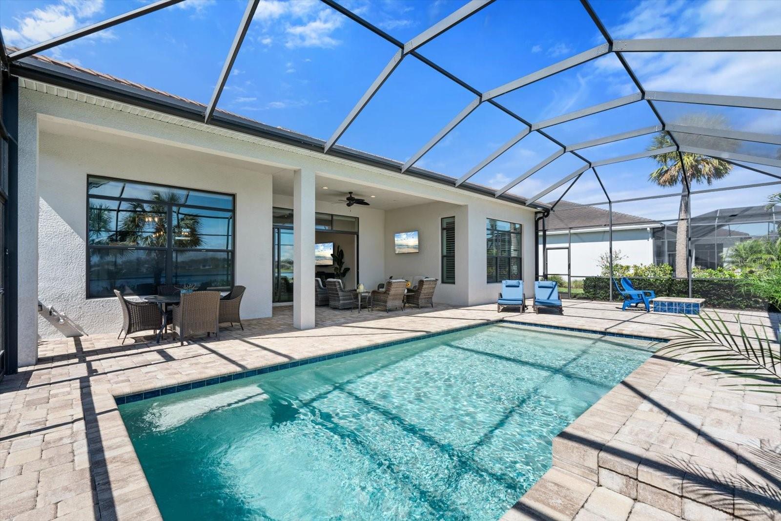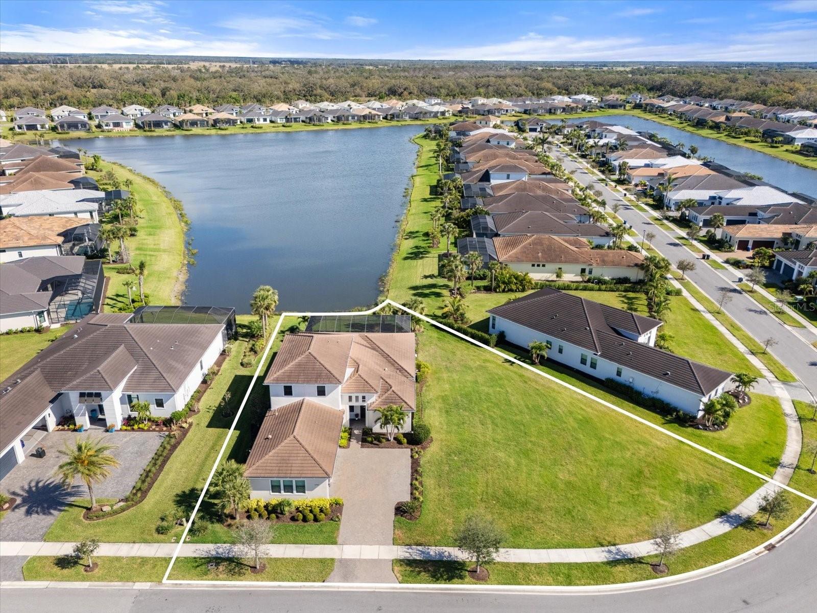New Price! This is the largest pool home with biggest lot available within the desirable Artistry community! Community was high and dry past hurricane season, no storm damage to home. No CDD fees! Artistry community offers a maintenance-free lifestyle as HOA fee covers access to amenities such as resort style pool, aerobic/yoga studio, fitness center, basketball/pickleball court, playground and nature trails. HOA fee also covers lawn maintenance, mulching, irrigation and gated security. The rarely available 2-story Monet II model features a spacious layout with 4 bedrooms, 4.5 baths with an office and bonus room is situated on one of the largest lakefront lots within the community. The oversized 3-car garage has plenty of space for a golf cart or extra storage. As you walk into this bright layout you have beautiful views of the lake and sparkling saltwater pool. The kitchen features upgraded quartz countertops, natural gas stovetop, wine fridge and GE Monogram built-in refrigerator. The first-floor main bedroom suite is a relaxing oasis with double quartz countertop vanities and features a large walk-in closet with custom built closet system. The upstairs bonus room , bathroom and large bedroom with walk-in closet offers additional area for guest privacy or family activities. This home is made for entertaining with the open floor plan leading out to the expansive 1,200 SF lanai. Create your outdoor kitchen, as it is pre-plumbed. Gather around the gas fire pit on those chilly evenings and take in the view. Fences are permitted. The world-famous Siesta Key Beach and Lido Key are just a short drive. Quick access to the interstate and minutes to dining and shopping galore at UTC center. Enjoy golfing at some of the top-rated golf clubs in the area. This is it, Welcome Home.