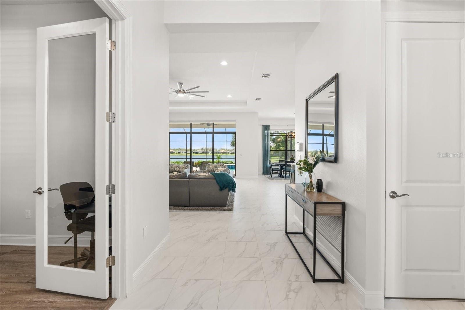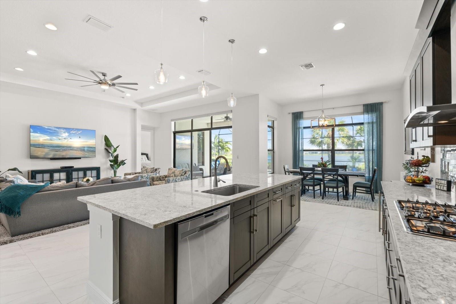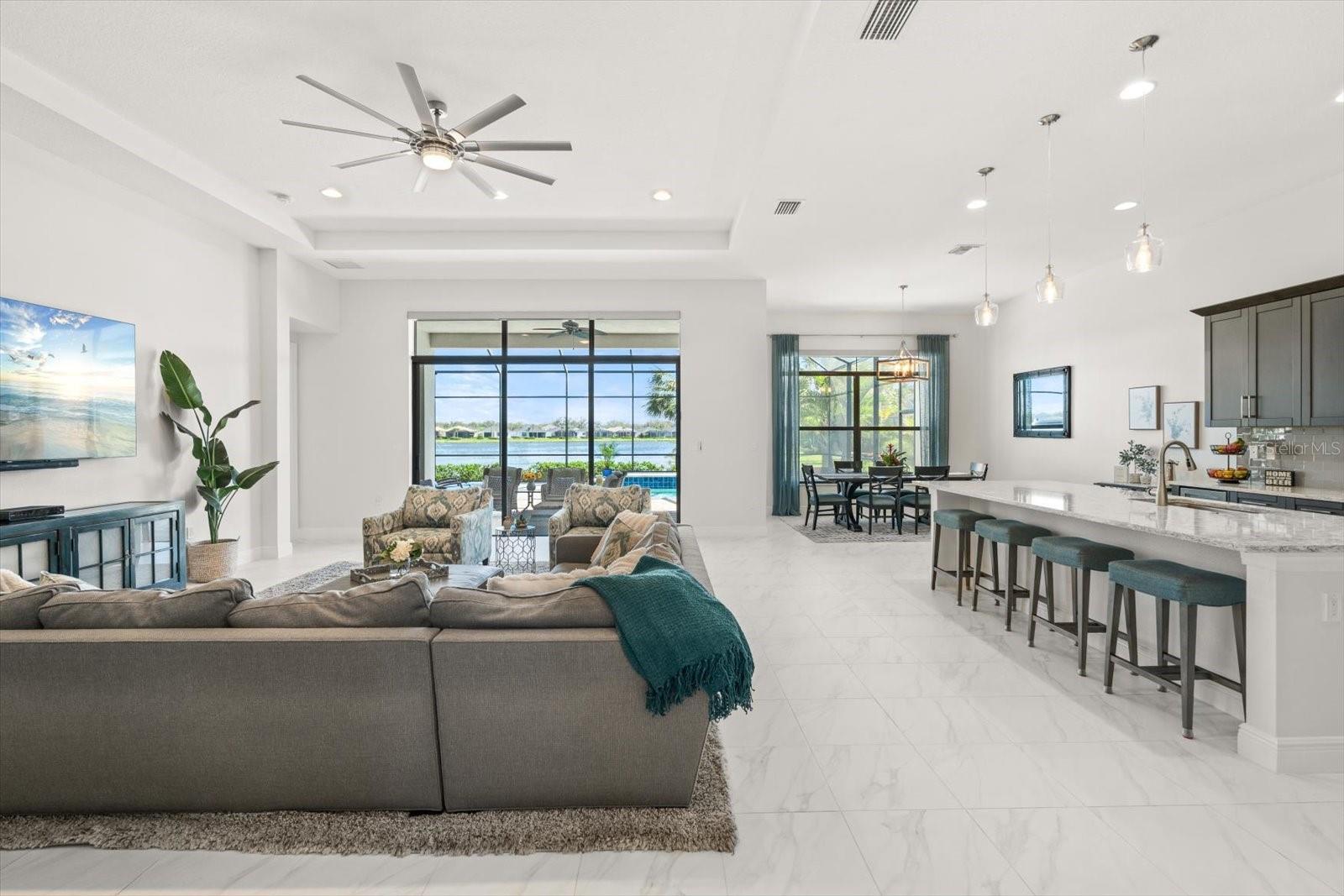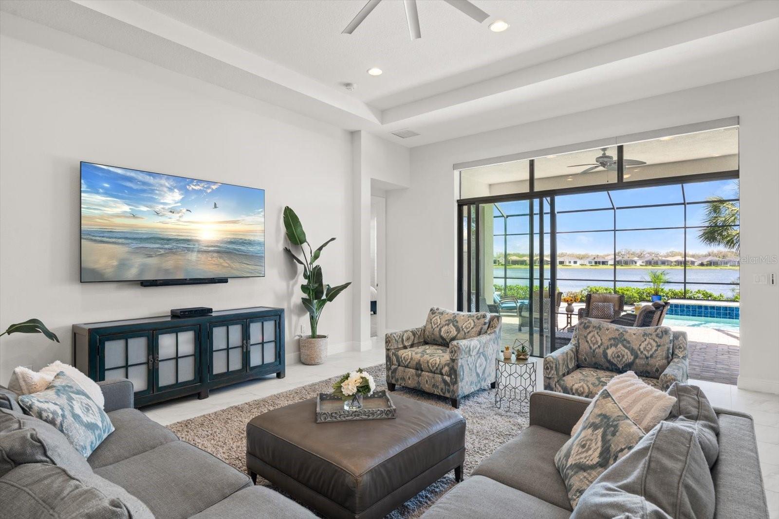 New Price! This is the largest pool home with biggest lot available within the desirable Artistry community! Community was high and dry past hurricane season, no storm damage to home. No CDD fees! Artistry community offers a maintenance-free lifestyle as HOA fee covers access to amenities such as resort style pool, aerobic/yoga studio, fitness center, basketball/pickleball court, playground and nature trails. HOA fee also covers lawn maintenance, mulching, irrigation and gated security. The rarely available 2-story Monet II model features a spacious layout with 4 bedrooms, 4.5 baths with an office and bonus room is situated on one of the largest lakefront lots within the community. The oversized 3-car garage has plenty of space for a golf cart or extra storage. As you walk into this bright layout you have beautiful views of the lake and sparkling saltwater pool. The kitchen features upgraded quartz countertops, natural gas stovetop, wine fridge and GE Monogram built-in refrigerator. The first-floor main bedroom suite is a relaxing oasis with double quartz countertop vanities and features a large walk-in closet with custom built closet system. The upstairs bonus room , bathroom and large bedroom with walk-in closet offers additional area for guest privacy or family activities. This home is made for entertaining with the open floor plan leading out to the expansive 1,200 SF lanai. Create your outdoor kitchen, as it is pre-plumbed. Gather around the gas fire pit on those chilly evenings and take in the view. Fences are permitted. The world-famous Siesta Key Beach and Lido Key are just a short drive. Quick access to the interstate and minutes to dining and shopping galore at UTC center. Enjoy golfing at some of the top-rated golf clubs in the area. This is it, Welcome Home.