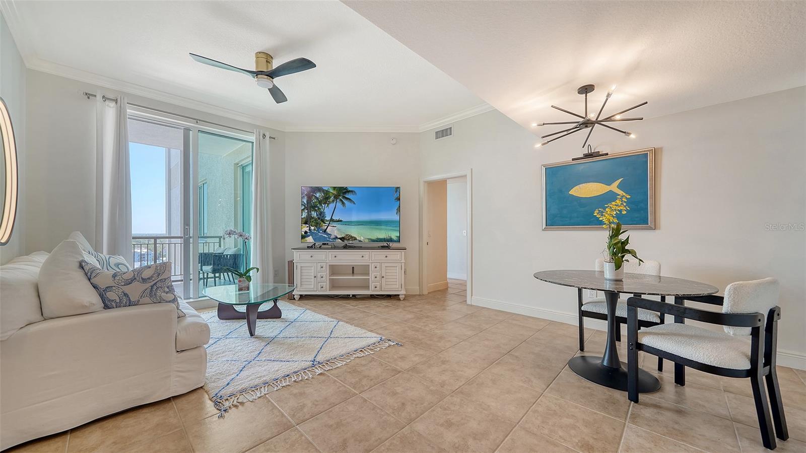 Welcome to Alinari at Rosemary Place, where it is all about the lifestyle. This luxury condominium stands perfectly positioned on eleven acres in the heart of downtown Sarasota with lush, landscaped grounds and modern resort style amenities. Relax and unwind from everyday life in this 15th floor unit with 1,310 square feet of living space, featuring 2 bedrooms and 2 baths within walking distance to the vibrant culinary, cultural, and art scene. When entering the condo, the foyer hallway opens to a bright airy living room and boasts tile floors throughout. A laundry room conveniently located near the entrance is ideal. The airy feel of the living room with extra high-ceiling makes it a fantastic space for hosting guests in style with an outdoor terrace with city views. The spacious open kitchen includes a breakfast bar, wood cabinets, stainless-steel appliances, granite countertops, and pantry. Enjoy your morning coffee on the terrace adjacent to the living room, designed for al fresco enjoyment against a backdrop of Downtown Sarasota. The primary bathroom features two separate vanities, a glass walk-in shower, bathtub, and walk-in closet. The floor plan offers a guest room with a walk-in closet and a full bath to provide a retreat for the family. This residence boasts architectural features including a tray ceiling in the kitchen and decorative crown molding in the living room. One unique amenity stands out: three guest suites are available in the building to accommodate additional overnight guests. The unit includes hurricane rated sliding doors, secure parking with one assigned spot and 24/7 security, ensuring peace of mind. The Alinari offers a lifestyle enhanced by legendary services and desirable amenities including: 24/7 concierge service, business center, a heated pool and spa, fitness center, sauna, massage room, and an oversized club room and kitchen for gatherings. Take advantage of their climate-controlled wine room with private storage lockers. Additional conveniences include a theater with stadium seating, card and billiard room, business center, storage, EV charging stations and secure under building parking. The Alinari offers a large, privately owned fenced green space for pets and parties and additional codominium-owned development land. Just minutes away from Bayfront Park, Van Wezel Performing Arts Hall, St. Armands Circle, and Lido Beach, this condo offers the perfect blend of comfort and convenience. Whether you are looking for that perfect home, or investment property as a rental, do not miss the opportunity to experience upscale downtown living at its finest.