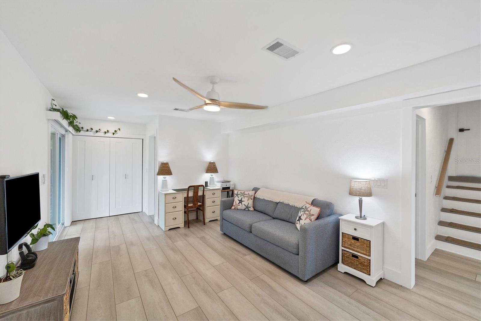 MULTIGENERATIONAL HOME with 1 BED + DEN /1 BATH ground level mother-in-law space w/ SEPERATE ENTRY, FULL-SIZED KITCHEN, LIVING ROOM, and LAUNDRY ROOM. The 3 BED / 2 BATH 2nd FLOOR SPACE also has its own SEPERATE ENTRY, FULL-SIZED KITCHEN, LIVING ROOM, DINING ROOM, and LAUNDRY ROOM. This IMMACULATE AND COMPLETELY UPDATED single family home has a total of 4 BEDROOMS + DEN / 3 BATHS. Improvements include NEW ROOF (2022) w/ transferable warranty, HURRICANE IMPACT WINDOWS (2017), ALL APPLIANCES (2023), and NEW EXTERIOR SIDING AND PVC TRIM (2023). No damage at all from recent storms and located in preferred X Zone. Large back yard with plenty of room for a pool. Located in the quiet, friendly, boutique neighborhood of GLENBROOKE. Super LOW HOA of just $300 PER YEAR and absolutely NO CDD FEES. This true MULTIGENERATIONAL / EXTENDED FAMILY HOME is an absolute must see!