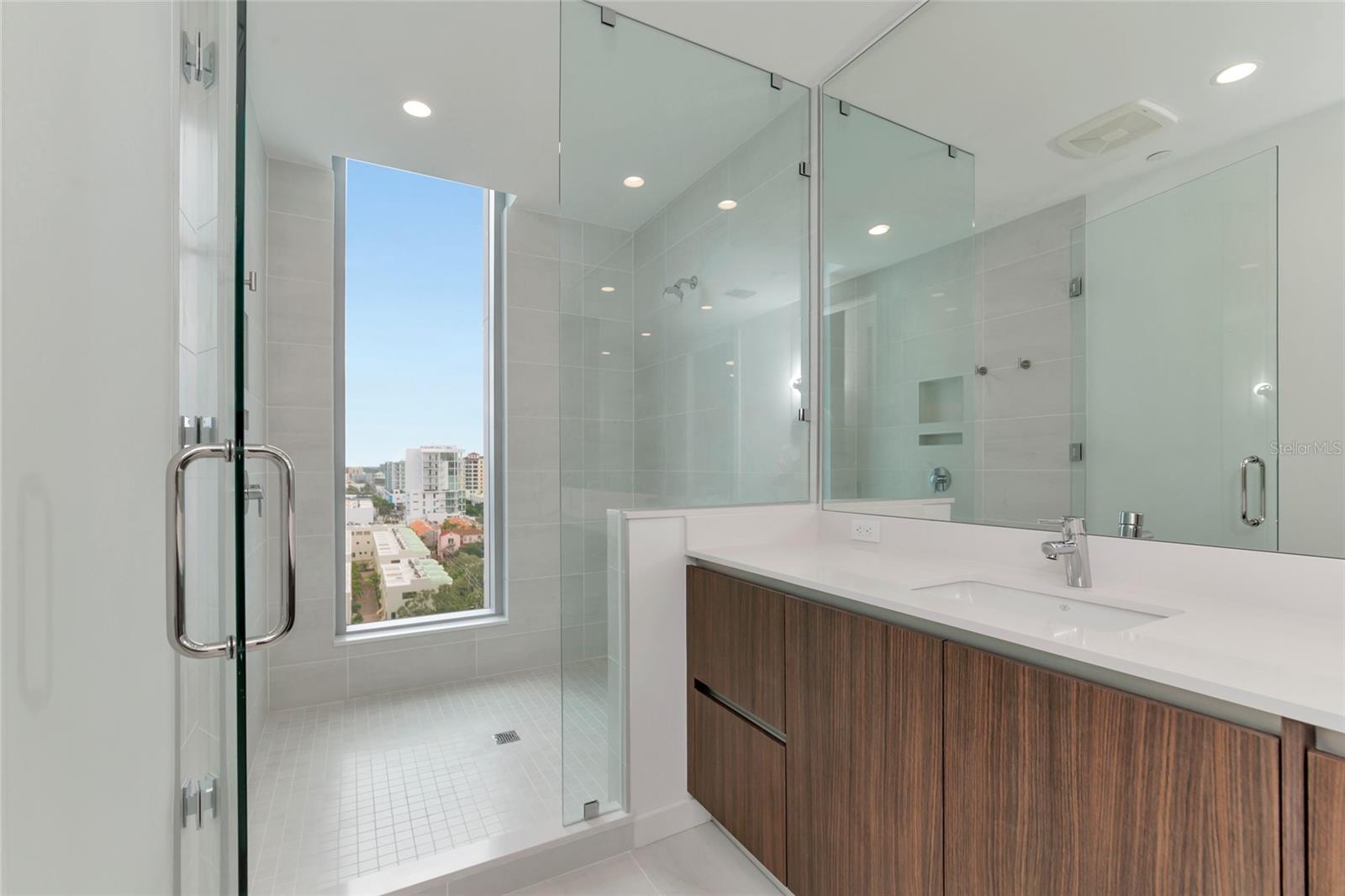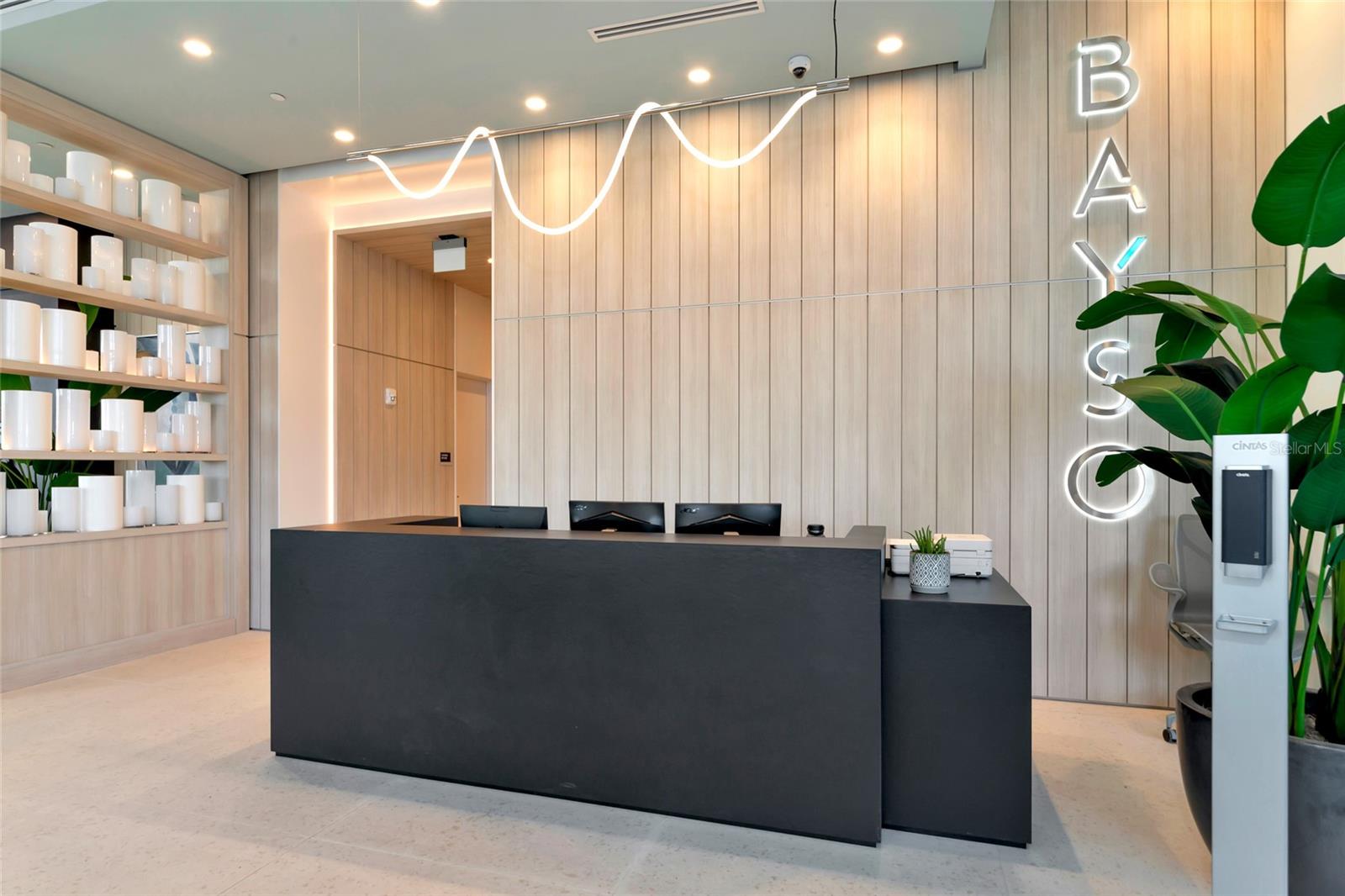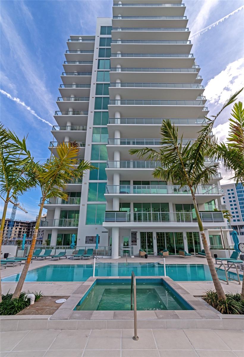 Luxury and amenity rich Bayso is perfectly located in Downtown Sarasota’s Bayfront at the Quay. This unique corner unit with panoramic views of downtown nightlife and Sarasota Bay is highly sought after and comes with two adjacent parking spaces. Featuring 10 ft floor to ceiling glass windows using remote shades the lighting is ever changing. Indoor outdoor living is easy on the two balconies that feature glass see through railings. The main balcony which is shared with the main living area and the guest bedroom is nearly 10x40 and offers city and water views. The private owner’s suite balcony is perfect for morning coffees and a splash of sunrises. Open plan living in this residence makes it easy to entertain from the gourmet custom kitchen which has a large center island. Quartz countertops with Grohe fixtures, Jenn Air premium stainless appliances are paired with European cabinetry from Italkraft that have roll out drawers, spice rack, full pantry and of course a wine cooler. The owner’s ensuite bath is a spa like experience drenched in natural lighting from its glassed shower with window, a large double vanity with Grohe fixtures throughout the bath lead to huge walk in closet. The residence also offers a den/office/media/flex bedroom to allow the owner additional living options throughout the main areas. Bayso residents enjoy unparalleled amenities including a 5th level resort style pool and spa on the pool deck. The sundeck also has entertaining areas with gas grills in an outdoor kitchen complete with a bar and TV’s perfect for your next event. Just step inside and Bayso offers a club room with a bar and kitchen that are awaiting your next party. If you need to work, a co-working space complete with a board room and media lounge area are at your disposal. The lobby is complete with 24/7 front desk attendants, security, on site management and a cozy seating area. A state of the art fitness area with cutting edge equipment and a motion gallery, a private dog park, mail room, secure package storage and secured parking with electrical chargers round out the many amenities offered to the residents. Bayso is a short walk to Marina Jacks, Bay Park and all that Downtown Sarasota has to provide. You are also just minutes away from St Armands Circle, Lido Beach Siesta Key Beach, Longboat Key and SRQ Airport. Highrise living in Downtown Sarasota is highly sought after so schedule your showing today for this opportunity to live the lifestyle you deserve.