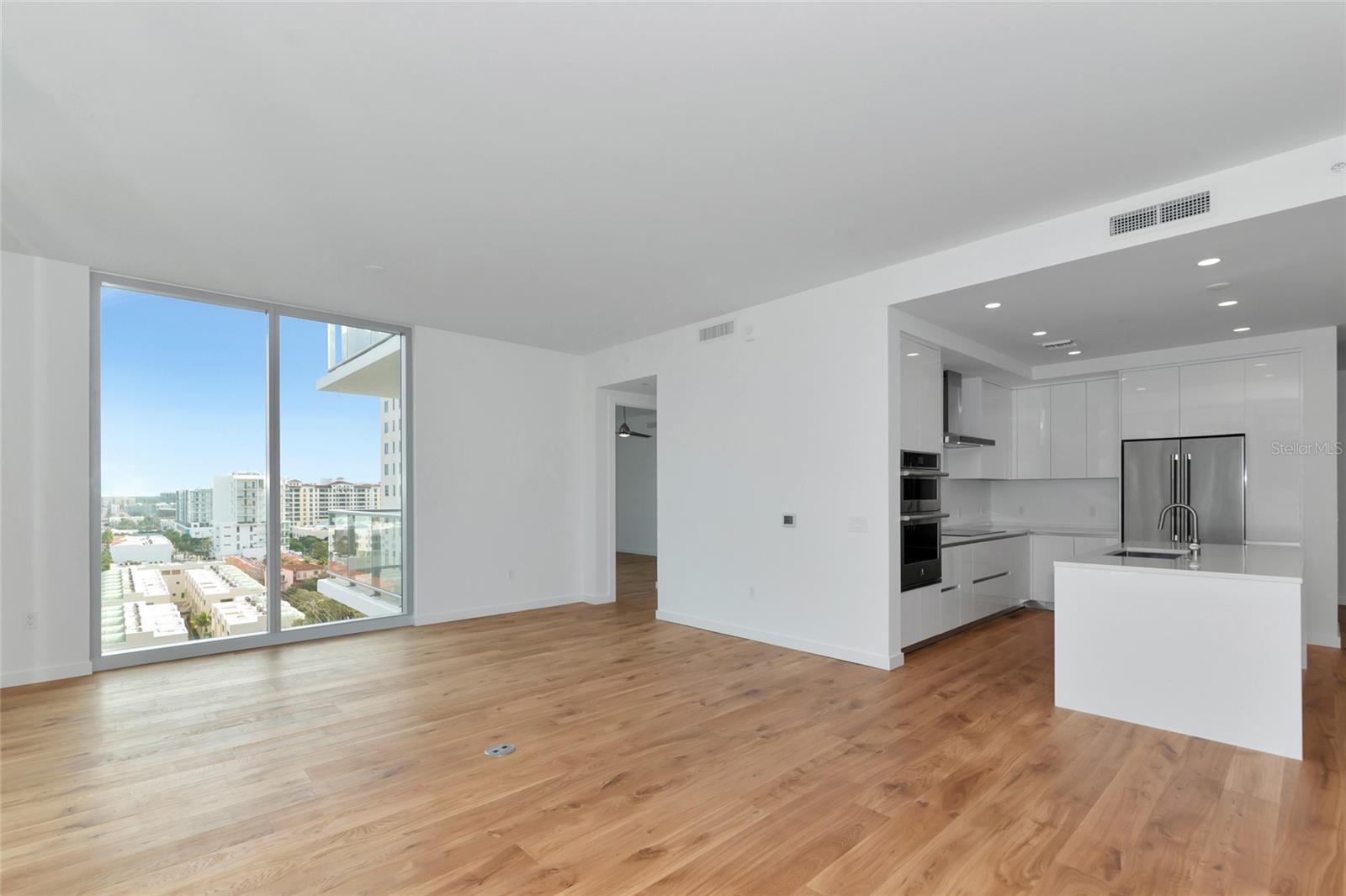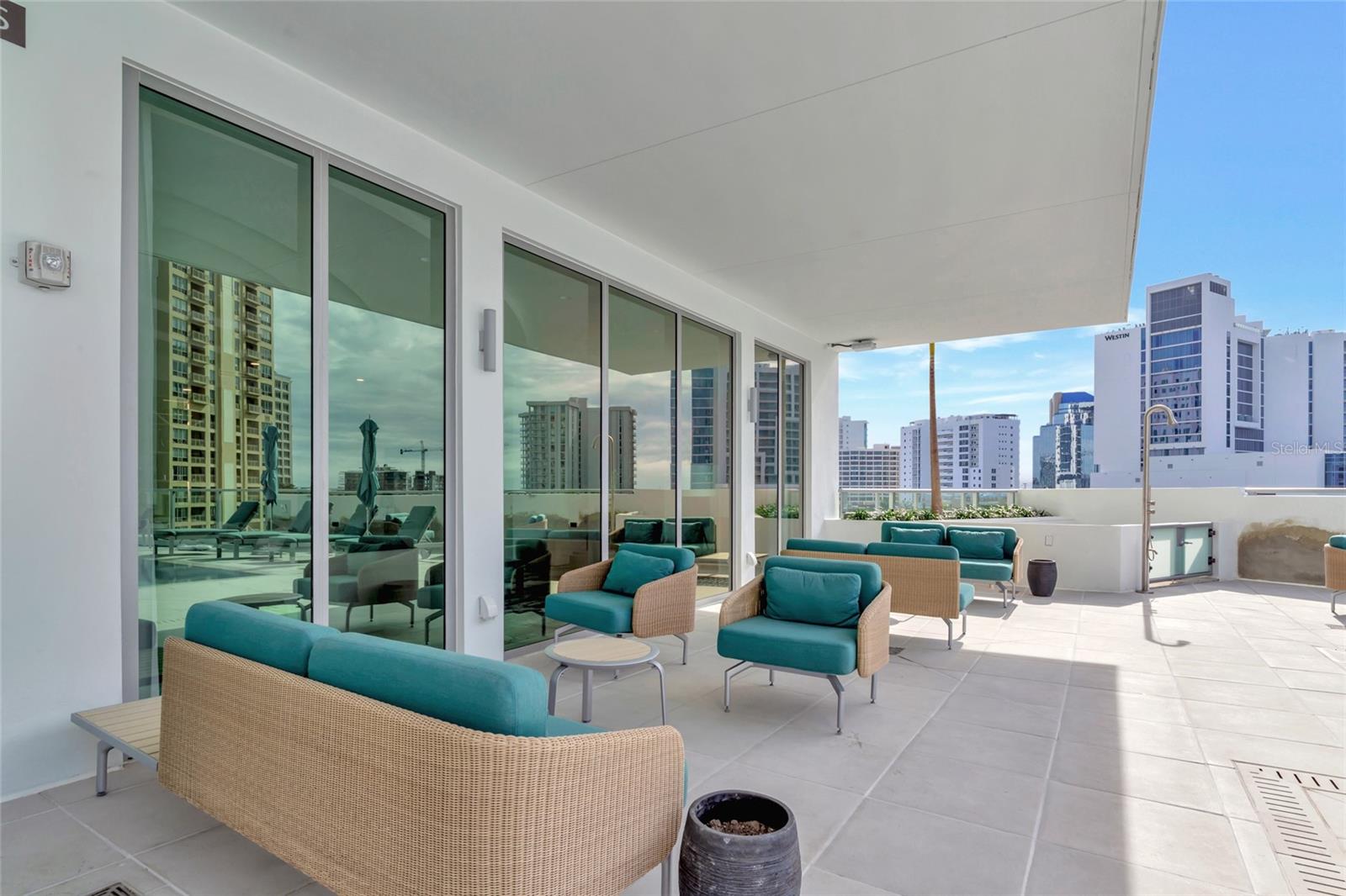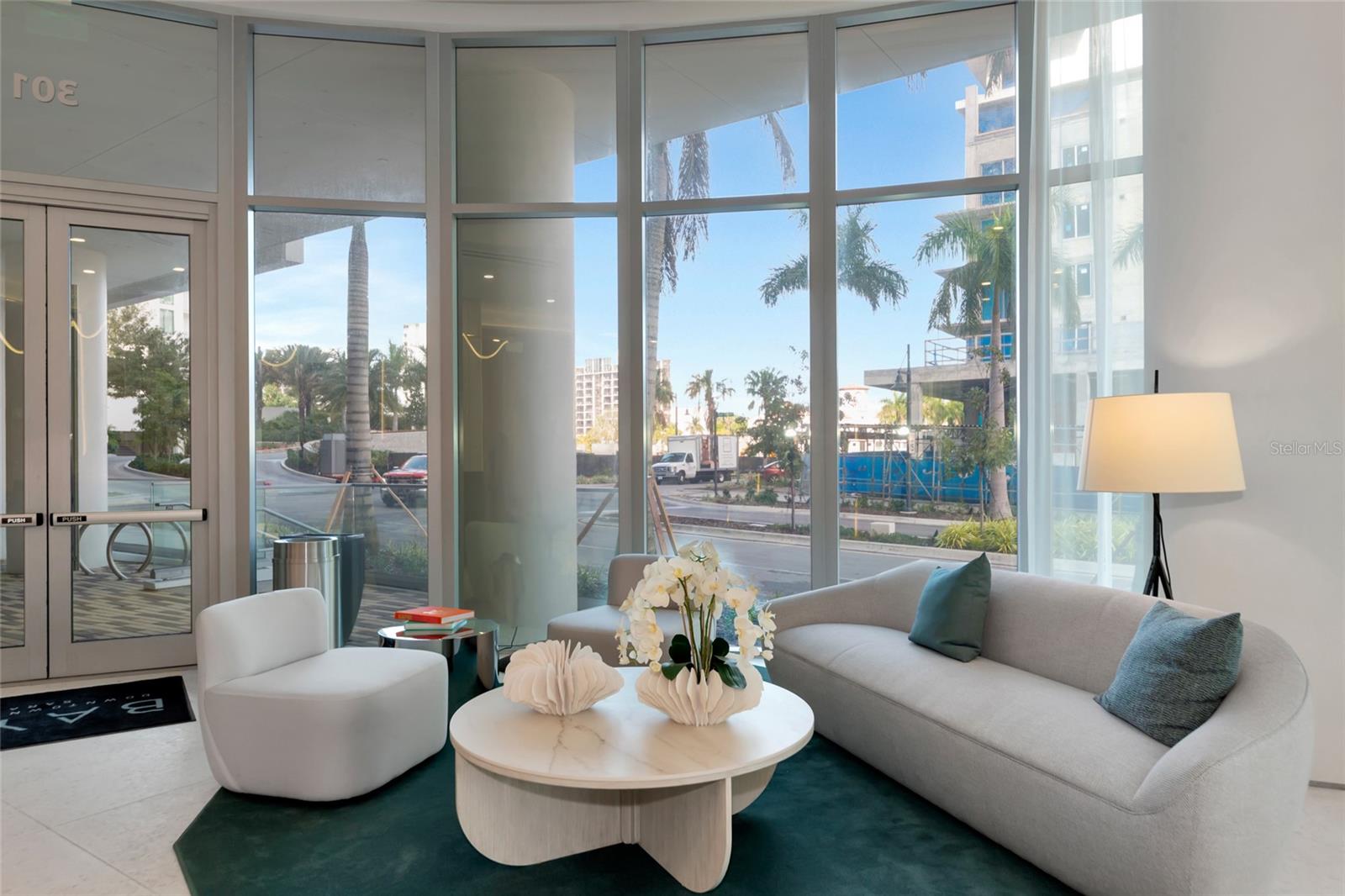 Luxury and amenity rich Bayso is perfectly located in Downtown Sarasota’s Bayfront at the Quay. This unique corner unit with panoramic views of downtown nightlife and Sarasota Bay is highly sought after and comes with two adjacent parking spaces. Featuring 10 ft floor to ceiling glass windows using remote shades the lighting is ever changing. Indoor outdoor living is easy on the two balconies that feature glass see through railings. The main balcony which is shared with the main living area and the guest bedroom is nearly 10x40 and offers city and water views. The private owner’s suite balcony is perfect for morning coffees and a splash of sunrises. Open plan living in this residence makes it easy to entertain from the gourmet custom kitchen which has a large center island. Quartz countertops with Grohe fixtures, Jenn Air premium stainless appliances are paired with European cabinetry from Italkraft that have roll out drawers, spice rack, full pantry and of course a wine cooler. The owner’s ensuite bath is a spa like experience drenched in natural lighting from its glassed shower with window, a large double vanity with Grohe fixtures throughout the bath lead to huge walk in closet. The residence also offers a den/office/media/flex bedroom to allow the owner additional living options throughout the main areas. Bayso residents enjoy unparalleled amenities including a 5th level resort style pool and spa on the pool deck. The sundeck also has entertaining areas with gas grills in an outdoor kitchen complete with a bar and TV’s perfect for your next event. Just step inside and Bayso offers a club room with a bar and kitchen that are awaiting your next party. If you need to work, a co-working space complete with a board room and media lounge area are at your disposal. The lobby is complete with 24/7 front desk attendants, security, on site management and a cozy seating area. A state of the art fitness area with cutting edge equipment and a motion gallery, a private dog park, mail room, secure package storage and secured parking with electrical chargers round out the many amenities offered to the residents. Bayso is a short walk to Marina Jacks, Bay Park and all that Downtown Sarasota has to provide. You are also just minutes away from St Armands Circle, Lido Beach Siesta Key Beach, Longboat Key and SRQ Airport. Highrise living in Downtown Sarasota is highly sought after so schedule your showing today for this opportunity to live the lifestyle you deserve.