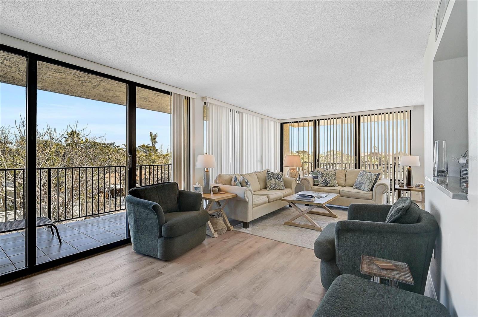 Reduced 20K and Seller Pays Upcoming Assessment! This totally updated 2 bed and 2 bath unit is on the 2nd floor of the West Tower at super well maintained and managed “Our House at The Beach”. The Living room and dining room have an L shape with forty-six feet of sliders that look around nearly 270 degrees. Across the street from what Trip Advisor called the number one beach in the US for 2024 and number 4 in the world, Siesta Key’s vast white sand. Nicely updated with the same gorgeous luxury plank vinyl on all the floors in all the rooms except the baths. The Kitchen is updated with granite and has beautiful stainless appliances. The kitchen features a pass through into living space and is very bright with great views too. A large primary bedroom with lots of windows. Sold totally turnkey, less some owners art and possessions. Two beautifully updated and appointed bathrooms. You’re short steps to all that white sand and you are near all the great shopping, dining and nightlife of Siesta Key village. And this vacation paradise helps pay for itself. It generated almost 33K in gross rental receipts in 2023, 26K in 2024 with the storms and is outlooking 39K plus this year as well. And that’s with owner use too. The complex has a 45K assessment to replace glass with impact etc. and the seller is paying it all. Finding this much value in such a well-kept unit could cost substantially more. Weekly rental means you get more of the year booked if you want it. The complex features 2 tennis courts and a heated pool and a covered pavilion with grilling area. Your own full-size washer and dryer in your unit. Picture yourself and your guests spending the day at the beach etc. and then relaxing on your two huge balconies. It has its own assigned and covered parking spot too! Our House At The Beach is pet friendly - allowing OWNERS one small pet - to 15 lbs. These units rarely become available – the last sale in the West Tower last year was for substantially more.