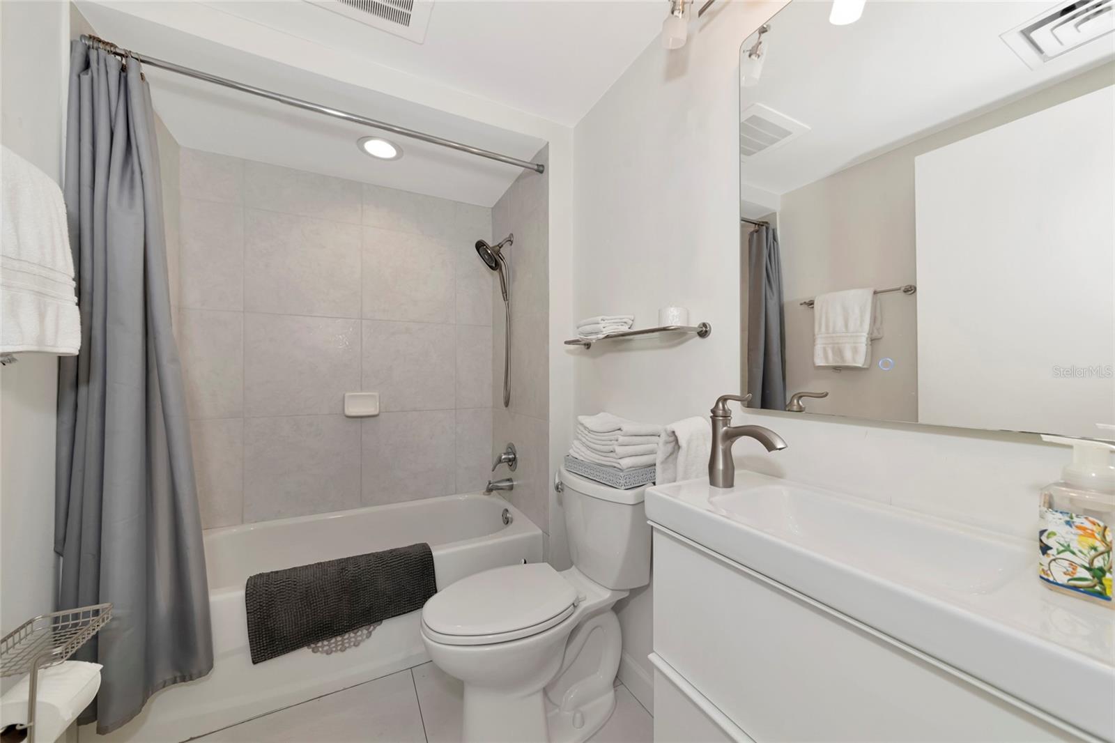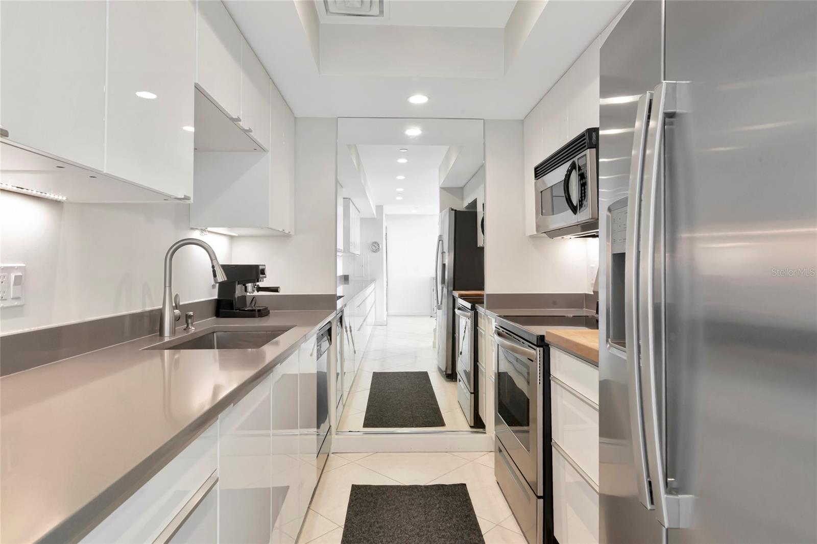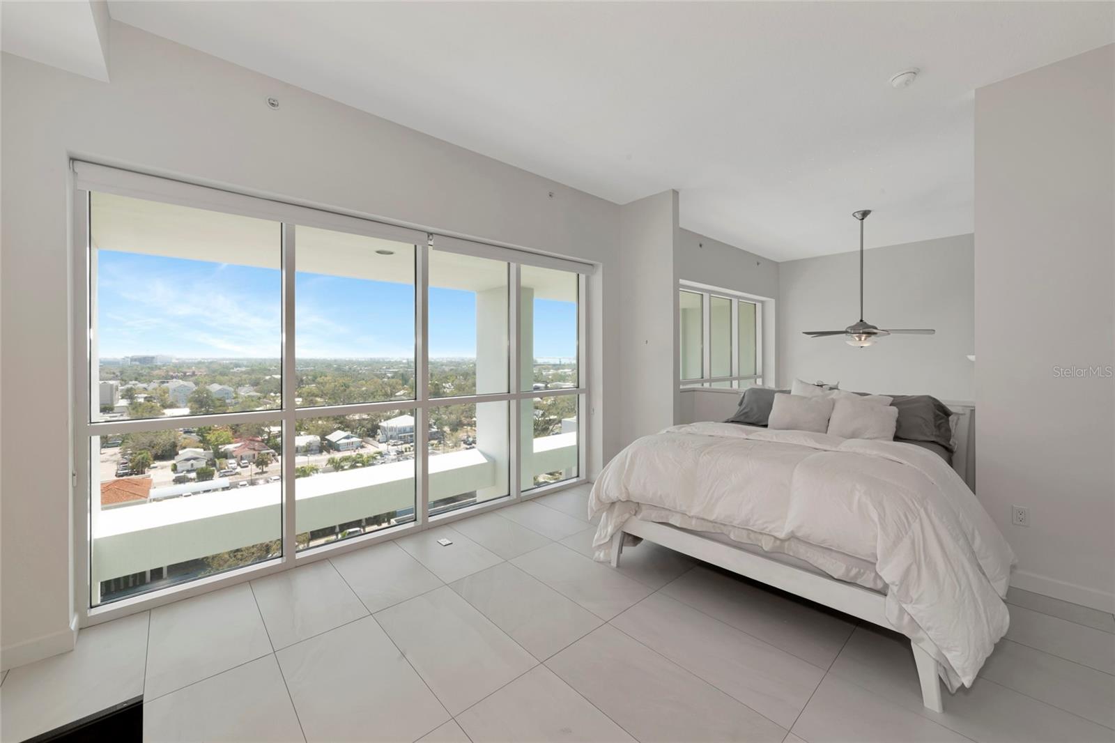 Elegant and contemporary describes this ninth-floor penthouse condominium in the historic district of Sarasota on Main Street. The Cityscape at Courthouse Centre complex has only 19 residential units, was built in 2005 and offers the best value in downtown Sarasota among newer buildings. This stylish contemporary 2 story penthouse has an open floor plan, 2 bedrooms and 2 bathrooms. The master bathroom was renovated in 2018 and can only be described as true luxury. The kitchen was completely remodeled in 2018 and extends contemporary white cabinetry into the open dining area. The living room has a gas fireplace, built in shelving and pocket doors which open and flow into the downstairs bedroom/office or den. Designed with an open floor plan and soaring 20- foot high ceilings, this penthouse condominium has gorgeous views from every room, including a view of Sarasota Bay from the balcony and upstairs bedroom. This exclusive penthouse offers private PH-level elevator access, newly renovated soundproof hallways, and a resident-only community room. The building offers concierge service, assigned parking in the attached parking ramp, and an enclosed climate- controlled storage area. Guest parking is plentiful in the parking garage as well. Restaurants, theaters, shopping and nightlife is right outside your door. If that was not enough, the condominium association is not responsible for any of the building costs. The condominium dues are guaranteed to only rise 3% per year through year 2027 and 2% per year for the next 14 years. No other condominium can provide this guarantee. The Cityscape at Courthouse Center offers the unparalleled lifestyle and convenience of an urban oasis in the heart of Sarasota. And it falls within an Opportunity Zone, offering potential tax advantages for investors.