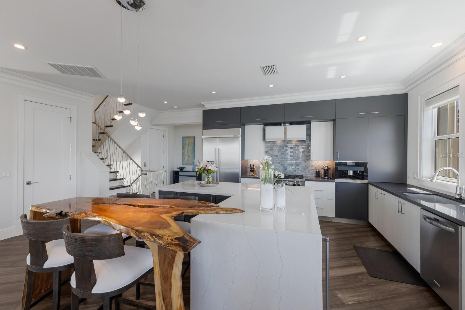 *RARE OPPORTUNITY* Motivated sellers! In fact, they are moving right next door! The sellers are nearing completion of their new home, which was deliberately designed and positioned to preserve the breathtaking Gulf views of this beachfront retreat. Feel the captivating energy of this home from the moment you enter the private gate to the meticulously landscaped grounds, including an award-winning heated saltwater pool with spa jets, a sun shelf, and custom-designed waterfall. Mornings begin with a soft breeze from the Gulf as you take in the magical sunrise from your 4th-floor deck. Retreat at the day’s end to your 3rd-floor lanai to relieve all the day's stresses. You have a front row seat nightly for nature’s most spectacular show. North Shell Road is the ultimate destination to witness Siesta Key’s most enchanting sunsets, where the sky ignites in hues of gold and crimson over Lido Key. The Gulf’s shimmering waters stretch endlessly before you, bathed in the warm glow of dusk, transforming your private retreat into a masterpiece of light and color. The panoramic views from this prestigious North Siesta Key home are simply magnificent. This home charms with its bold contemporary lines and warm, seamless connection to its pristine surroundings. The sophisticated design blends easily with the warmth and energy of the natural light that flows throughout. Quartz, concrete, soapstone, and live-edge designs blend with soft bamboo floors. This one-of-a-kind sanctuary boasts every upgrade you can imagine. 3916 North Shell Road is where ultimate luxury intersects with coastal splendor. Private showings for discriminating buyers are available by appointment. Sellers respectfully request that potential buyers wear the shoe booties provided for showings.