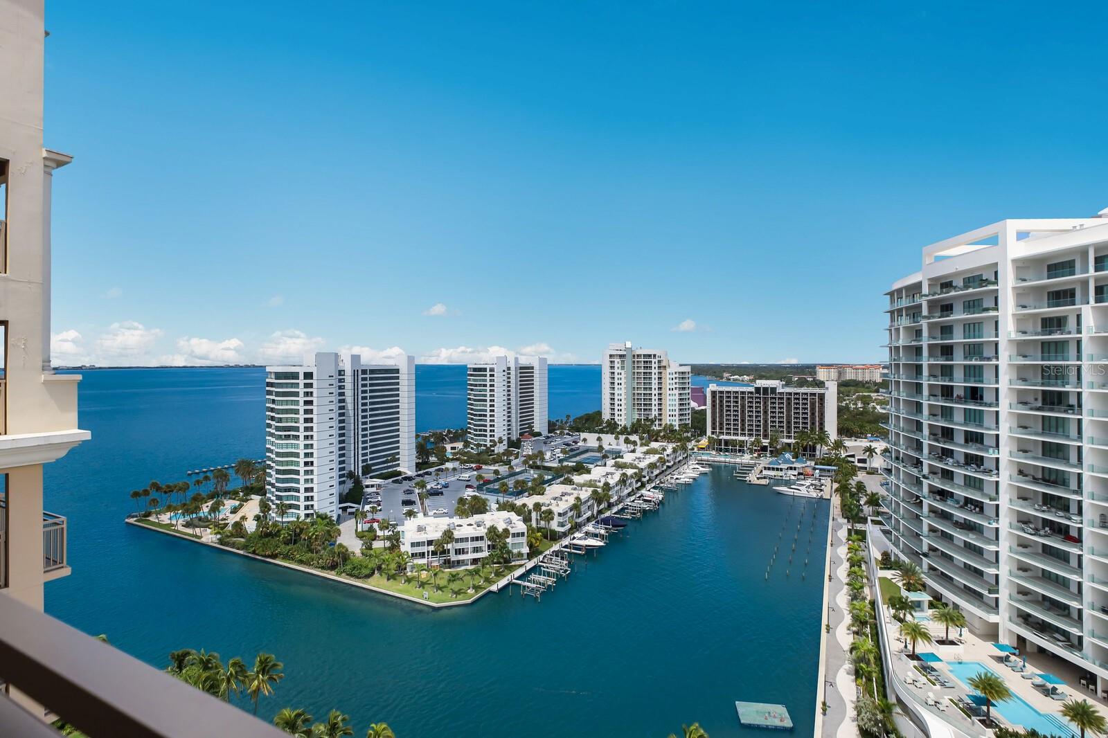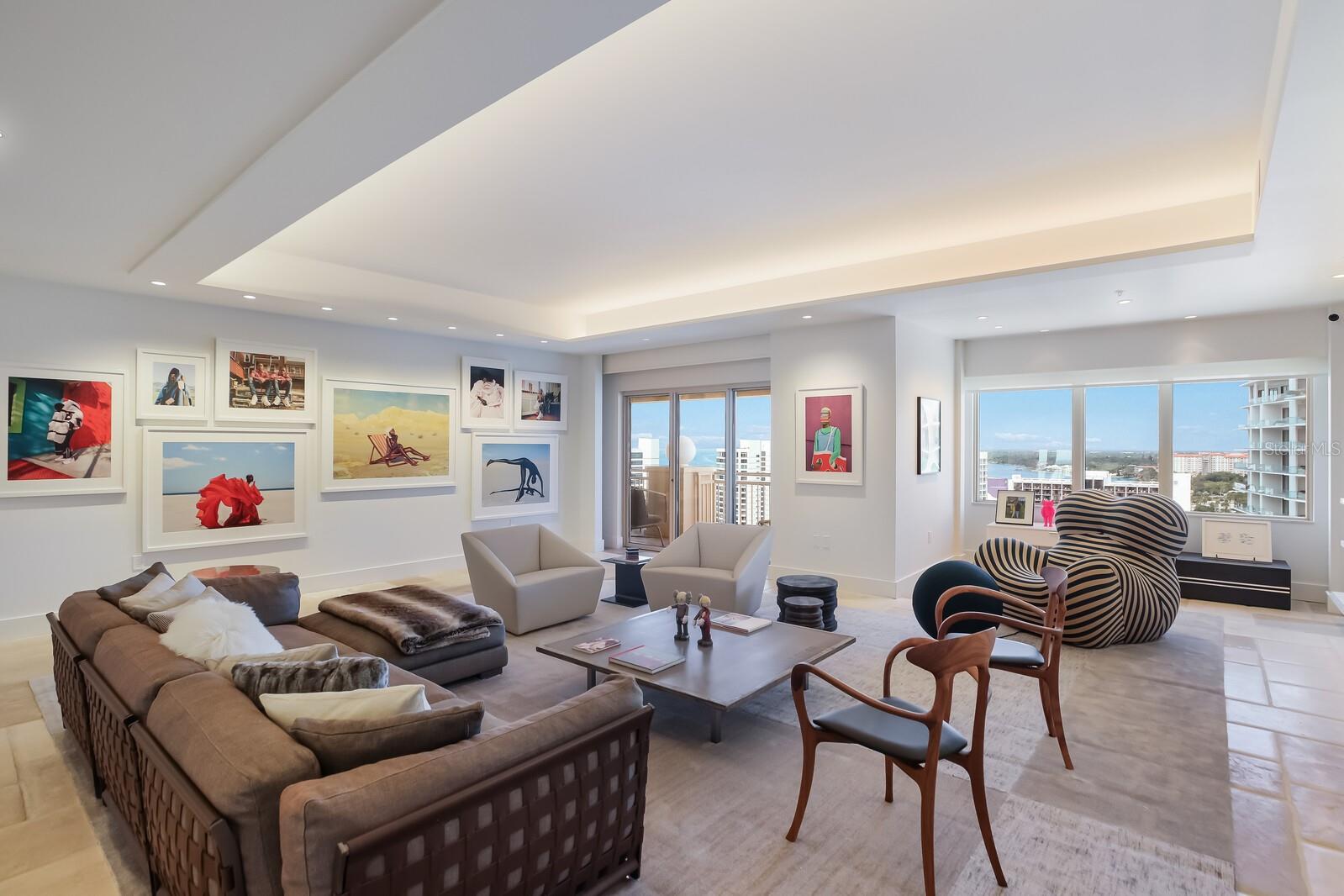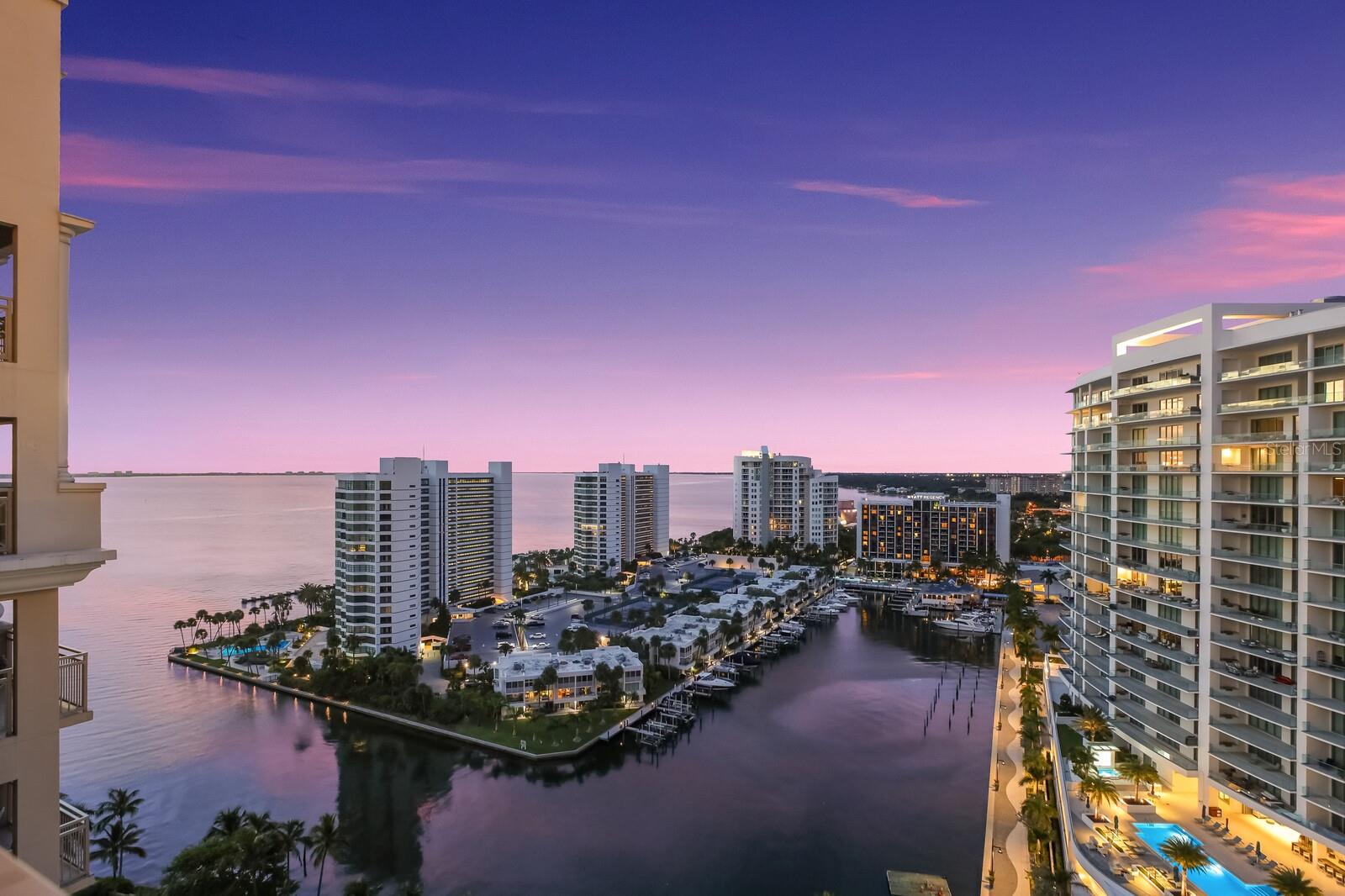 Experience the epitome of luxury living in this completely remodeled 17th-floor penthouse located in Sarasota's crown jewel, The Ritz Carlton Residences. Day and night, you'll enjoy mesmerizing water views, from almost every room. Sarasota Bay, the Quay, Golden Gate Point, and the Gulf of Mexico beyond are all part of the dreamy vistas. This four-bedroom spacious condominium includes 4,943 square feet of exquisitely newly (2021) reimagined spaces that have a sophisticated feel and all of the comforts of home. The signature sense of glamour begins in the dramatic foyer entrance designed to display artwork and opens to unforgettable backdrops for living and entertaining. A dazzling display of modernity, the kitchen boasts state-of-the-art appliances, solid surface countertops, a center island, plenty of storage, and views of the barrier islands. Enjoy dining at any number of spaces - from the casual convenience of the breakfast bar or eat-in kitchen to the peaceful ambiance of the adjacent waterside terrace, or the memorable setting of the sculptural formal dining room. The convenience of ordering a gourmet dinner or morning coffee from Jack Dusty delivered right to your door is something unique to the Ritz Residences. The living room is adorned with a clean-lined tray ceiling complete with indirect lighting, as well as built-ins, and a linear fire feature. The incomparable owner's suite features dual walk-in closets, a sitting area, a private terrace, and an expansive bath with a soaking tub and walk-in steam shower, all washed in natural light. The guest bedrooms are equally impressive, creating comfort for the whole family. The flexibility of a fourth bedroom or large office welcomes remote work or a calm space for daily activities. Other benefits include a full-time concierge, valet parking, security, a resort-style heated pool and spa, state of an art fitness center, water access to Sarasota Bay and onsite gourmet dining. This residence offers the ability to join the Ritz Carlton’s Member’s Club without waiting for forever access to the beach club, championship golf course, specialty events, on-site spa, and more. This location cannot be beaten, connected to the Ritz-Carlton Hotel, perfect for your overflow out-of-town guests. Just a stroll away from the bustling cultural allure of downtown Sarasota, while the world-class shopping, dining, and beaches of Lido Key and St. Armands Circle are just minutes to the west.
