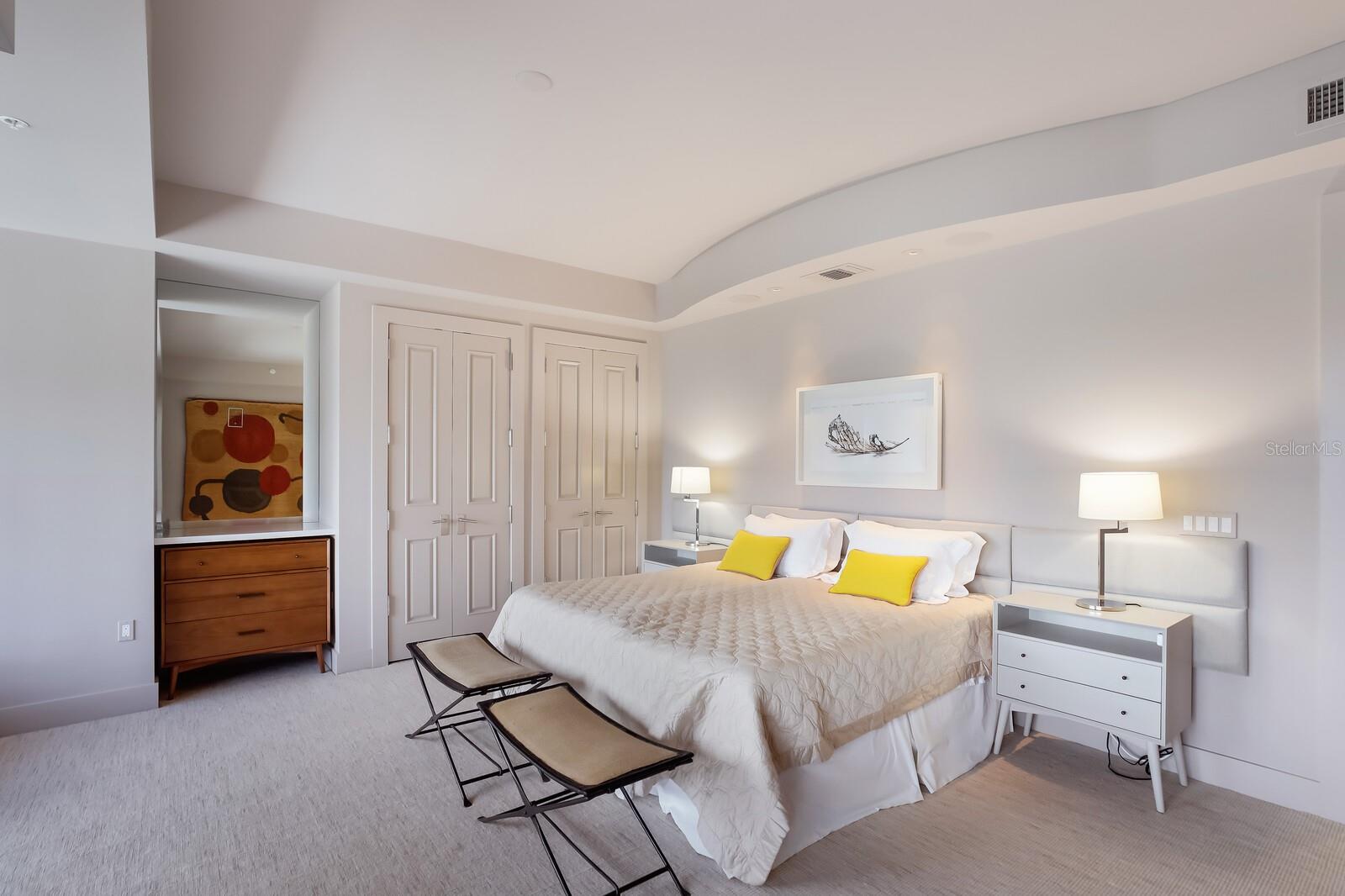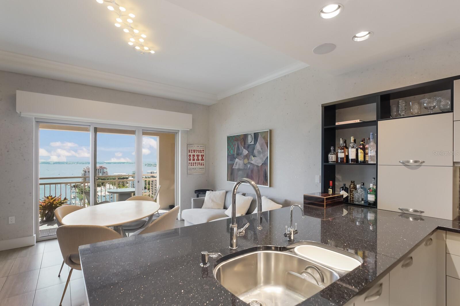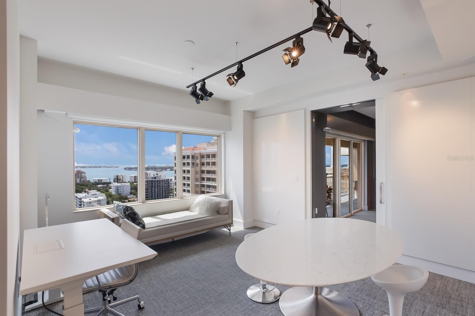 Experience the epitome of luxury living in this completely remodeled 17th-floor penthouse located in Sarasota's crown jewel, The Ritz Carlton Residences. Day and night, you'll enjoy mesmerizing water views, from almost every room. Sarasota Bay, the Quay, Golden Gate Point, and the Gulf of Mexico beyond are all part of the dreamy vistas. This four-bedroom spacious condominium includes 4,943 square feet of exquisitely newly (2021) reimagined spaces that have a sophisticated feel and all of the comforts of home. The signature sense of glamour begins in the dramatic foyer entrance designed to display artwork and opens to unforgettable backdrops for living and entertaining. A dazzling display of modernity, the kitchen boasts state-of-the-art appliances, solid surface countertops, a center island, plenty of storage, and views of the barrier islands. Enjoy dining at any number of spaces - from the casual convenience of the breakfast bar or eat-in kitchen to the peaceful ambiance of the adjacent waterside terrace, or the memorable setting of the sculptural formal dining room. The convenience of ordering a gourmet dinner or morning coffee from Jack Dusty delivered right to your door is something unique to the Ritz Residences. The living room is adorned with a clean-lined tray ceiling complete with indirect lighting, as well as built-ins, and a linear fire feature. The incomparable owner's suite features dual walk-in closets, a sitting area, a private terrace, and an expansive bath with a soaking tub and walk-in steam shower, all washed in natural light. The guest bedrooms are equally impressive, creating comfort for the whole family. The flexibility of a fourth bedroom or large office welcomes remote work or a calm space for daily activities. Other benefits include a full-time concierge, valet parking, security, a resort-style heated pool and spa, state of an art fitness center, water access to Sarasota Bay and onsite gourmet dining. This residence offers the ability to join the Ritz Carlton’s Member’s Club without waiting for forever access to the beach club, championship golf course, specialty events, on-site spa, and more. This location cannot be beaten, connected to the Ritz-Carlton Hotel, perfect for your overflow out-of-town guests. Just a stroll away from the bustling cultural allure of downtown Sarasota, while the world-class shopping, dining, and beaches of Lido Key and St. Armands Circle are just minutes to the west.