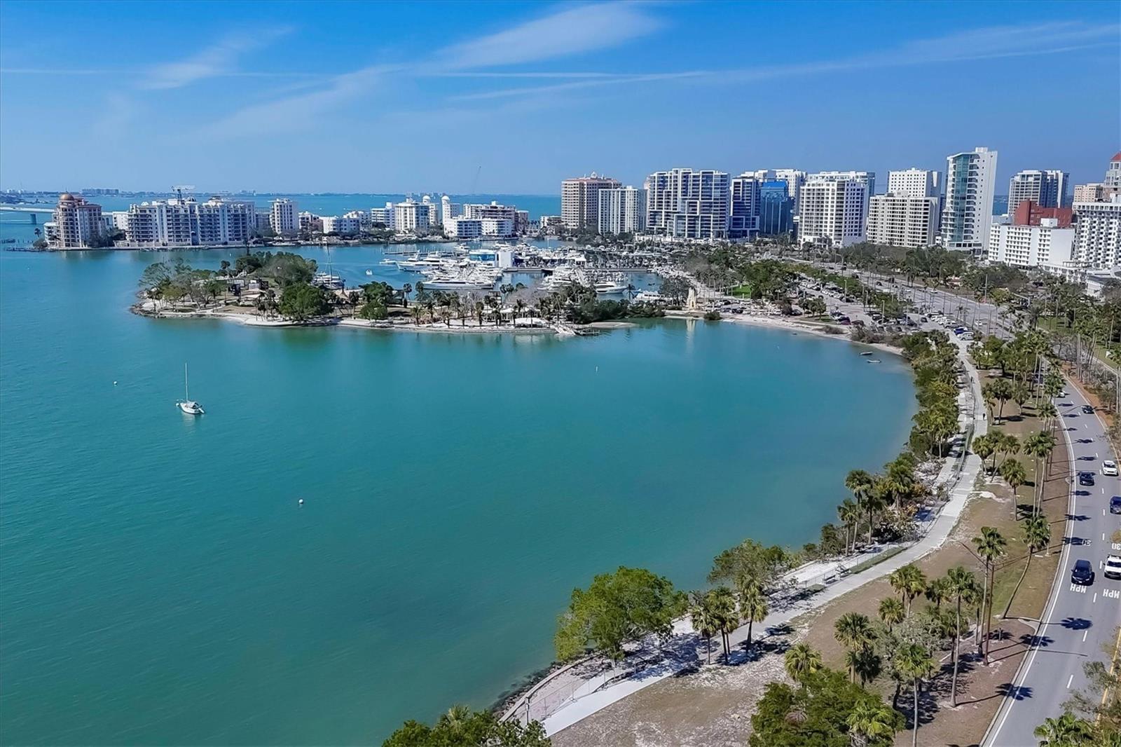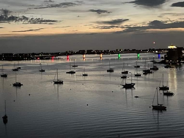 Discover the pinnacle of downtown Sarasota living in this impeccably maintained two-bedroom, two-bathroom turnkey furnished condo in Embassy House. Boasting breathtaking panoramic views of Sarasota Bay, the Ringling Bridge, and Bayfront Park, this residence offers an unparalleled lifestyle in one of the city’s most coveted locations. A semi-private elevator, shared with just one other resident, whisks you to the second floor, where an abundance of natural light welcomes you into the home. The open concept living area features expansive sliding windows, creating an inviting space that exudes elegance and warmth, ideal for both entertaining and everyday living. The stylish and functional kitchen and dining rooms are complete with crisp white cabinetry, stainless steel appliances, and a breakfast bar— an ideal space for taking in breathtaking Bay sunsets. The owner’s suite is a private retreat, featuring two closets with built-in storage and an en-suite bathroom with a tiled shower, tub and vanity. Both the owner’s suite and the secondary bedroom open to an oversized lanai, perfect for enjoying Sarasota’s vibrant cityscape. The second bedroom and bathroom offer guests a private and comfortable space to unwind. Additional storage is plentiful, including a dedicated closet off the living area for additional belongings. This residence showcases stunning bay views from the living, dining, and kitchen areas, while the bedrooms offer captivating city views. Embassy House has transformed its first-floor common areas, seamlessly blending modern updates with the building’s iconic mid-century modern architecture. The renovation, expertly completed by the renowned West Coast firm Sweet Sparkman, brings a fresh, sophisticated appeal to the space. Residents enjoy an array of premium amenities, including a saltwater swimming pool, fully equipped gym, car wash area, catering kitchen, herb garden, and outdoor grilling area. For effortless maintenance, quarterly condo fees cover the HVAC for the unit, washer/dryer, security, cable/internet, and water/sewer/trash. A brand-new roof, installed in February 2024, provides added peace of mind. Additional conveniences include on-site management, concierge, bike storage, an EV charging station, and an assigned covered parking space. Step outside Embassy House, and Sarasota’s finest offerings are at your doorstep. Palm Avenue’s Gallery Row, fine dining, antique shops, and luxury salons are just moments away. This location is truly unrivaled with world-class beaches, Marie Selby Botanical Gardens and all the culture and entertainment of downtown Sarasota just minutes away. This exceptional condo offers the perfect blend of luxury, location, and lifestyle. Schedule your private showing today!
