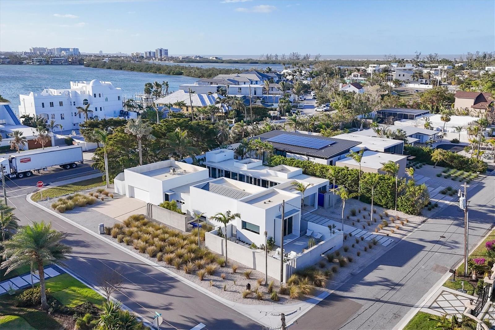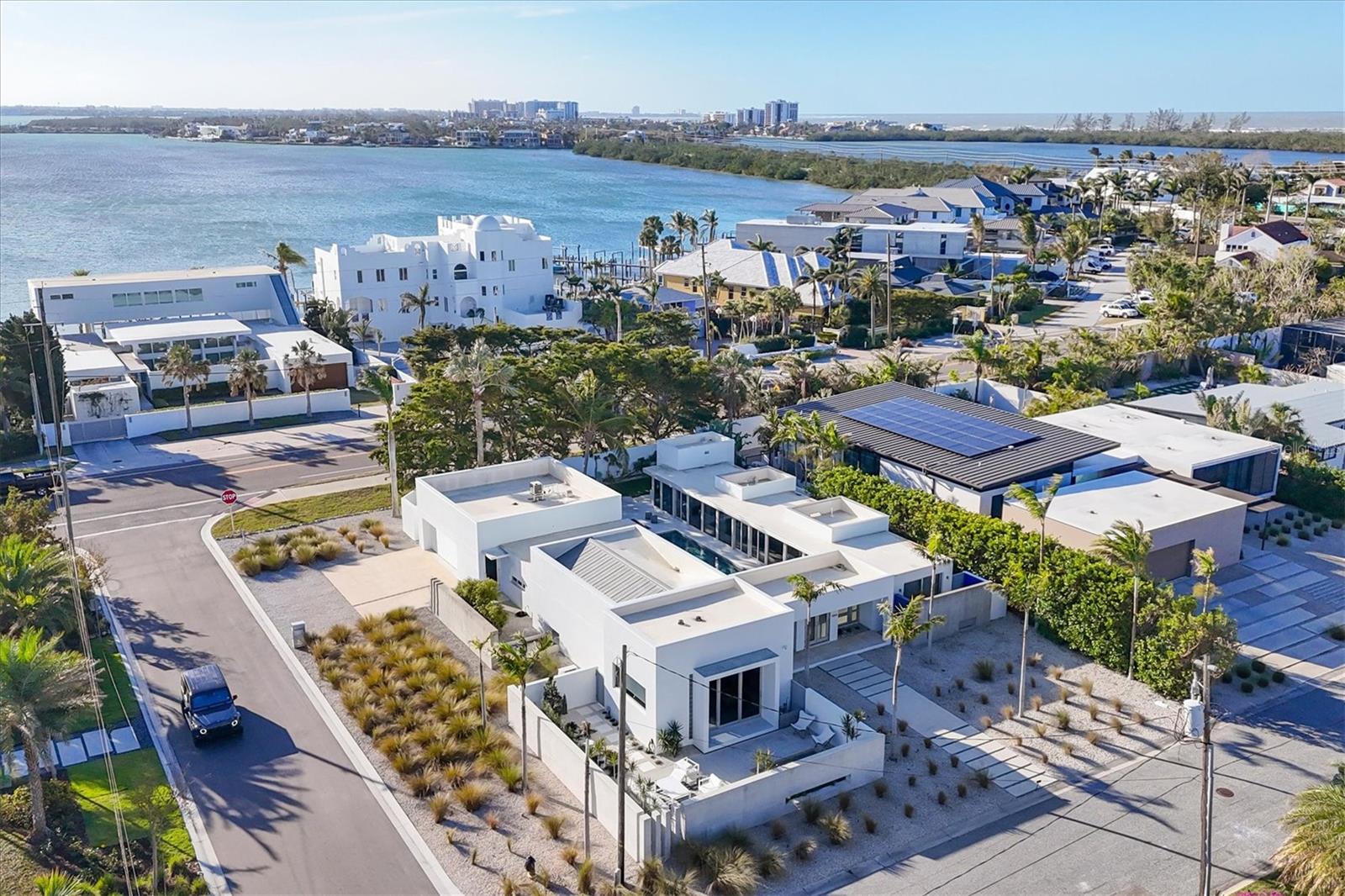 In the exclusive Lido Shores neighborhood, a community renowned for its architectural significance, this striking modern home stands as a testament to the visionary work of renowned architect Guy Peterson. Defined by clean lines, open spaces, and modern coastal tranquility, the residence embodies the essence of Sarasota’s contemporary aesthetic while offering an atmosphere of refined luxury. Floor-to-ceiling windows and doors create an airy, light-filled environment, blurring the lines between indoors and out. A thoughtful transformation in 2022 introduced a new dining area, a family room that doubles as a library, a dedicated laundry space and additional storage, all designed to enhance the home’s functionality without compromising its sleek, minimalist appeal. A newly enclosed garden and an updated pool area further elevate the outdoor experience, where lush landscaping and carefully curated spaces provide a sense of retreat. Beyond the walls, three distinct outdoor areas unfold, each offering its interpretation of serenity. A front courtyard, framed by a tranquil water feature and a Japanese-inspired garden, sets a meditative tone upon arrival. At the heart of the home, a lap pool and heated spa serve as the focal point of the central courtyard, where a Wolf outdoor grill and ample lounge space invite effortless entertaining. The third outdoor retreat, privately accessed from the primary suite, offers a secluded escape, reinforcing the home’s thoughtful approach to privacy and relaxation. The living spaces are defined by an understated elegance, where natural light and architectural precision take center stage. The open-concept design seamlessly integrates the main living area, dining space, and gourmet kitchen, which is appointed with top-tier Wolf and Sub-Zero appliances white quartz countertops and custom maple cabinetry. The primary suite, overlooking the inner courtyard, features a custom-designed closet system and private access to a serene outdoor seating area, creating a personal sanctuary within an exceptional home. Set within a community that grants its residents exclusive access to a private stretch of gulf-front beach, this residence is more than a home, it is an architectural statement, a retreat of contemporary sophistication and a rare opportunity to own a piece of Sarasota’s architectural legacy.