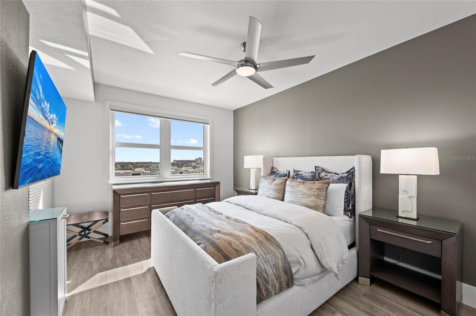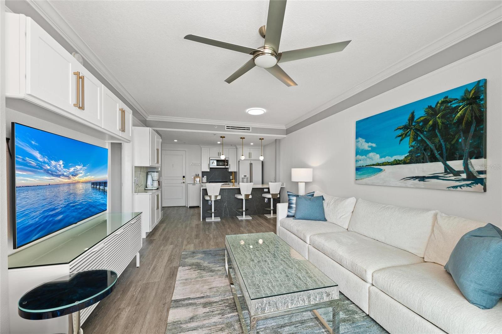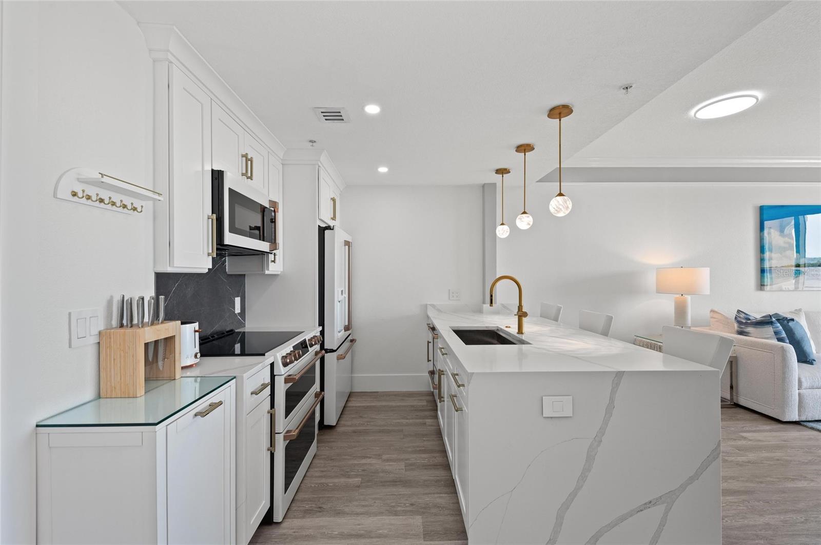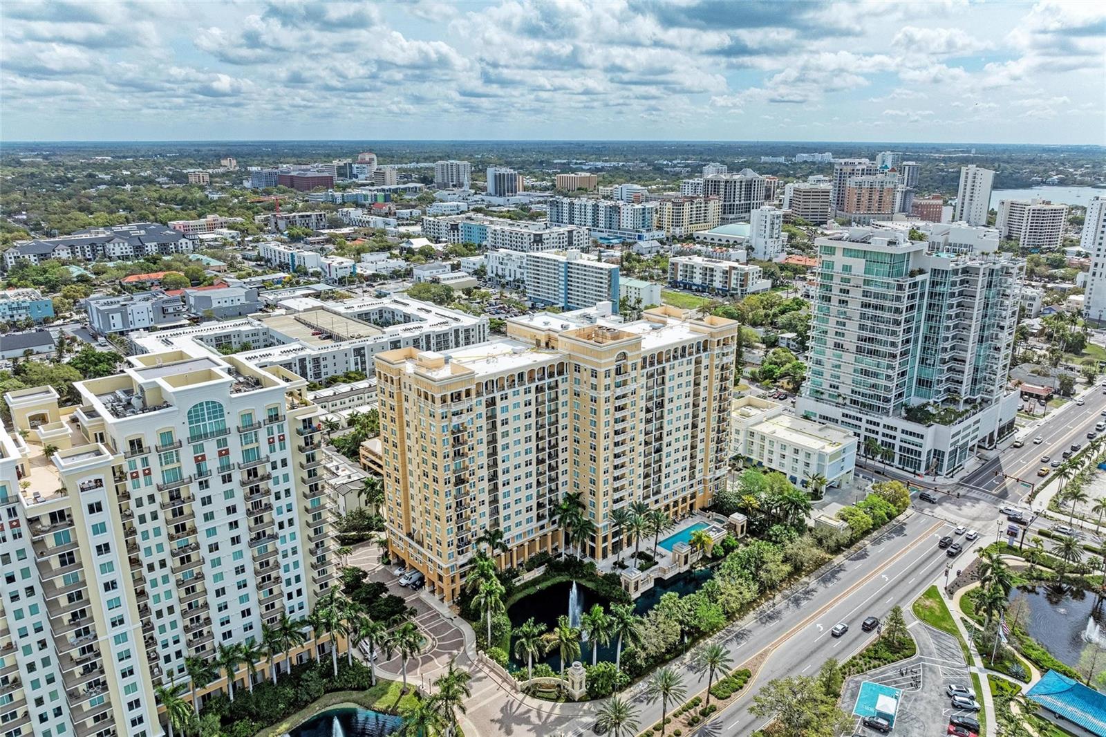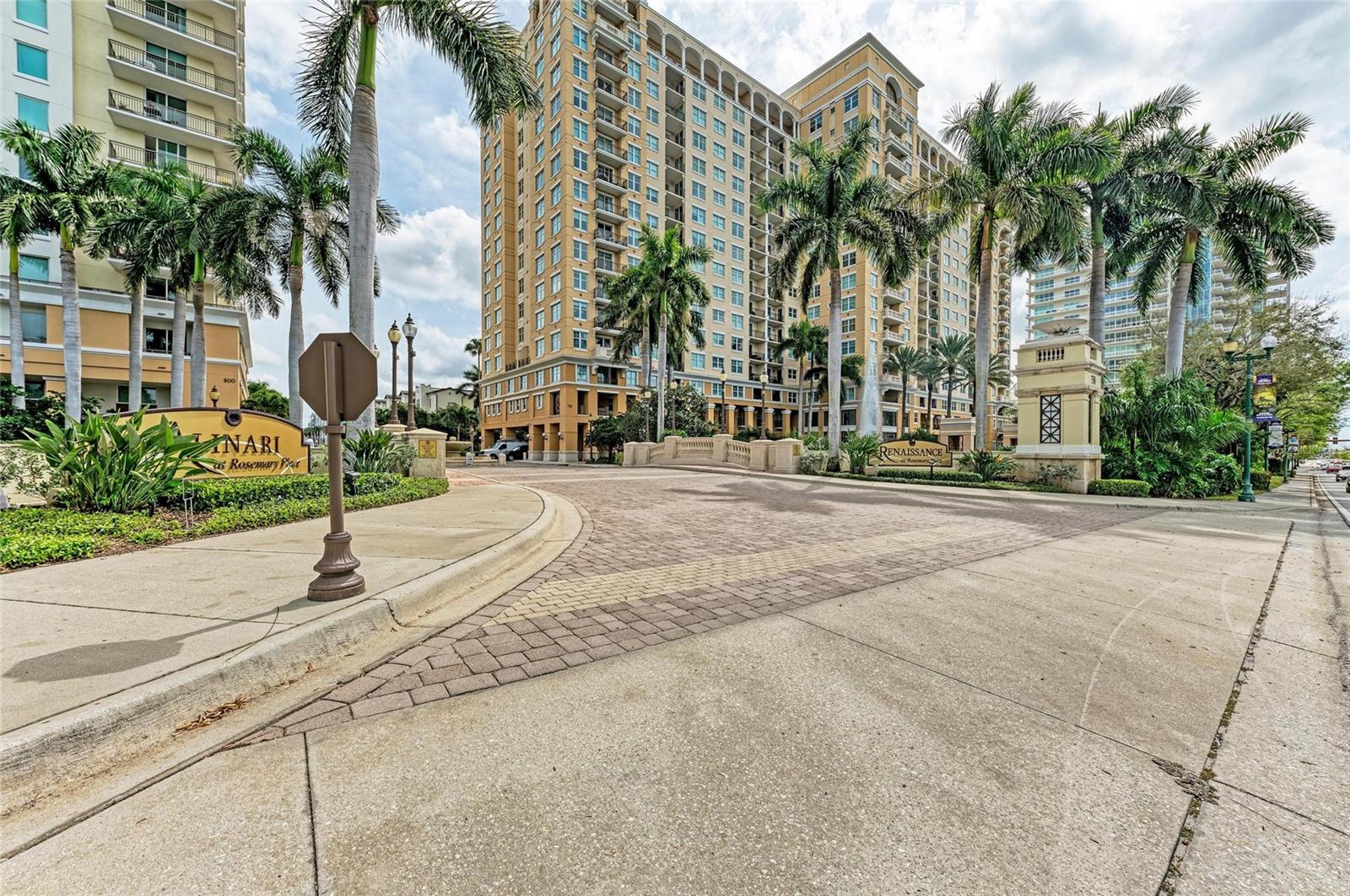 THREE COVERED GARAGE PARKING SPACES. Luxury and elegance come together in this fully remodeled, turnkey-furnished 1-bedroom, 1-bath condo in the prestigious Renaissance at Rosemarie Place. Every inch of this stunning residence has been thoughtfully redesigned, offering a seamless blend of sophisticated style and modern convenience. Step inside to find a bright, open living space adorned with hand-selected Robb Stucky furnishings, creating an inviting yet refined atmosphere. The gourmet kitchen is a chef’s dream, featuring GE Café matte white appliances with gold accents, exquisite finishes, and top-of-the-line details. Every comfort has been considered, from the Williams Sonoma and Pottery Barn linens and kitchenware to the luxurious spa-inspired bath. A new washer and dryer, along with an additional refrigerator in the laundry room, add to the effortless livability of this home. Beyond the condo’s impeccable interior, convenience is unmatched. The unit includes three premium parking spaces—two side-by-side penthouse-level spots just steps from the elevator and an oversized first-floor space, along with an oversized secured penthouse storage unit. Living at the Renaissance at Rosemarie Place means enjoying resort-style amenities, including a 70-foot heated pool, fitness center, theater room, business center, and 24-hour security. Nestled just steps from downtown’s vibrant shopping, dining, and cultural attractions and only a short drive to Lido Beach and Siesta Key Beach, this exceptional home offers the perfect balance of city energy and coastal tranquility. Move right in and start living the luxury lifestyle today.