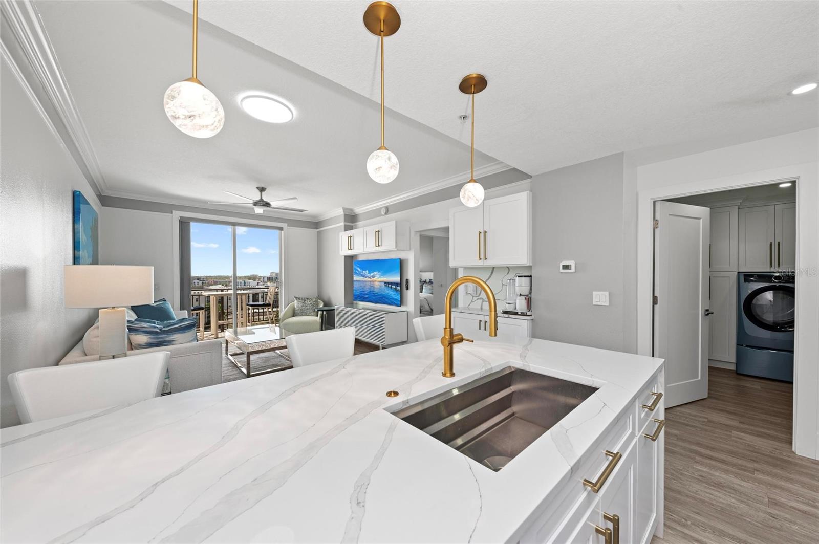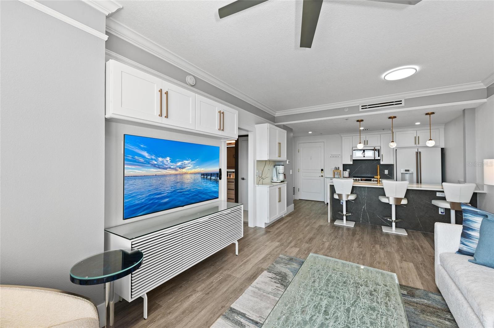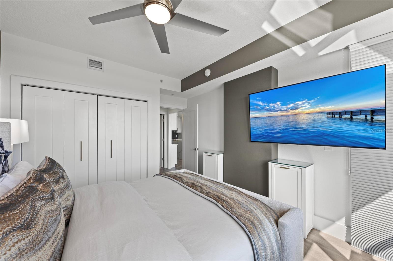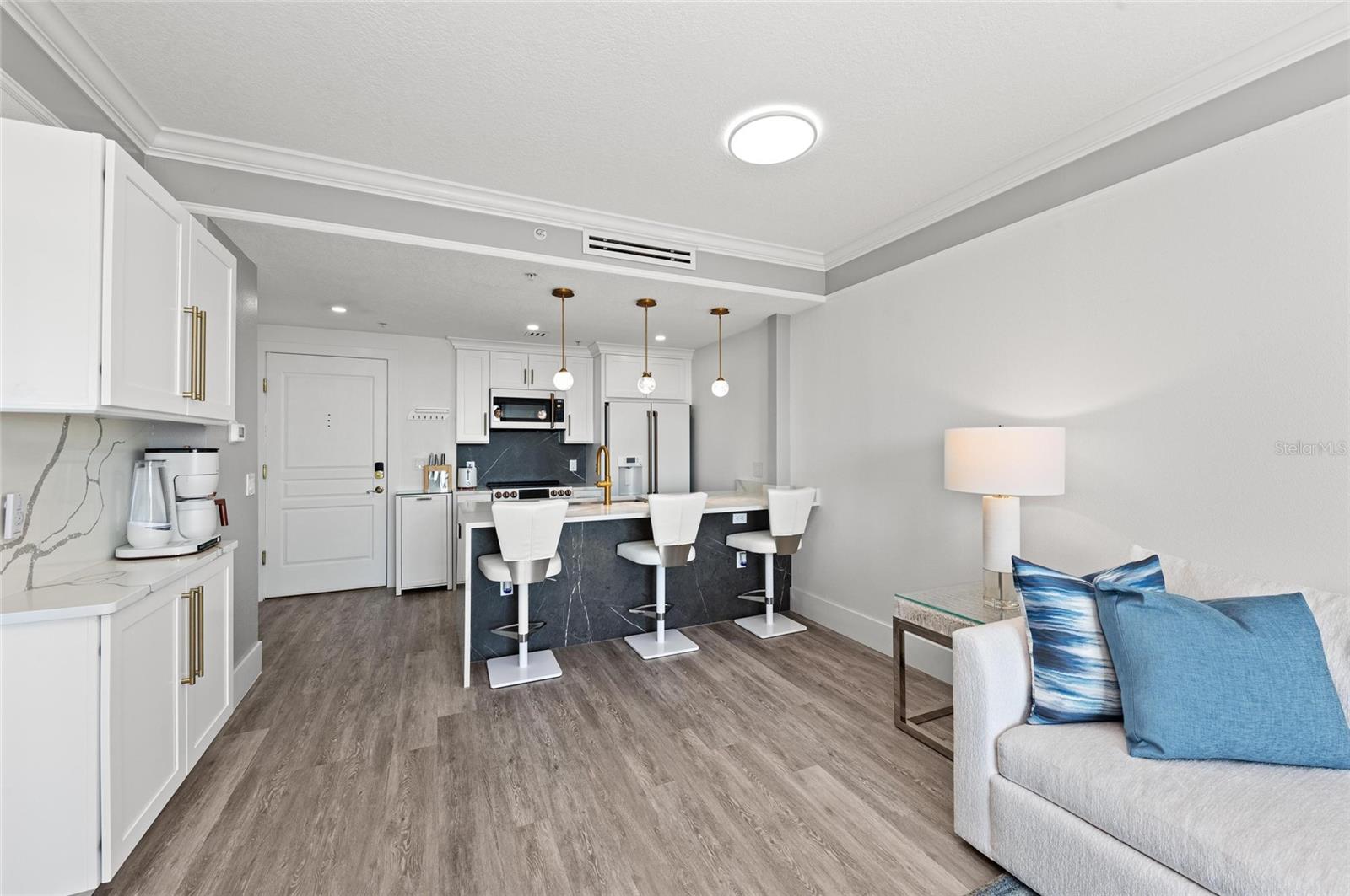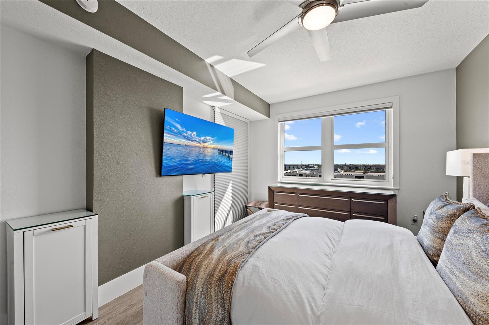 THREE COVERED GARAGE PARKING SPACES. Luxury and elegance come together in this fully remodeled, turnkey-furnished 1-bedroom, 1-bath condo in the prestigious Renaissance at Rosemarie Place. Every inch of this stunning residence has been thoughtfully redesigned, offering a seamless blend of sophisticated style and modern convenience. Step inside to find a bright, open living space adorned with hand-selected Robb Stucky furnishings, creating an inviting yet refined atmosphere. The gourmet kitchen is a chef’s dream, featuring GE Café matte white appliances with gold accents, exquisite finishes, and top-of-the-line details. Every comfort has been considered, from the Williams Sonoma and Pottery Barn linens and kitchenware to the luxurious spa-inspired bath. A new washer and dryer, along with an additional refrigerator in the laundry room, add to the effortless livability of this home. Beyond the condo’s impeccable interior, convenience is unmatched. The unit includes three premium parking spaces—two side-by-side penthouse-level spots just steps from the elevator and an oversized first-floor space, along with an oversized secured penthouse storage unit. Living at the Renaissance at Rosemarie Place means enjoying resort-style amenities, including a 70-foot heated pool, fitness center, theater room, business center, and 24-hour security. Nestled just steps from downtown’s vibrant shopping, dining, and cultural attractions and only a short drive to Lido Beach and Siesta Key Beach, this exceptional home offers the perfect balance of city energy and coastal tranquility. Move right in and start living the luxury lifestyle today.