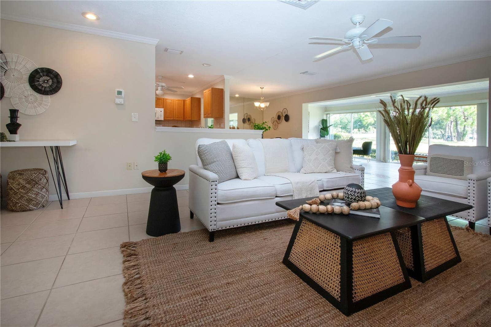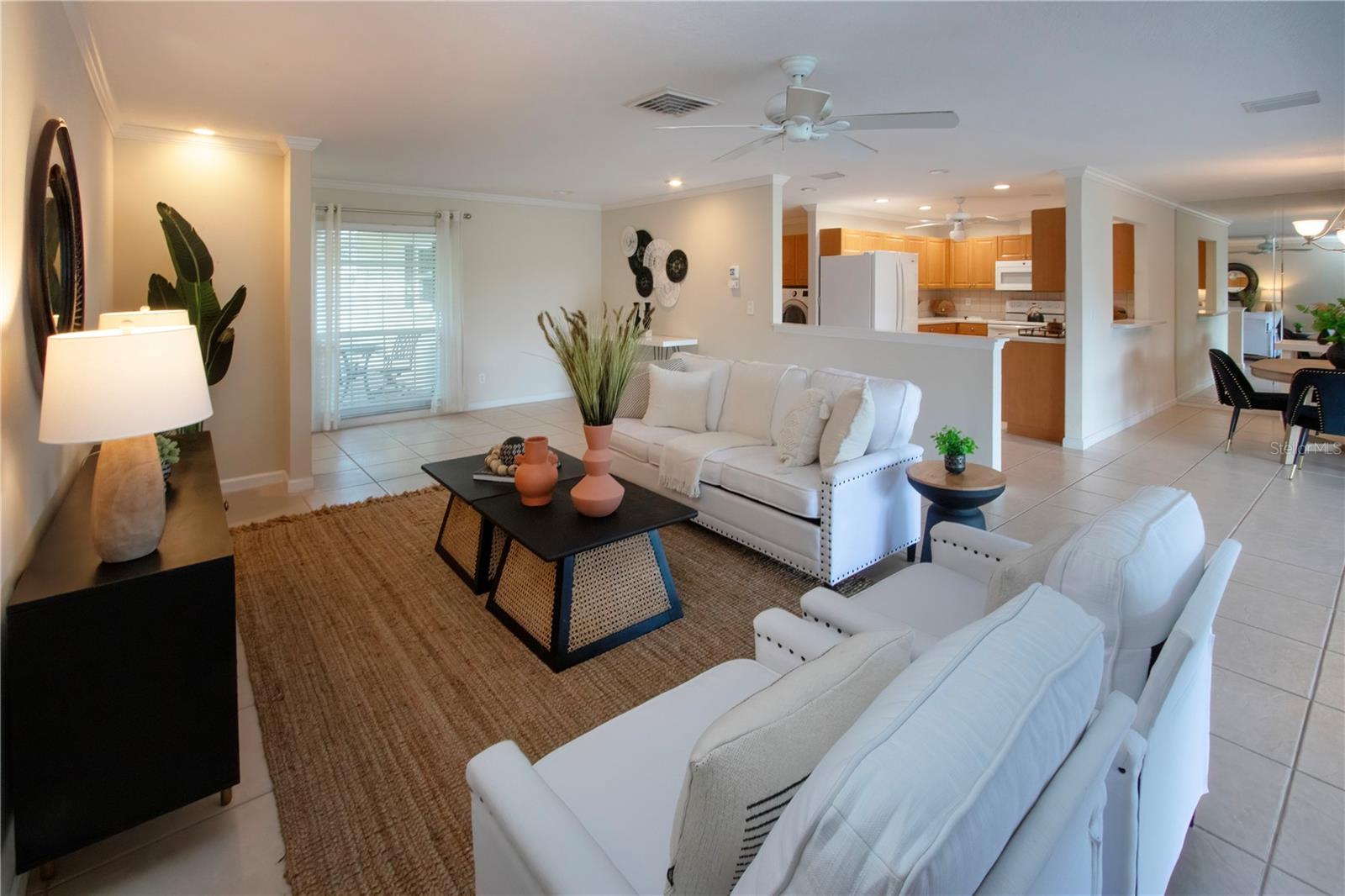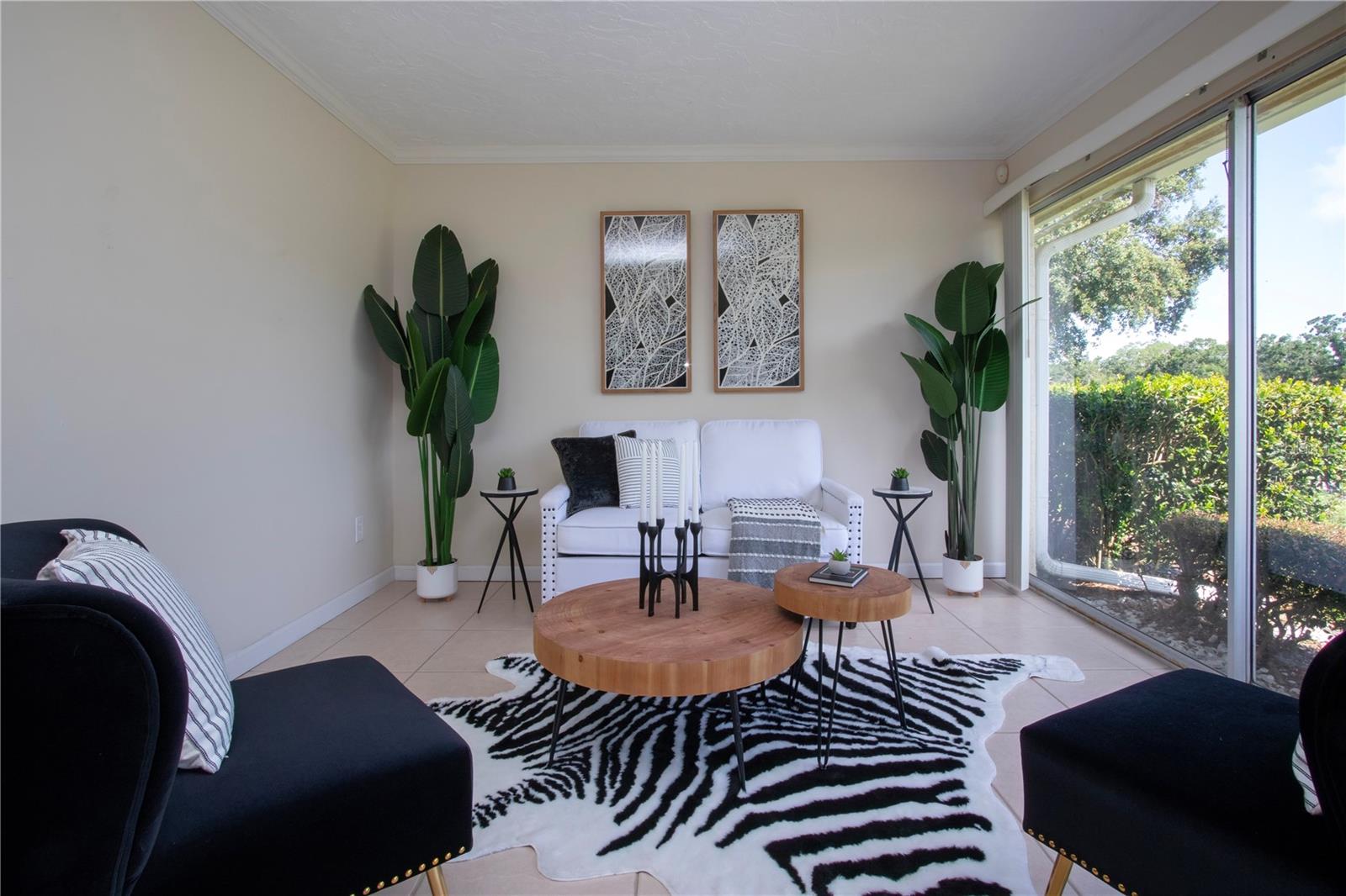 One or more photo(s) has been virtually staged. Offer pending, backup offers accepted. The ultimate in carefree Florida living. All the comfort of a single family home with no work for you when you own this easy care main floor condo. No step down to spacious 30x12 air-conditioned Florida room with expansive view of Palm Aire golf course, no backyard neighbors, just peaceful views. HOA fee includes exterior, including roof replacement, exterior paint and exterior insurance. Ground maintenance is also included Community pool is just a few steps away. Open floorplan with neutral tile and colors so decorating is a breeze. Roomy, yet efficient kitchen with newer appliances, solid surface counters. Convenient indoor laundry. Spacious primary bedroom has a wall of closets plus a walk-in closet with shelves for shoes or other items.. New carpet in primary BR and office. Ensuite bath has been completely remodeled with new tiled shower, new vanity, and mirror. A great feature of this primary bedroom is the adjacent sitting room/office...perfect for exercise, library, office, or just leisure. Guest room is separated from main bedroom for privacy and also has a remodeled bath. This house has new impact resistant windows, all new duct work, refrigerator 2021, washer and dryer 2021, hot water heater 2019. Brick courtyard with new piping for water spigot for watering plants. Community pool is just a few steps away. Membership in Palm Aire golf course is available but not required. Just off the University Corridor, UTC just a few minutes away with world class shopping and dining. Also easy access to I75. SRQ airport 5 minutes away. Downtown Sarasota just 15 minutes away, go over the Ringling Bridge to bustling St. Armands Circle and beautiful Lido Beach. World Class Siesta Key beach nearby.