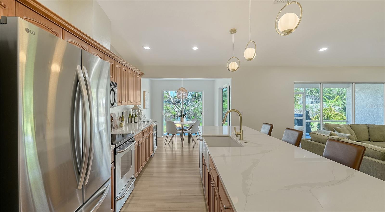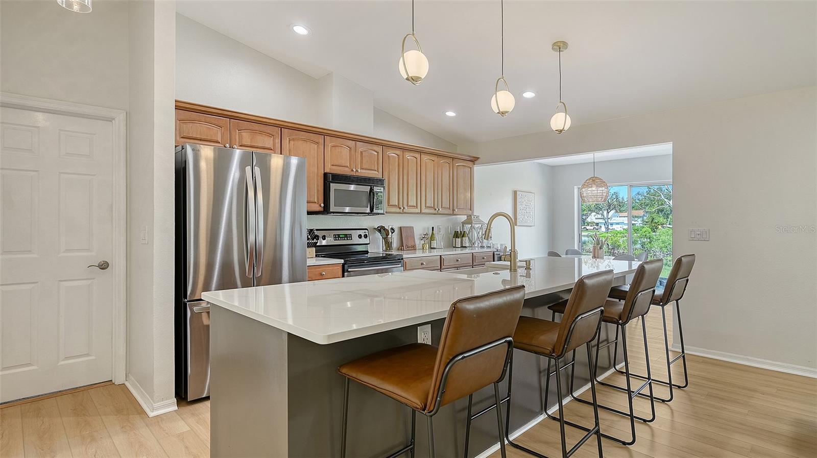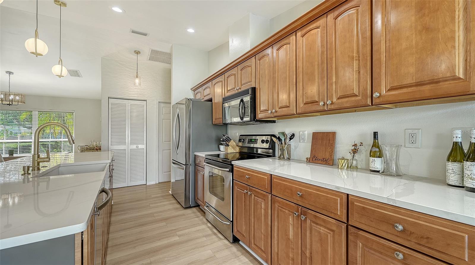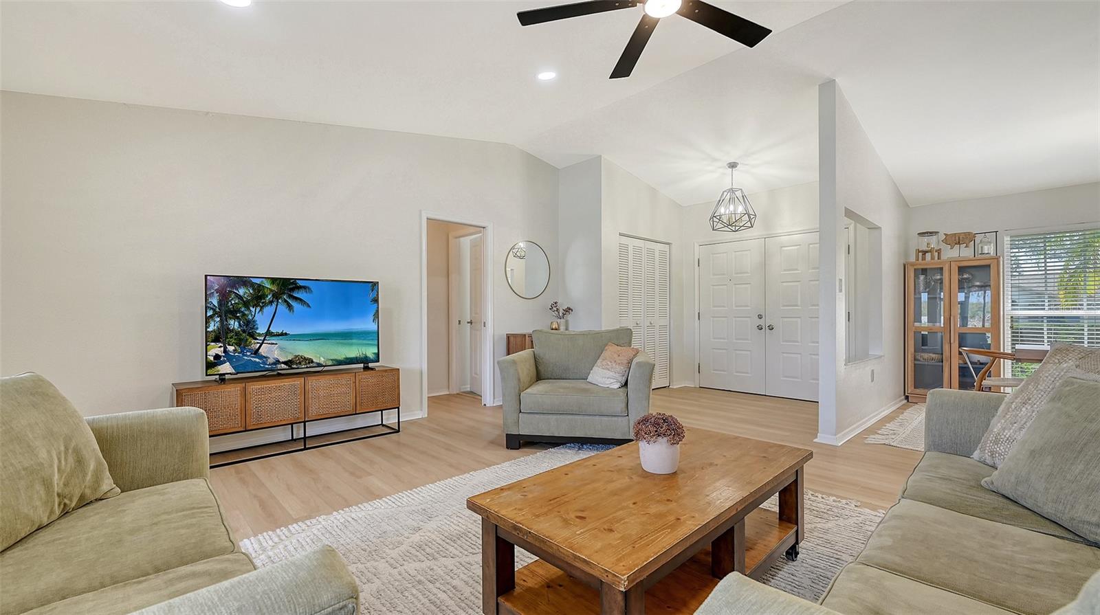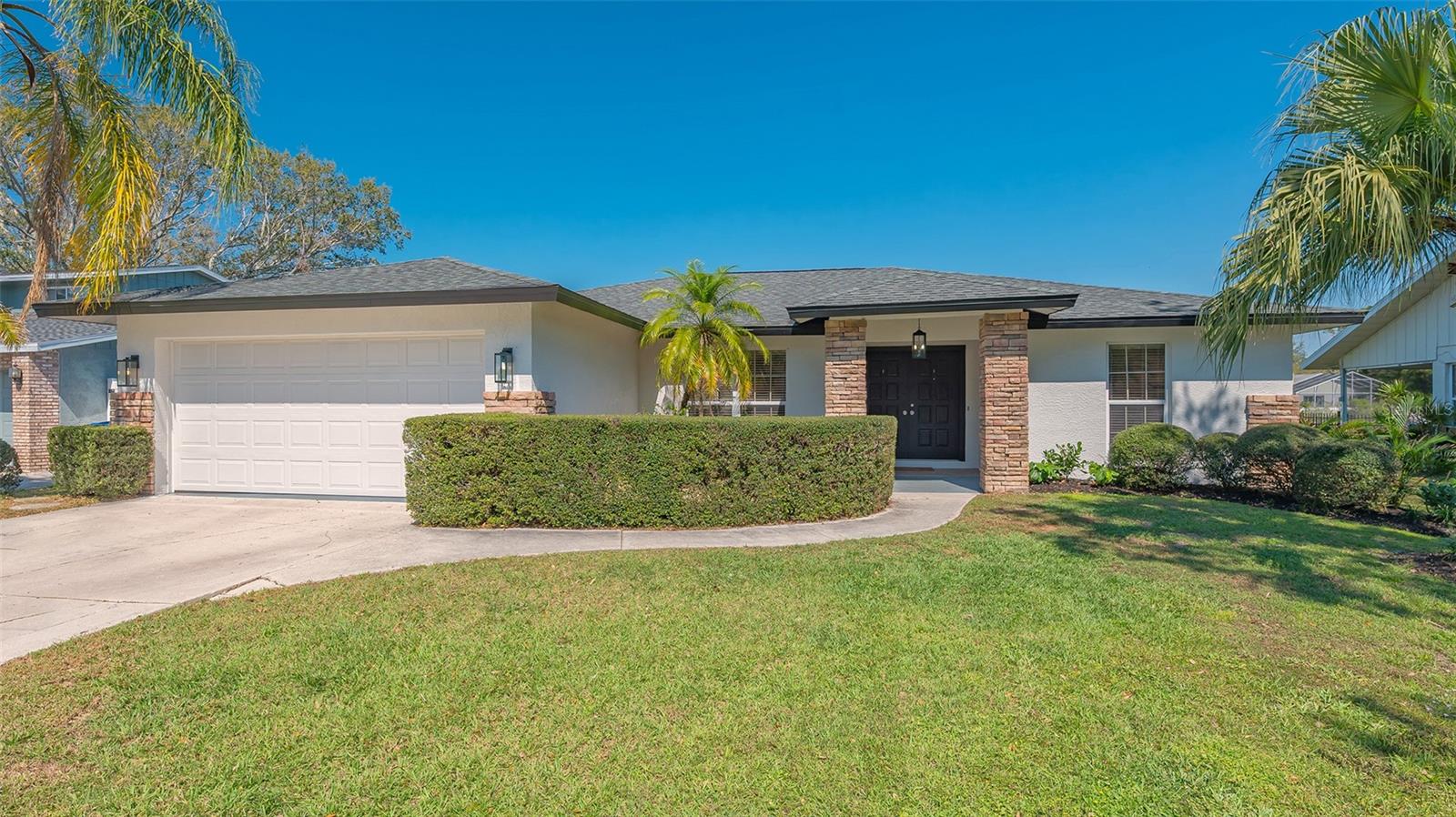 This centrally located, tastefully updated lakefront home in Sarasota is one you will not want to miss! The conveniently located community of Briarwood boasts amazing proximity to beaches, shopping, dining, and excellent public schools. This quiet cul-de-sac is tucked away and features long water views and a nicely sized yard. The curb appeal of this three bedroom home is an A+ with beautiful stacked stone façade, fresh exterior paint, and a new roof in 2022! The interior of this home does not disappoint- clever design and smart updates abound. Upon entering, you’ll notice vaulted ceilings, a split bedroom open concept plan, a newly poured concrete back porch and great views from nearly every room. The modern kitchen features new quartz countertops, updated appliances, and stylish farmhouse sink. The primary suite is spacious with walk-in closet and smart updates. The main areas in the home have new white oak LVP flooring and new paint throughout. The additional bedrooms are abundantly-sized and the whole home has a great feel. You’ll have to see it to believe it- this incredibly updated home won’t last forever, schedule your private showing today!