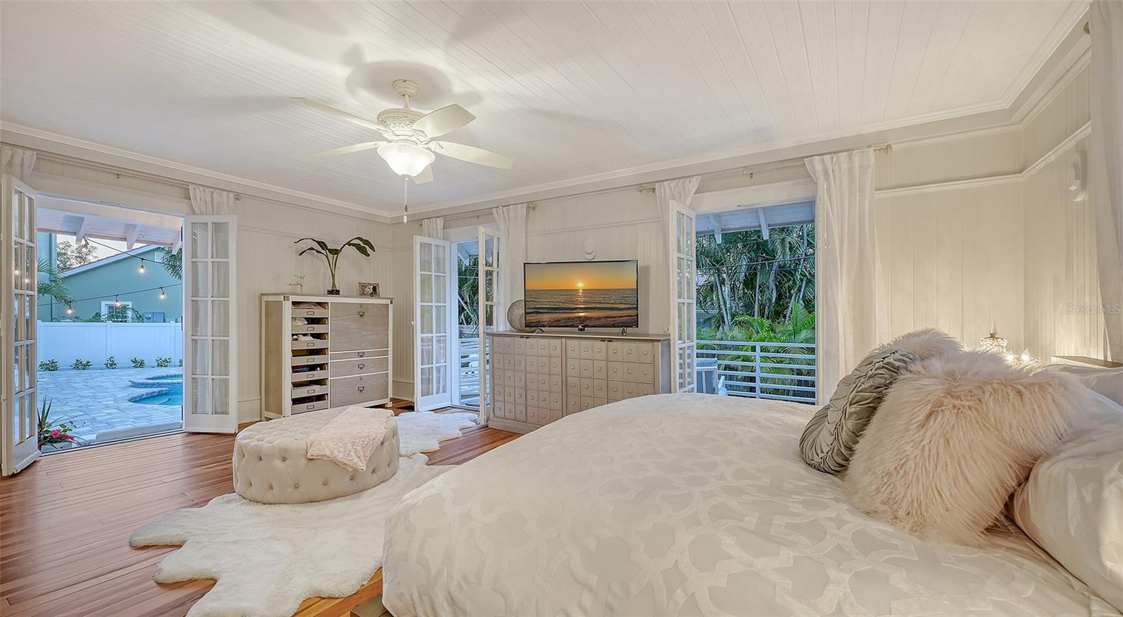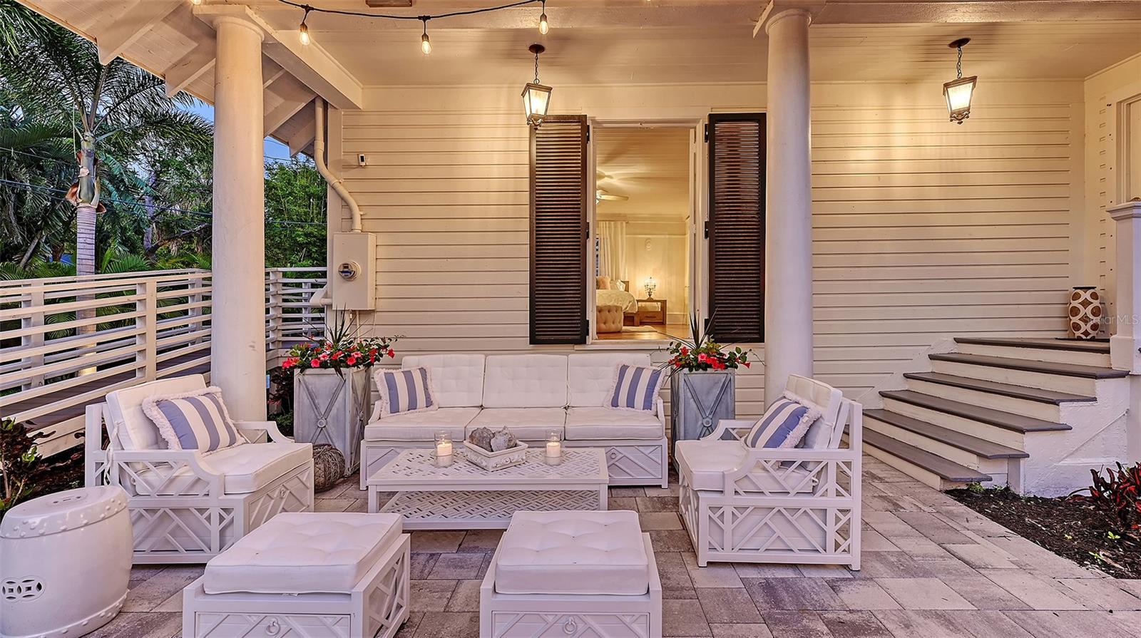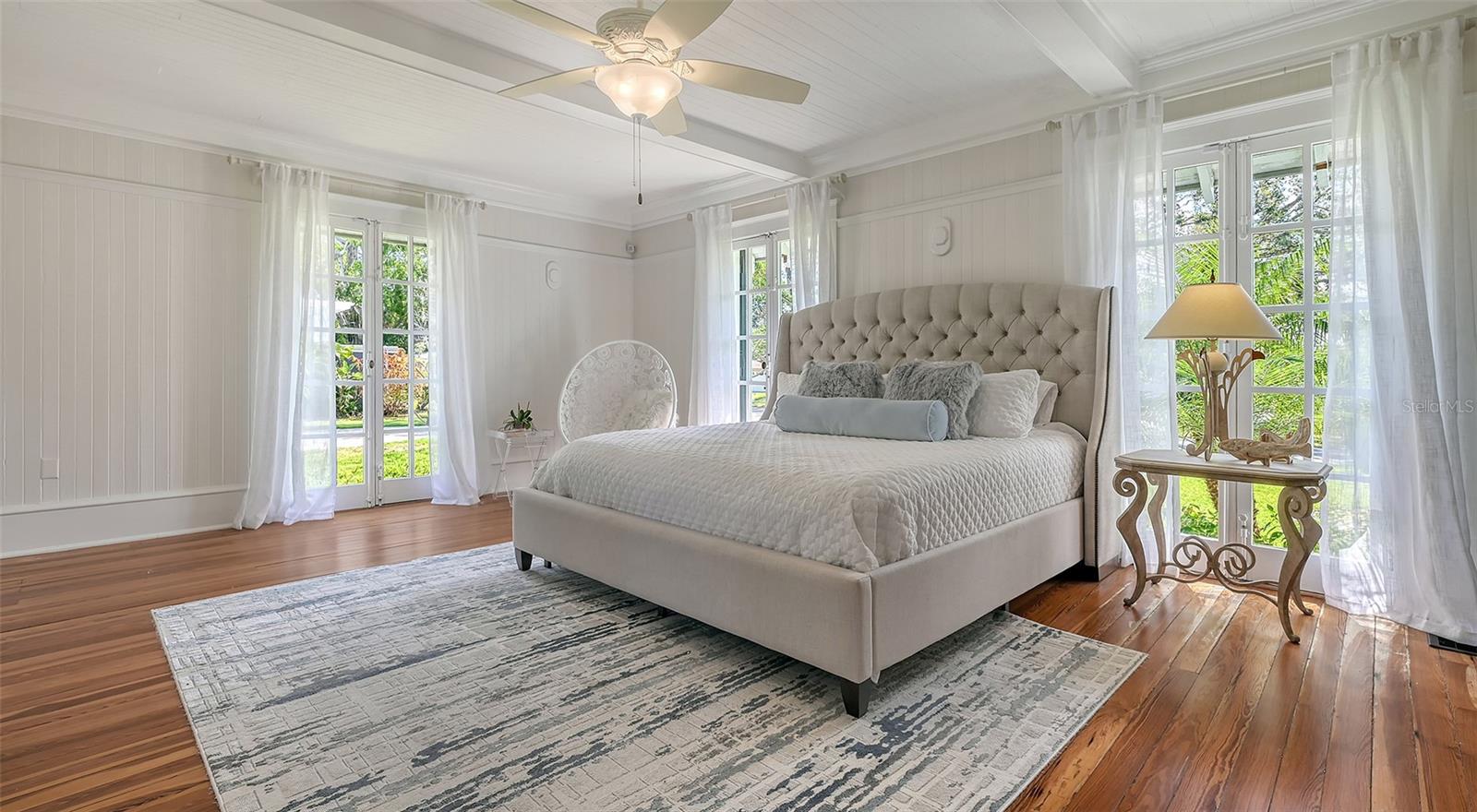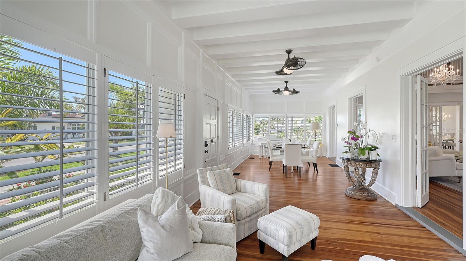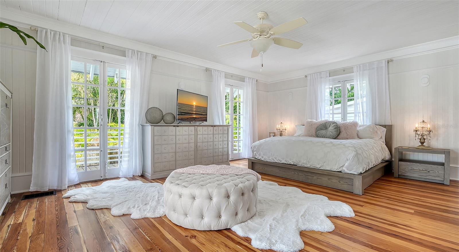 Step into history and timeless elegance at the House of Ringling, a landmark estate in Sarasota's coveted Whitfield Estates, built in 1918 for Alfred Ringling of the legendary Ringling Brothers. Spanning 4,782+/- sq. ft., this 5BR, 4.5BA masterpiece seamlessly marries Gilded Age opulence with modern luxury. A red brick walkway and expansive front lawn welcome you to this architectural treasure, where an oversized Grand Ballroom with a 21-foot ceiling, Venetian columns and a Renaissance-style coffered ceiling create an awe-inspiring focal point. Original pine floors, 12-inch baseboards and hand-poured antique glass in French windows and doors preserve the estate’s rich craftsmanship, as the reimagined chef’s kitchen is a showpiece, featuring Big Chill appliances, an 8-burner gas stove, Quartzite surfaces, a mother-of-pearl backsplash and backlit cabinets. The primary suite on the lower level offers floor-to-ceiling French doors opening to a private porch and the expansive pool deck. Upstairs, 2 ensuite bedrooms feature partial bay views. Hidden details, including a prohibition-era speakeasy/3rd bedroom at the top of the stairs and a secret room, add intrigue and charm. The home’s walls, crafted from Ringling railway car paneling, echo its storied past. Recent updates, including new plumbing, electrical, HVAC (5 units), and a new roof with extra tie-down straps, ensure modern comfort while preserving historic character. A detached 2-car garage and 2 driveways provide ample space, while the expansive Palm Beach-style courtyard invites relaxation. As one of the first Ringling Brothers homes in Sarasota, this estate offers a rare opportunity to own a living piece of history in a prime location near Sarasota Bay and downtown.