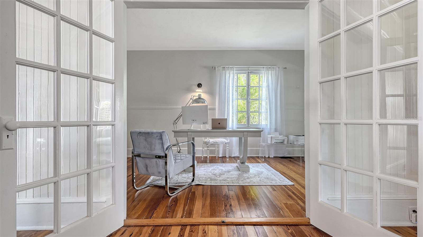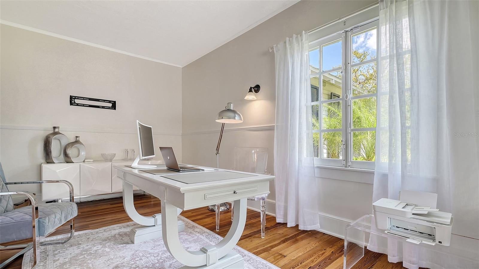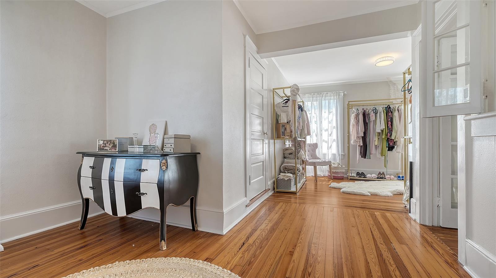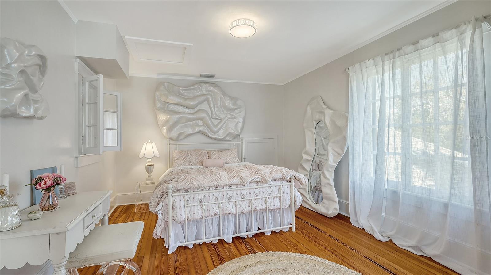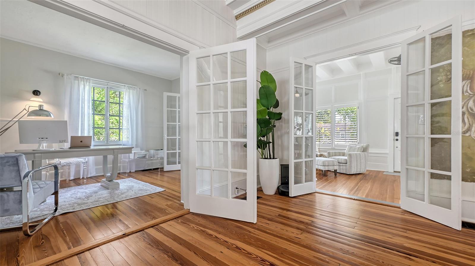 Step into history and timeless elegance at the House of Ringling, a landmark estate in Sarasota's coveted Whitfield Estates, built in 1918 for Alfred Ringling of the legendary Ringling Brothers. Spanning 4,782+/- sq. ft., this 5BR, 4.5BA masterpiece seamlessly marries Gilded Age opulence with modern luxury. A red brick walkway and expansive front lawn welcome you to this architectural treasure, where an oversized Grand Ballroom with a 21-foot ceiling, Venetian columns and a Renaissance-style coffered ceiling create an awe-inspiring focal point. Original pine floors, 12-inch baseboards and hand-poured antique glass in French windows and doors preserve the estate’s rich craftsmanship, as the reimagined chef’s kitchen is a showpiece, featuring Big Chill appliances, an 8-burner gas stove, Quartzite surfaces, a mother-of-pearl backsplash and backlit cabinets. The primary suite on the lower level offers floor-to-ceiling French doors opening to a private porch and the expansive pool deck. Upstairs, 2 ensuite bedrooms feature partial bay views. Hidden details, including a prohibition-era speakeasy/3rd bedroom at the top of the stairs and a secret room, add intrigue and charm. The home’s walls, crafted from Ringling railway car paneling, echo its storied past. Recent updates, including new plumbing, electrical, HVAC (5 units), and a new roof with extra tie-down straps, ensure modern comfort while preserving historic character. A detached 2-car garage and 2 driveways provide ample space, while the expansive Palm Beach-style courtyard invites relaxation. As one of the first Ringling Brothers homes in Sarasota, this estate offers a rare opportunity to own a living piece of history in a prime location near Sarasota Bay and downtown.